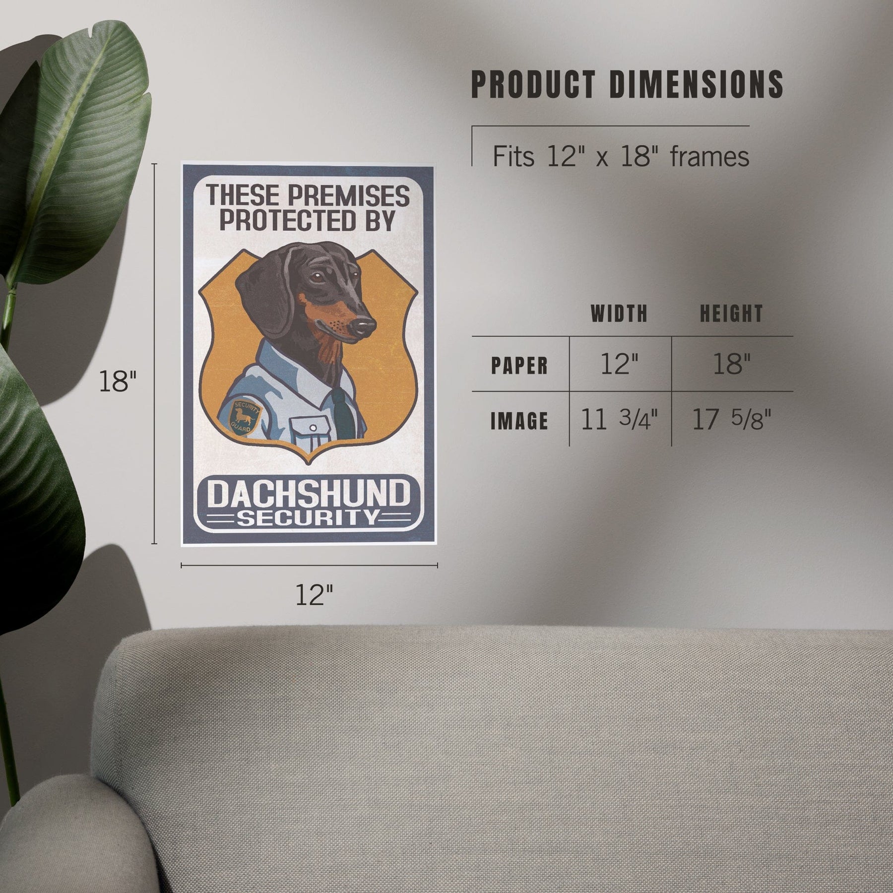 Dachshund Security Black and Tan, Dog Sign, Art & Giclee Prints - Lantern Press