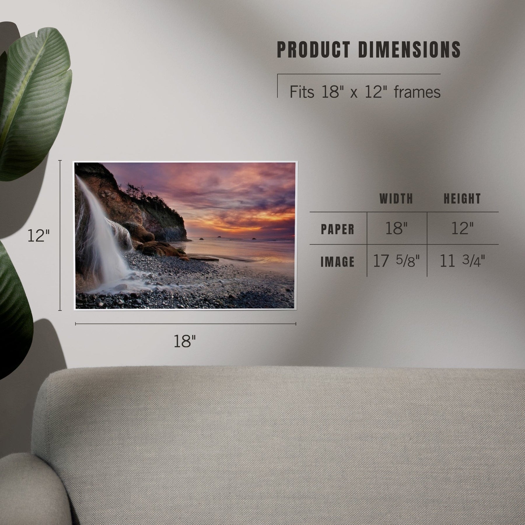 Hug Point, Oregon, Sunset, Waterfall, Art & Giclee Prints - Lantern Press