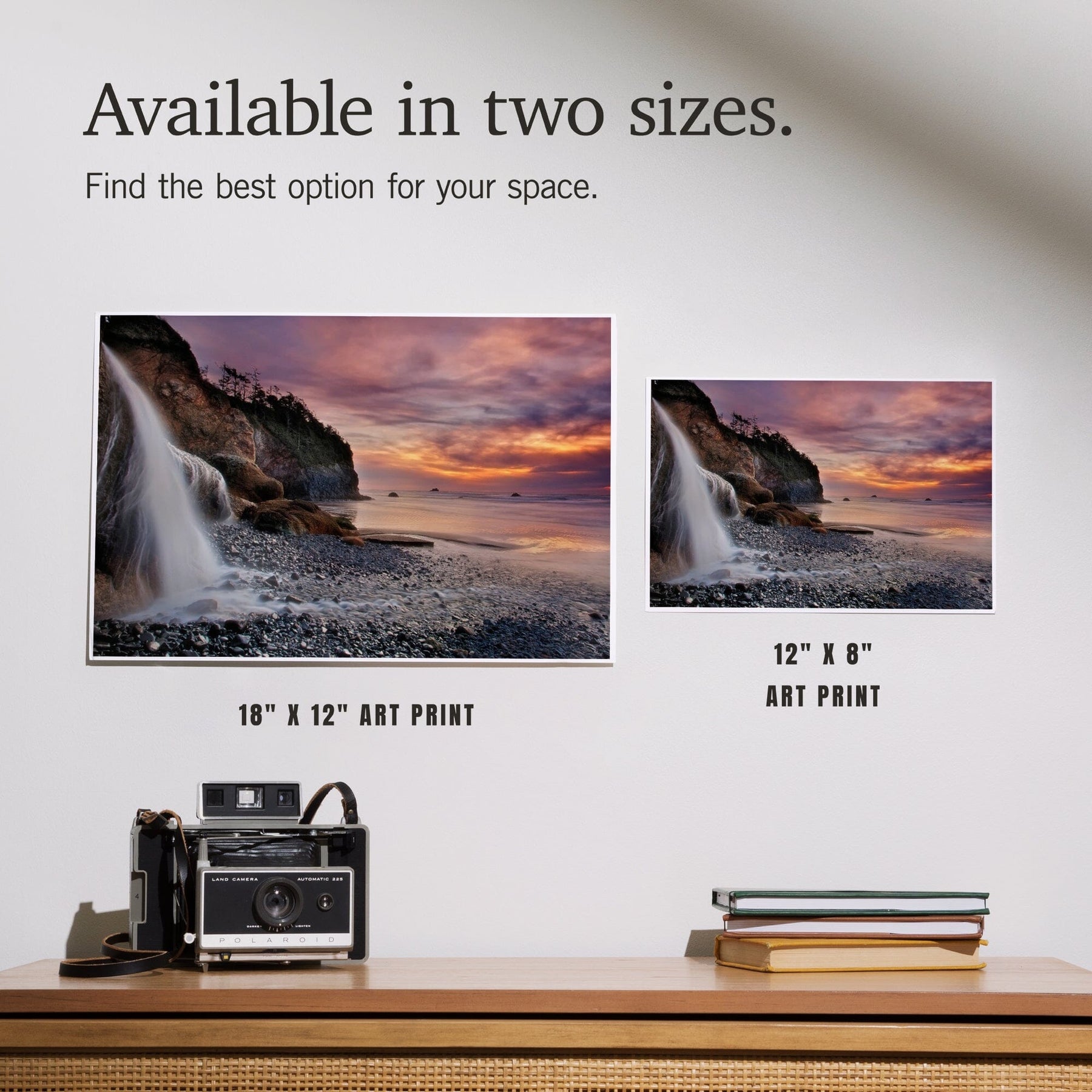 Hug Point, Oregon, Sunset, Waterfall, Art & Giclee Prints