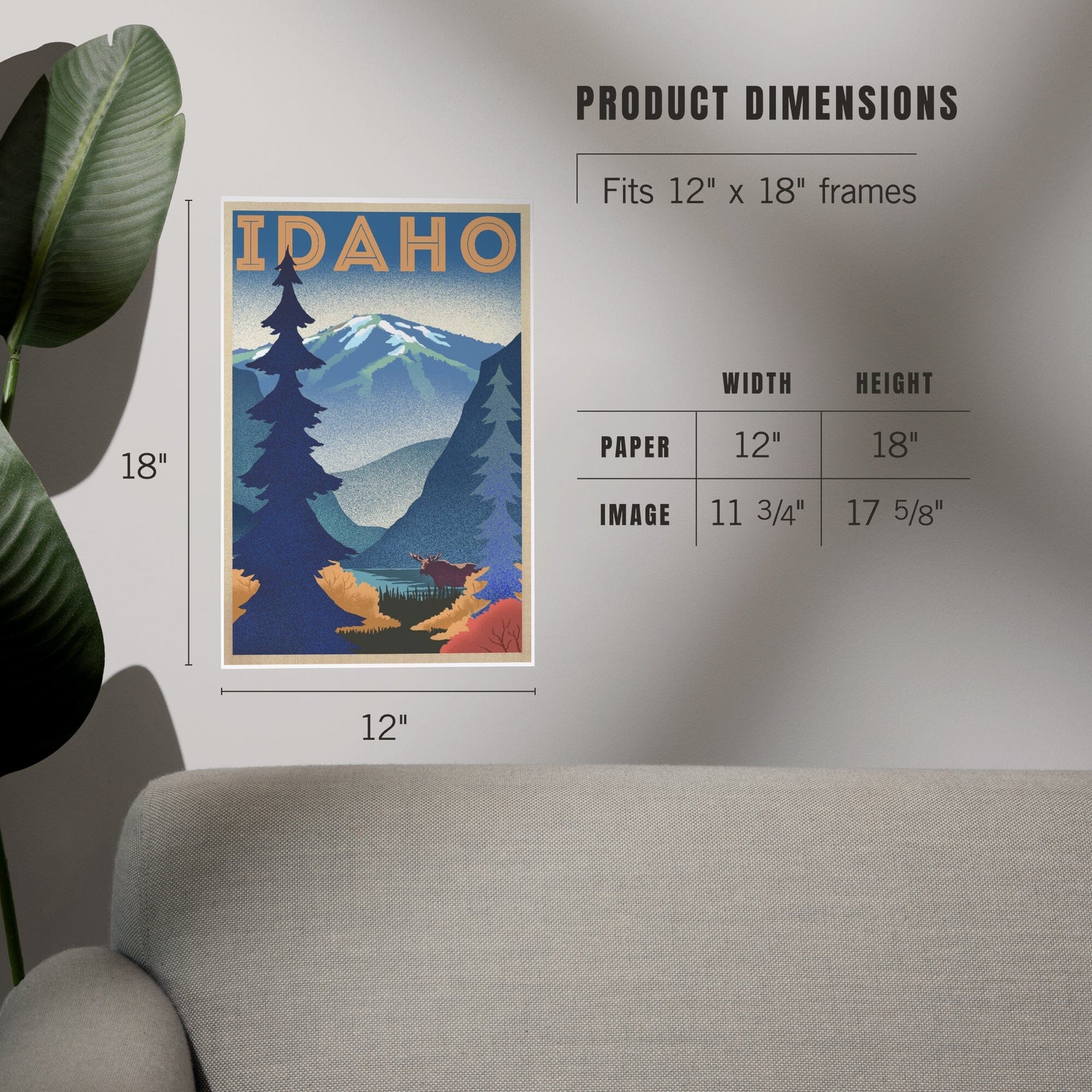 Idaho, Moose and Mountain, Lithograph, Art & Giclee Prints - Lantern Press