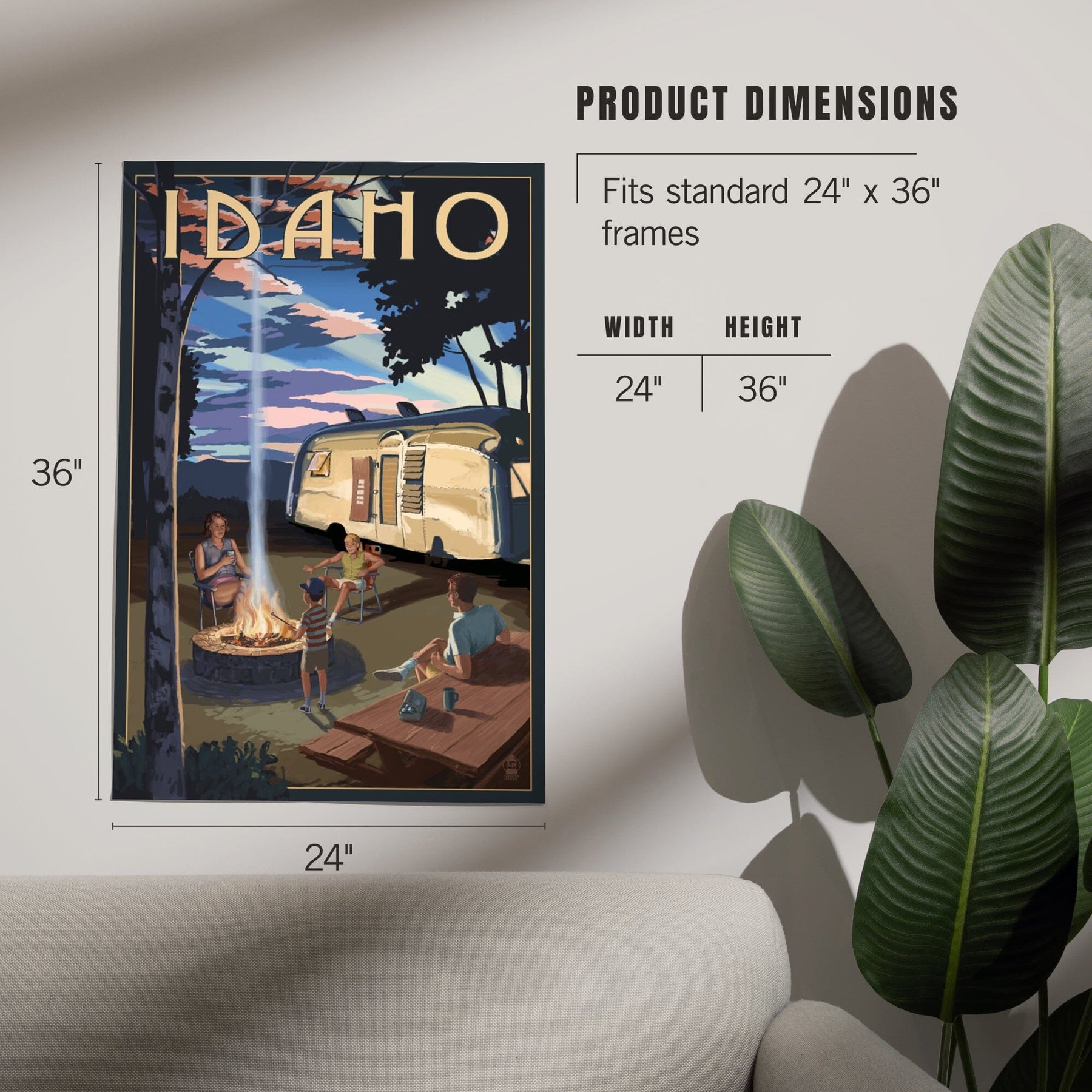 Idaho, Retro Camper and Mountains, Art & Giclee Prints - Lantern Press