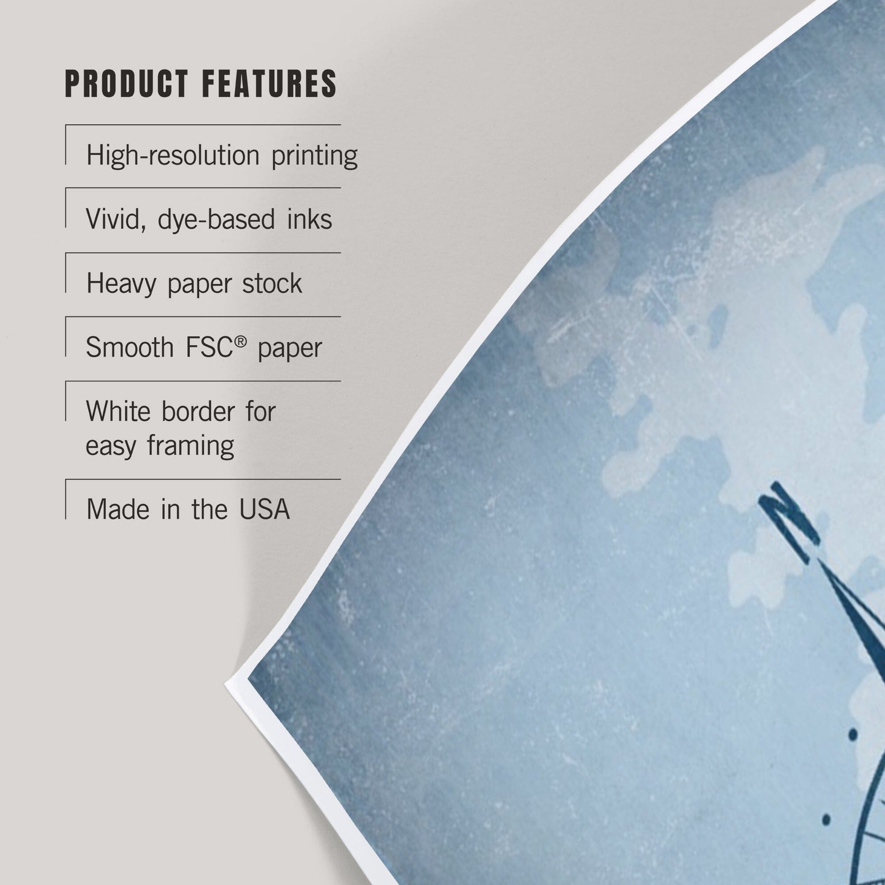 Lake Norman, North Carolina, Lake Essentials, Lake and Compass, Art & Giclee Prints - Lantern Press