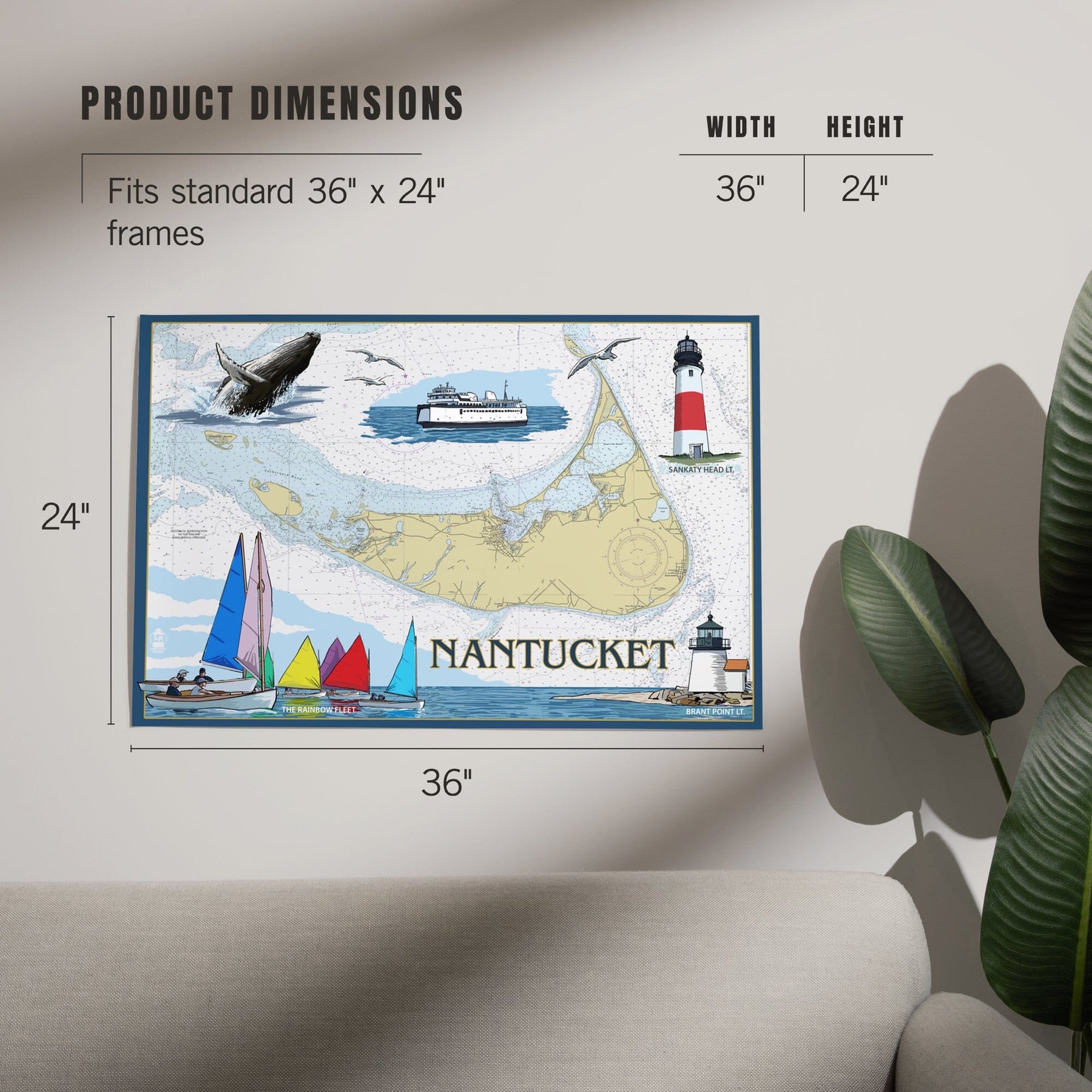 Nantucket, MA Nautical Chart, Art & Giclee Prints Art Lantern Press