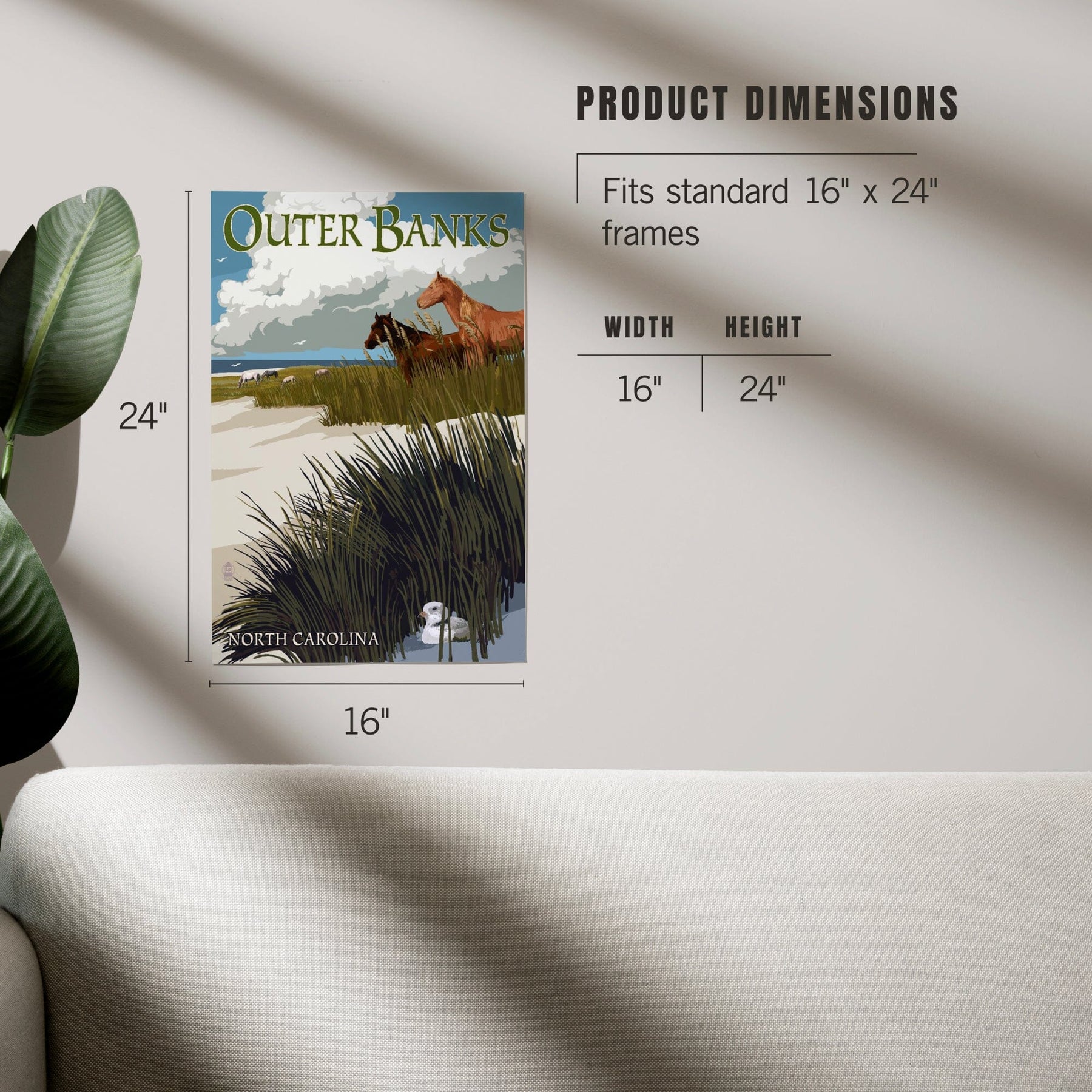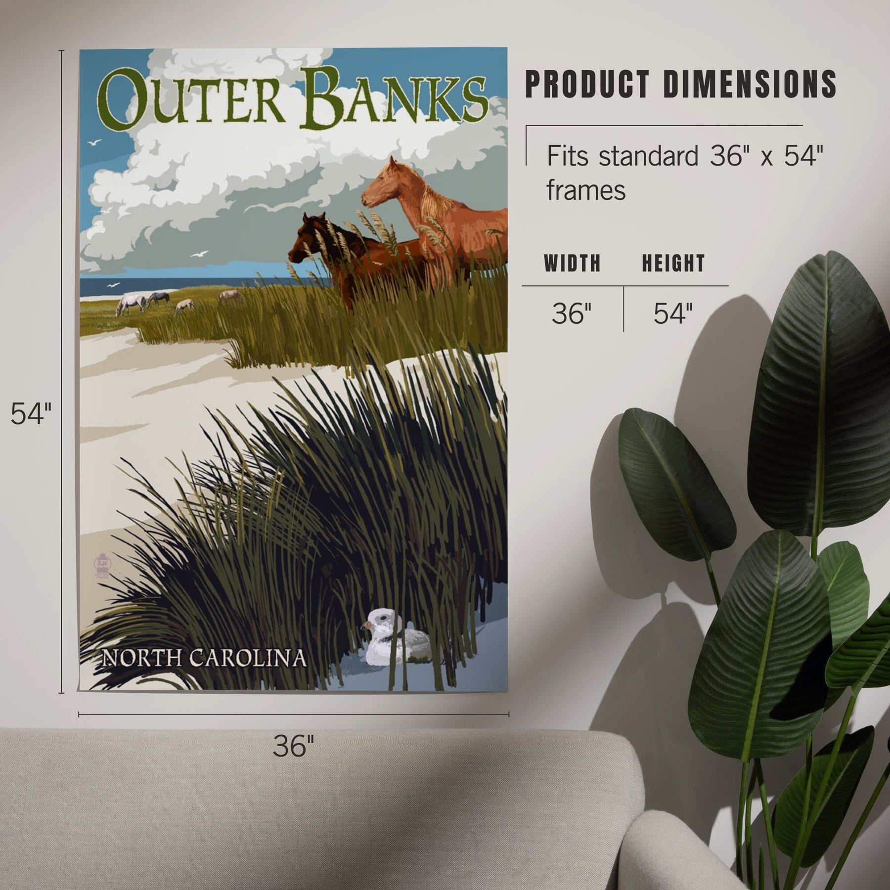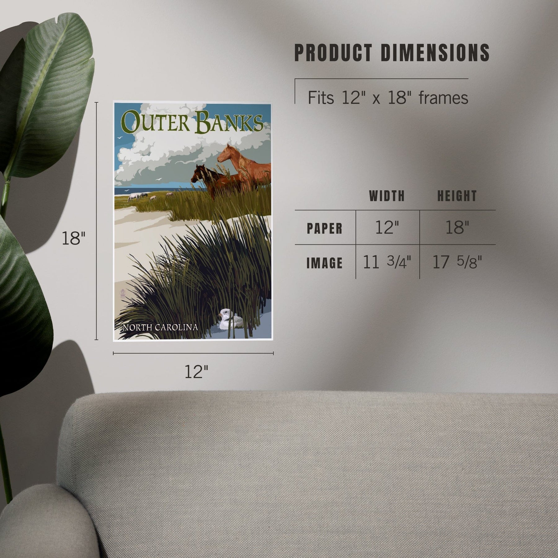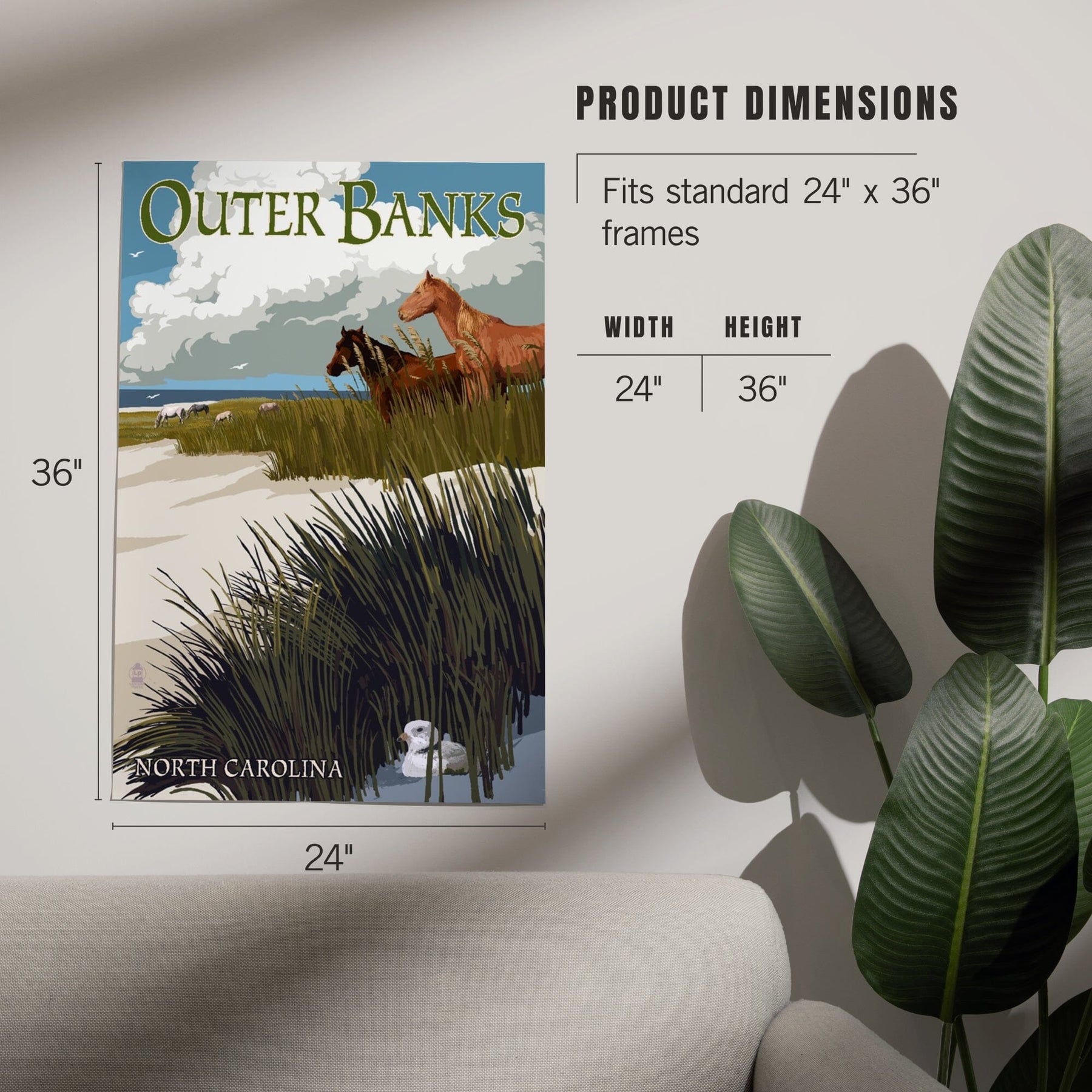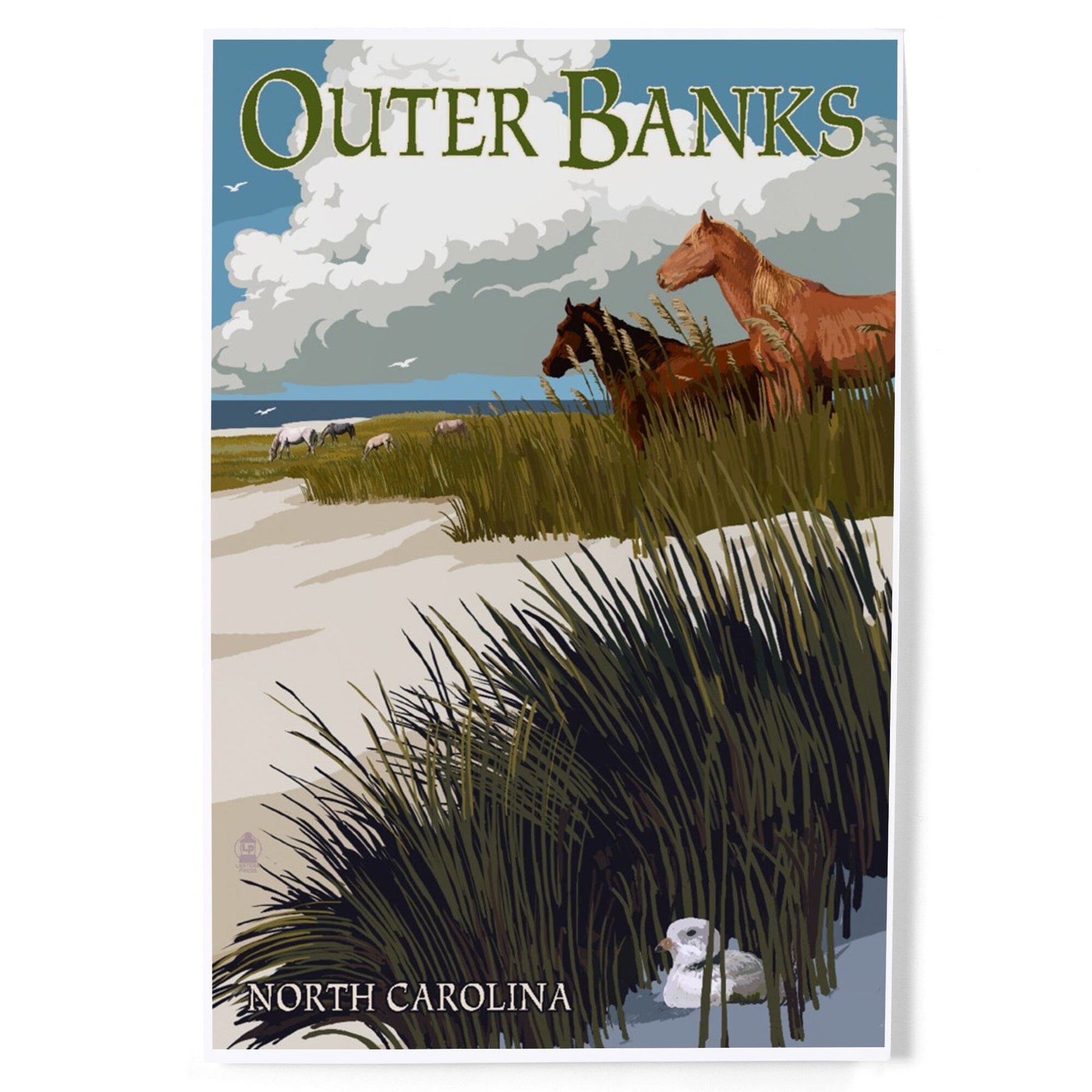 Outer Banks, North Carolina, Horses and Dunes, Art & Giclee Prints Art Lantern Press