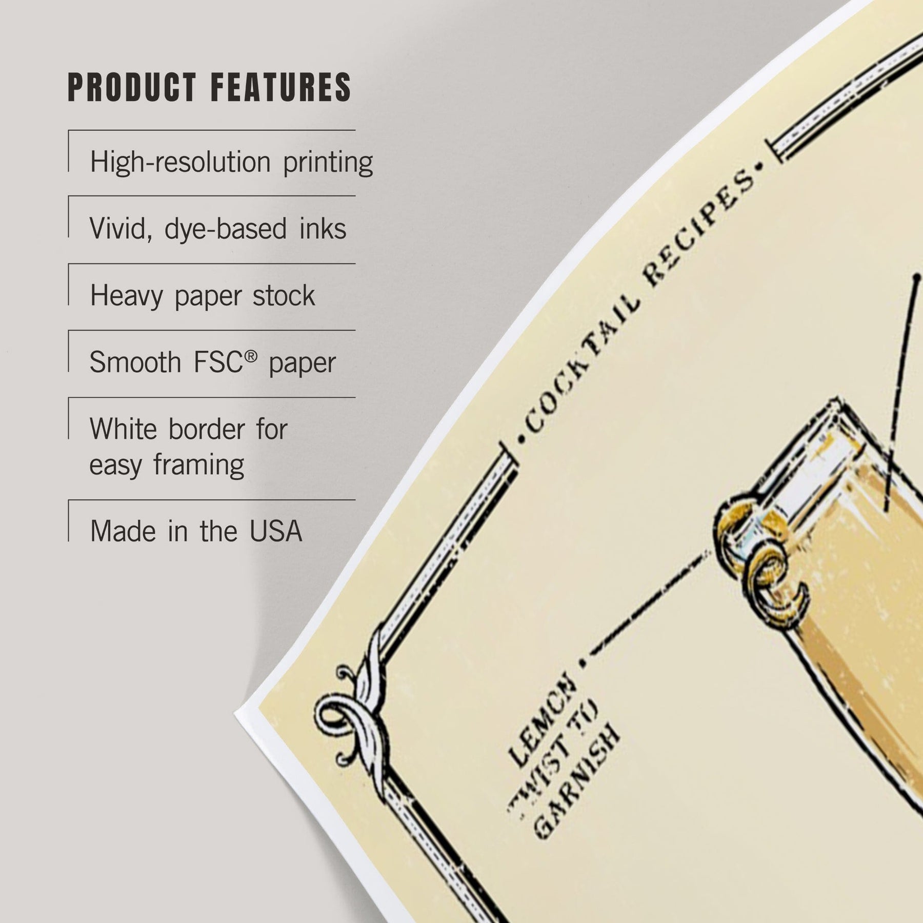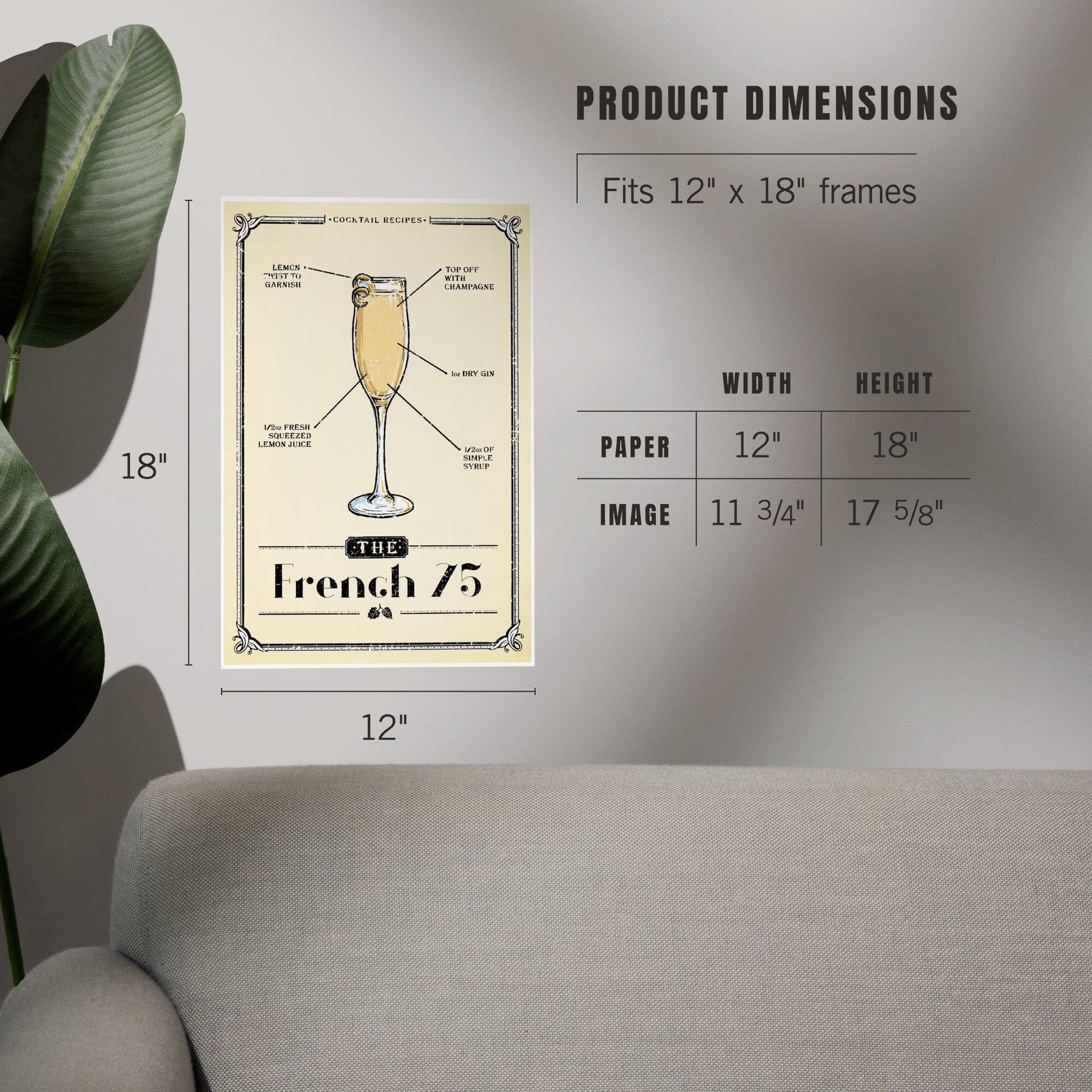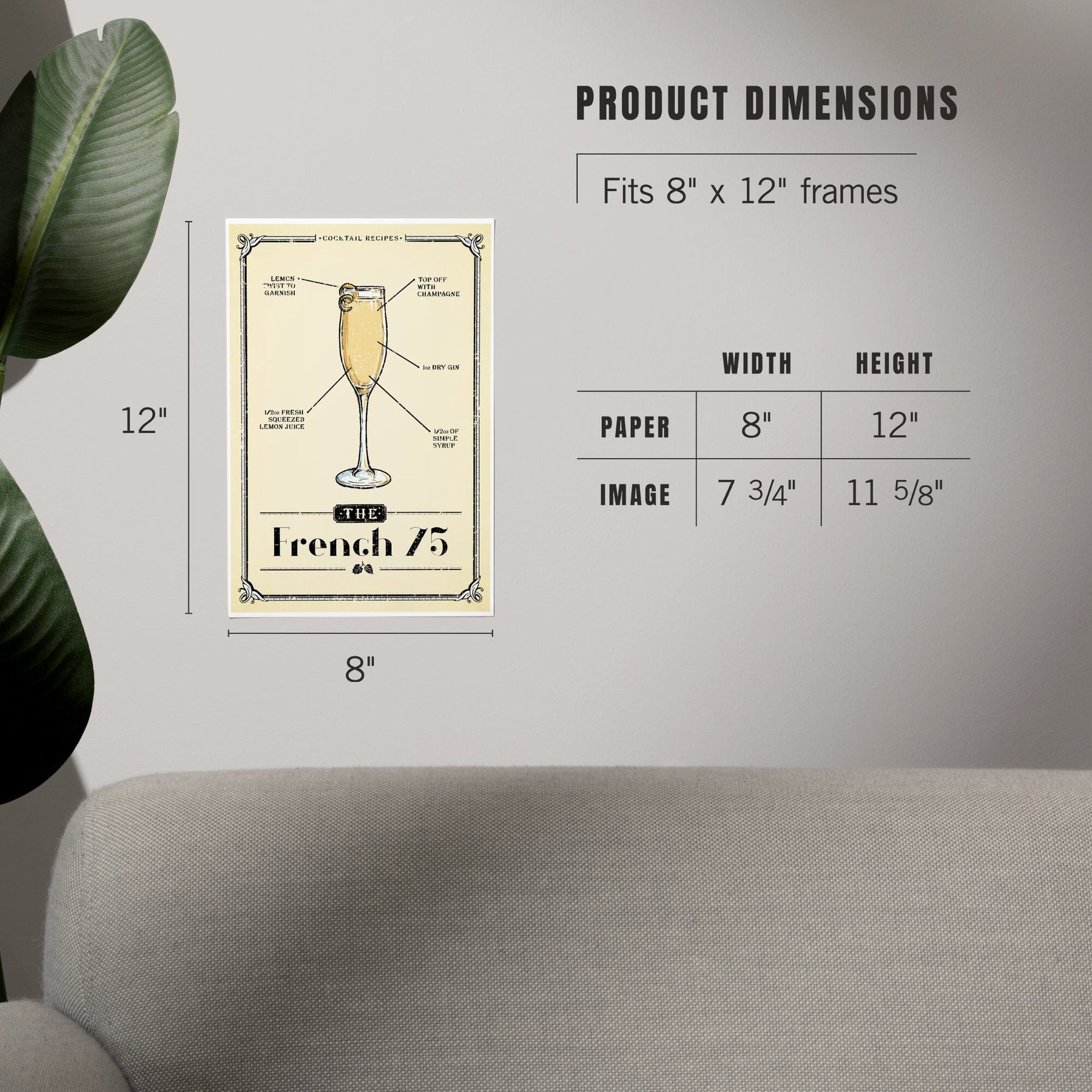 Prohibition, Cocktail Recipe, French 75, Art & Giclee Prints Art Lantern Press