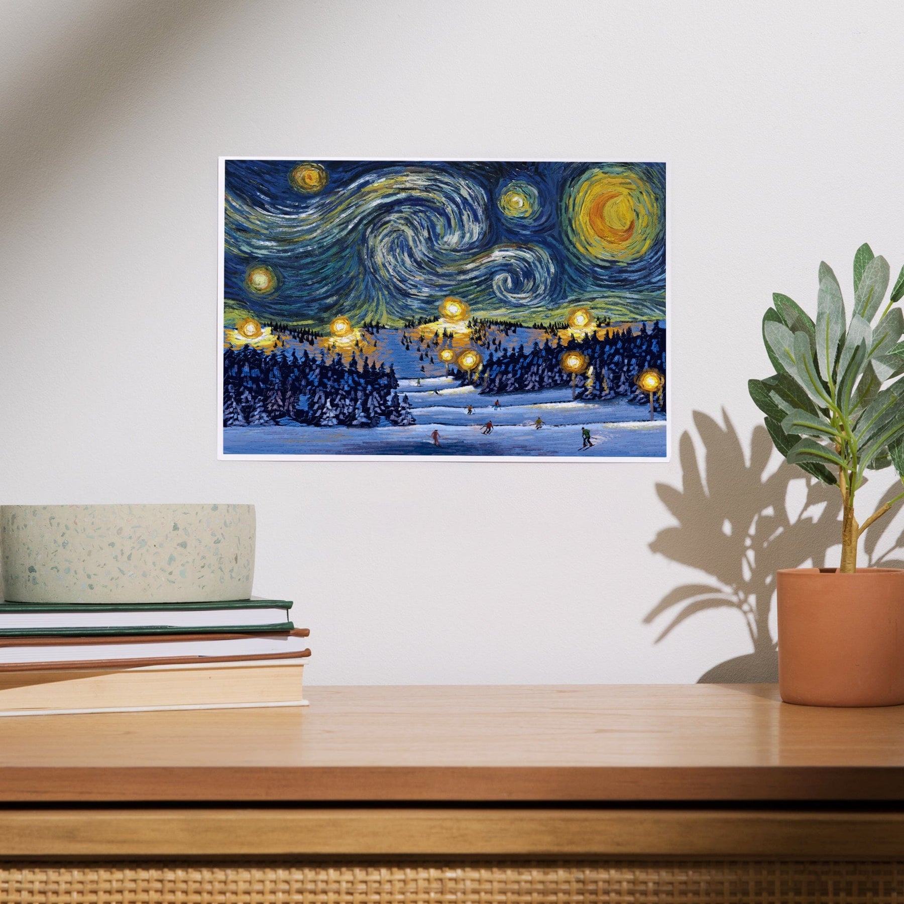 Ski Resort, Starry Night, Art & Giclee Prints