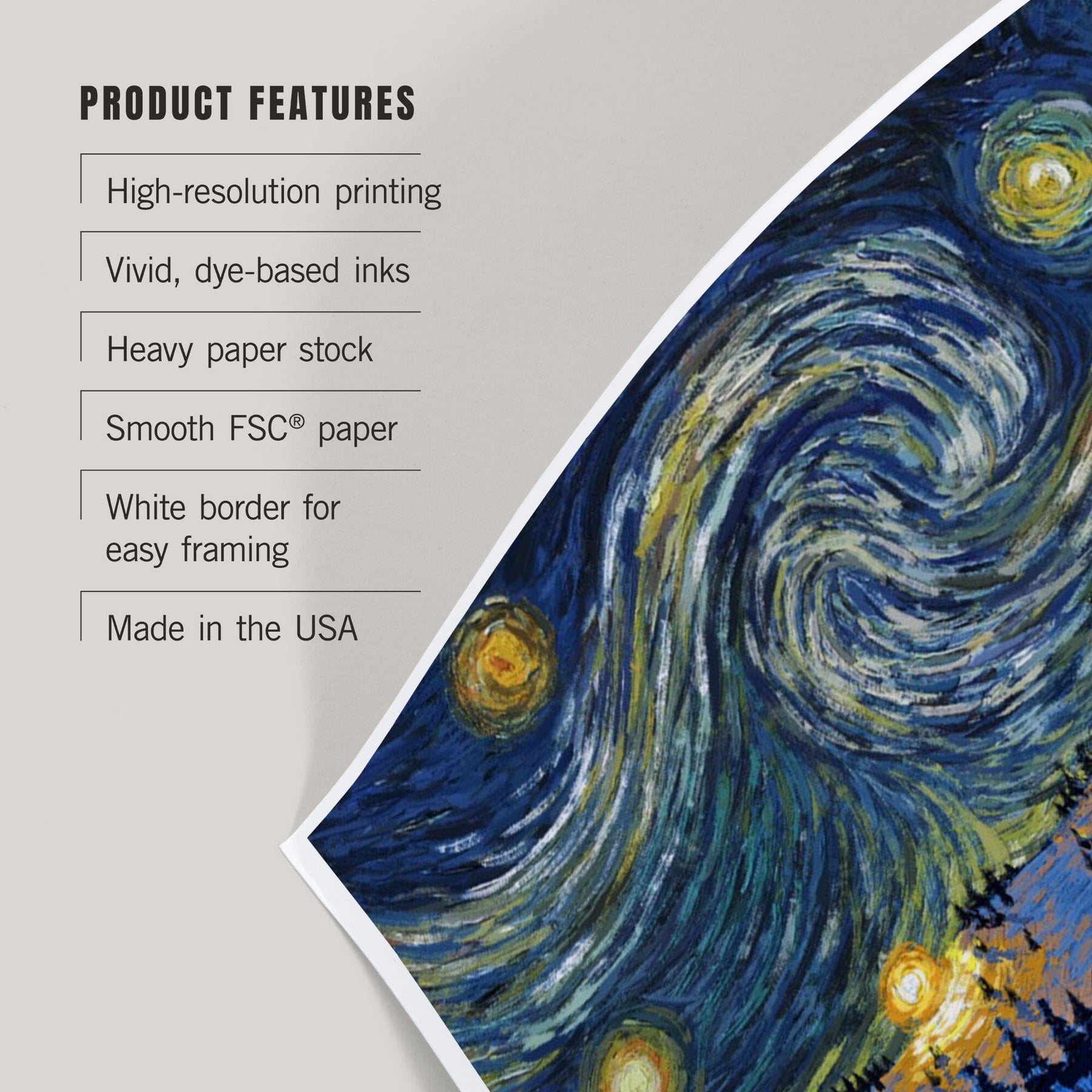 • Art prints include white borders along all edges of at least 1/4 inch