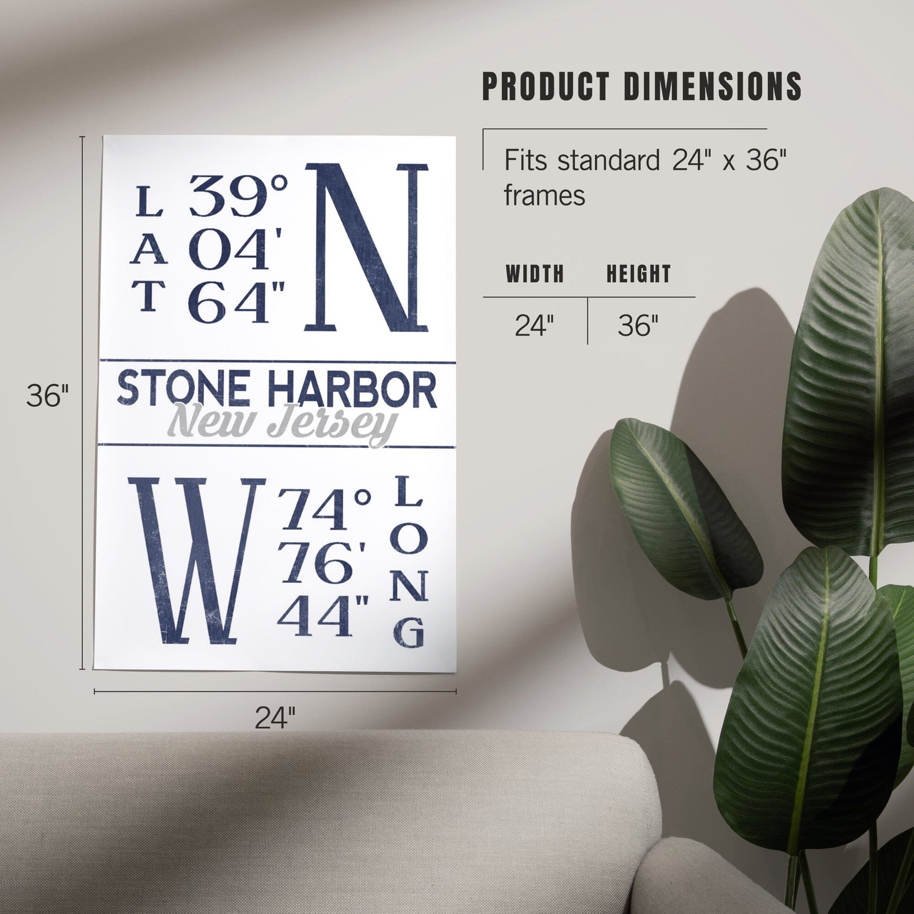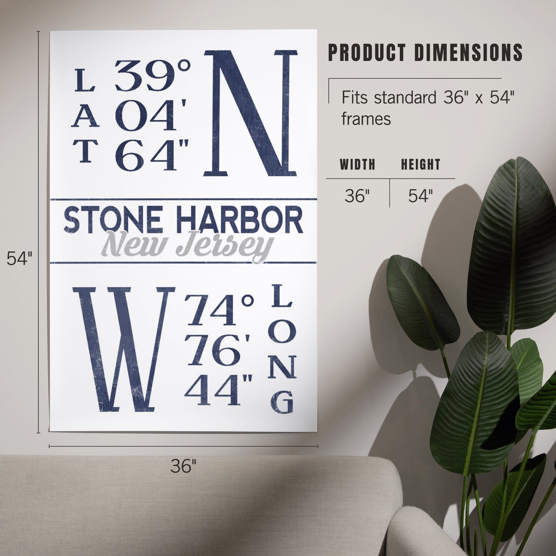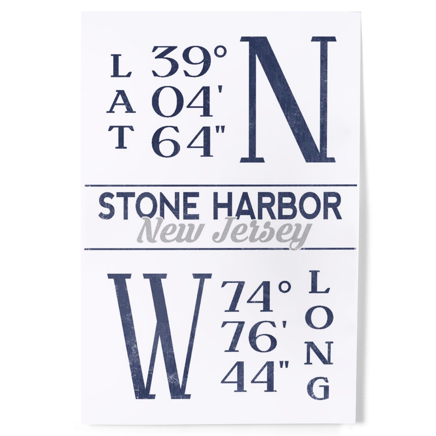 Stone Harbor, New Jersey, Latitude and Longitude (Blue), Art & Giclee Prints Art Lantern Press