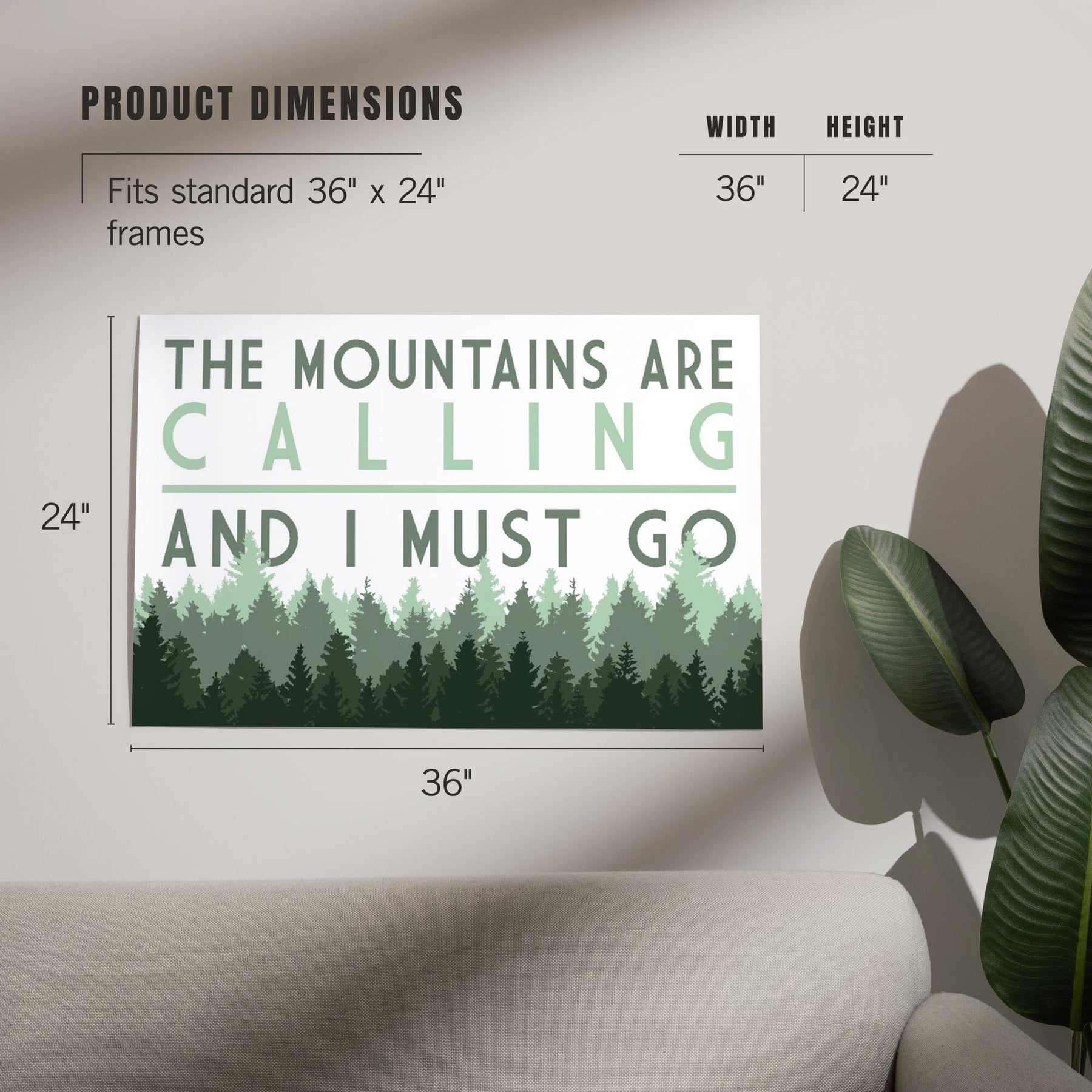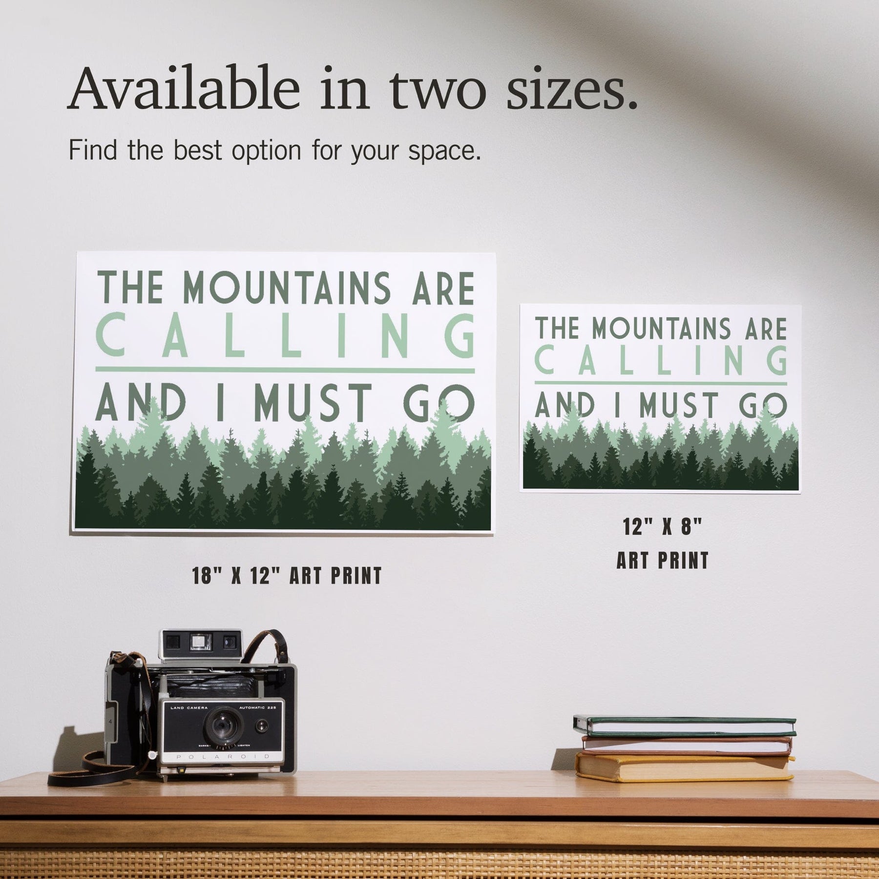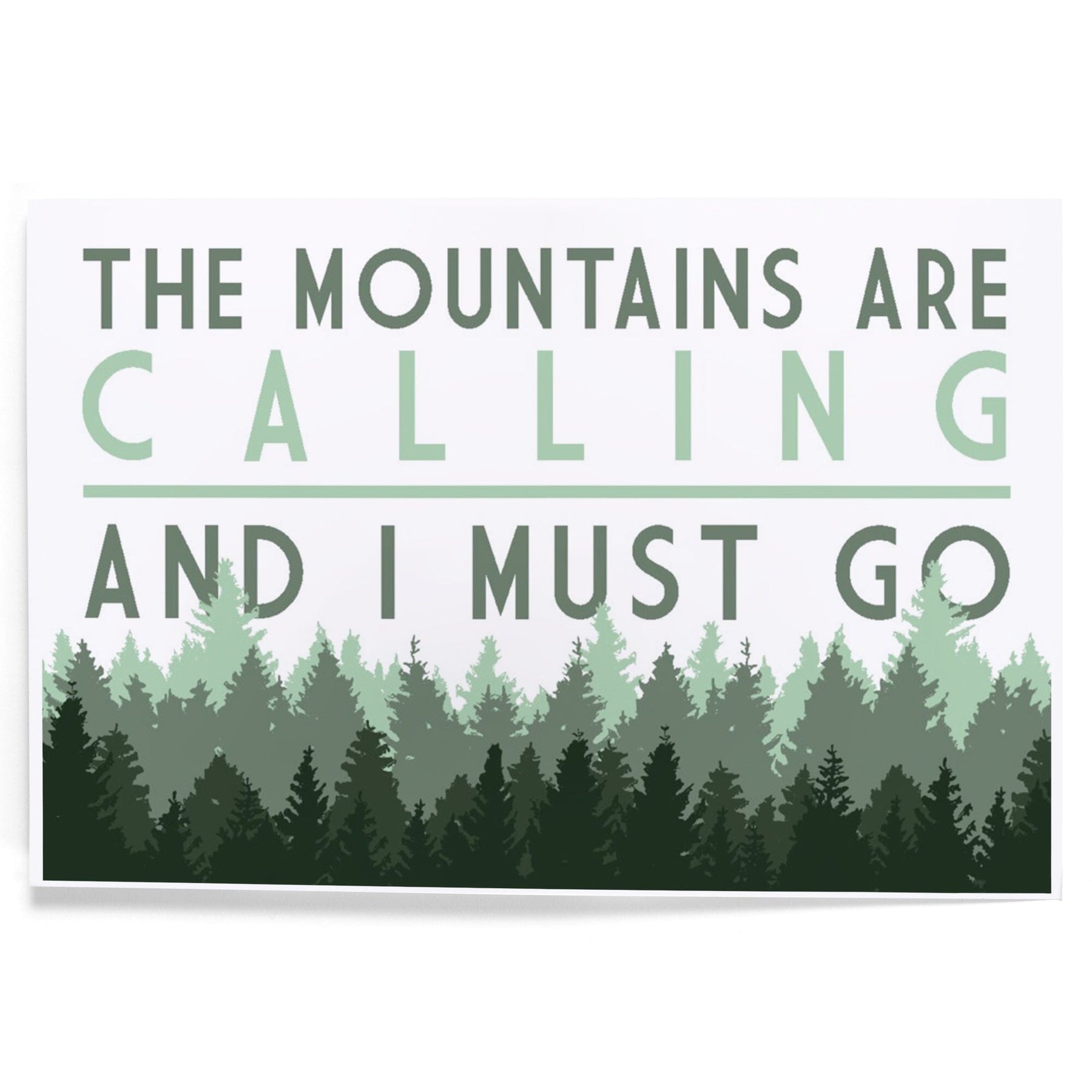 The Mountains are calling and I Must Go, Pine Trees, Art & Giclee Prints