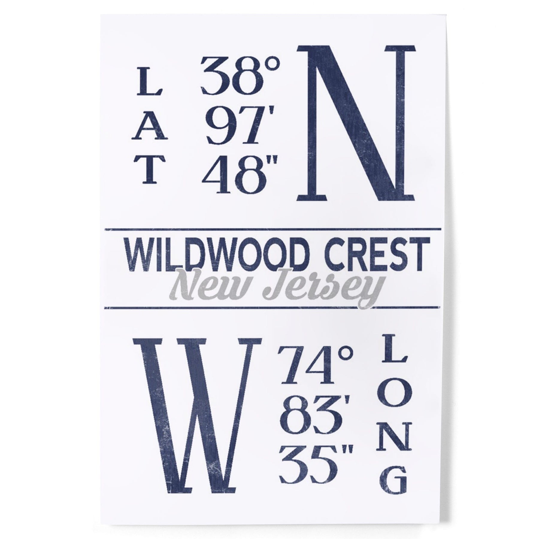 Wildwood Crest, New Jersey, Latitude and Longitude (Blue), Art & Giclee Prints Art Lantern Press