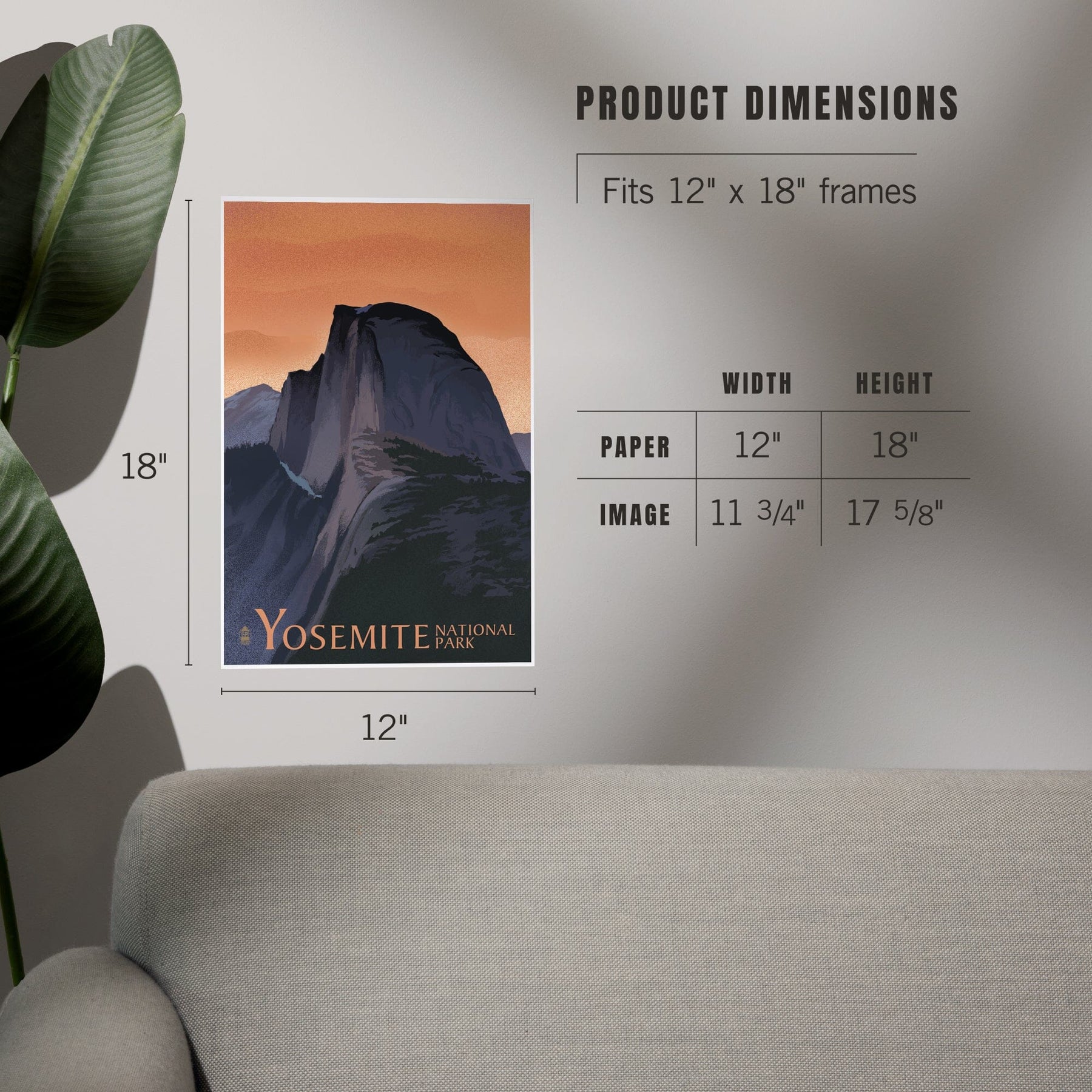 Yosemite National Park, California, Half Dome, Orange Sky, Lithograph, Art & Giclee Prints Art Lantern Press