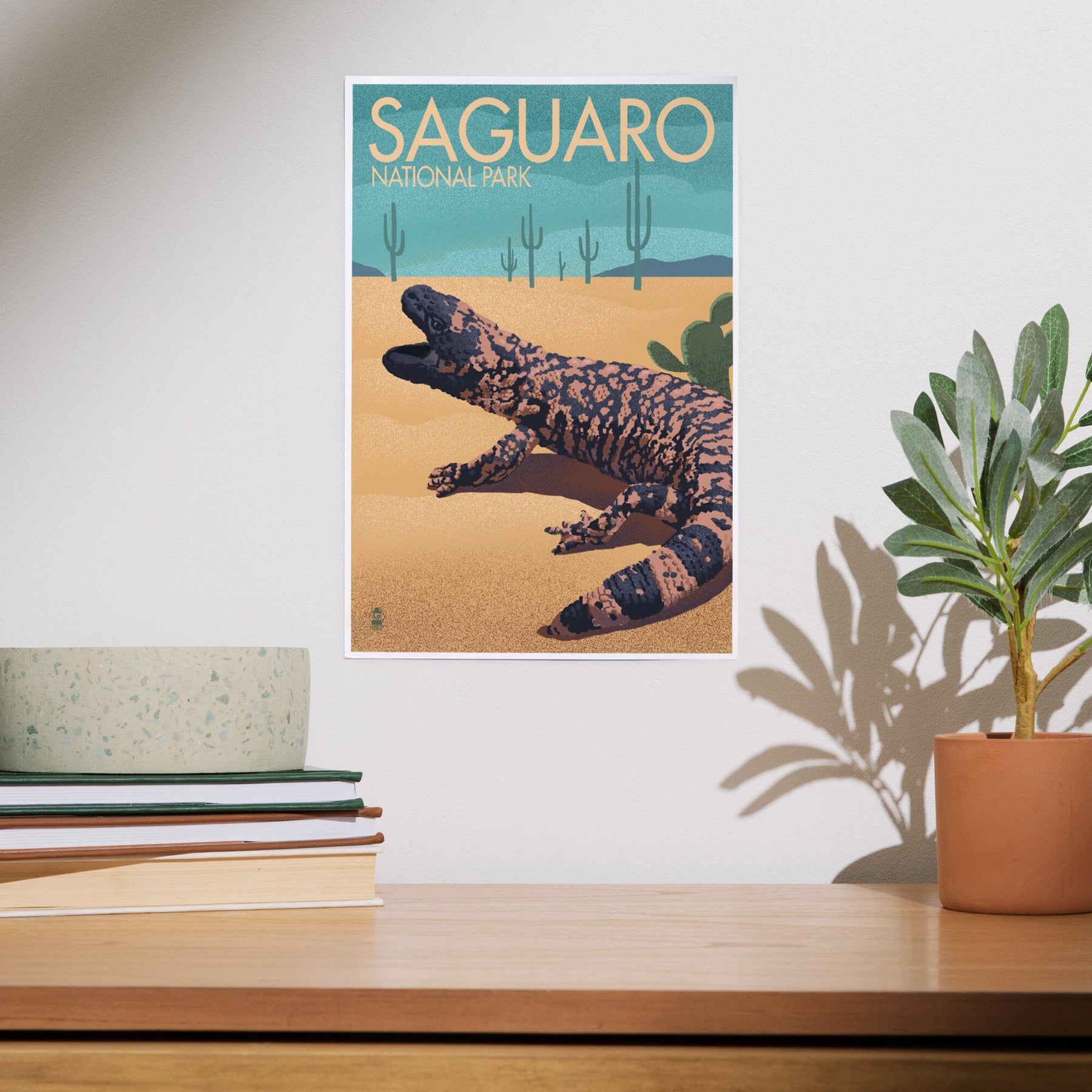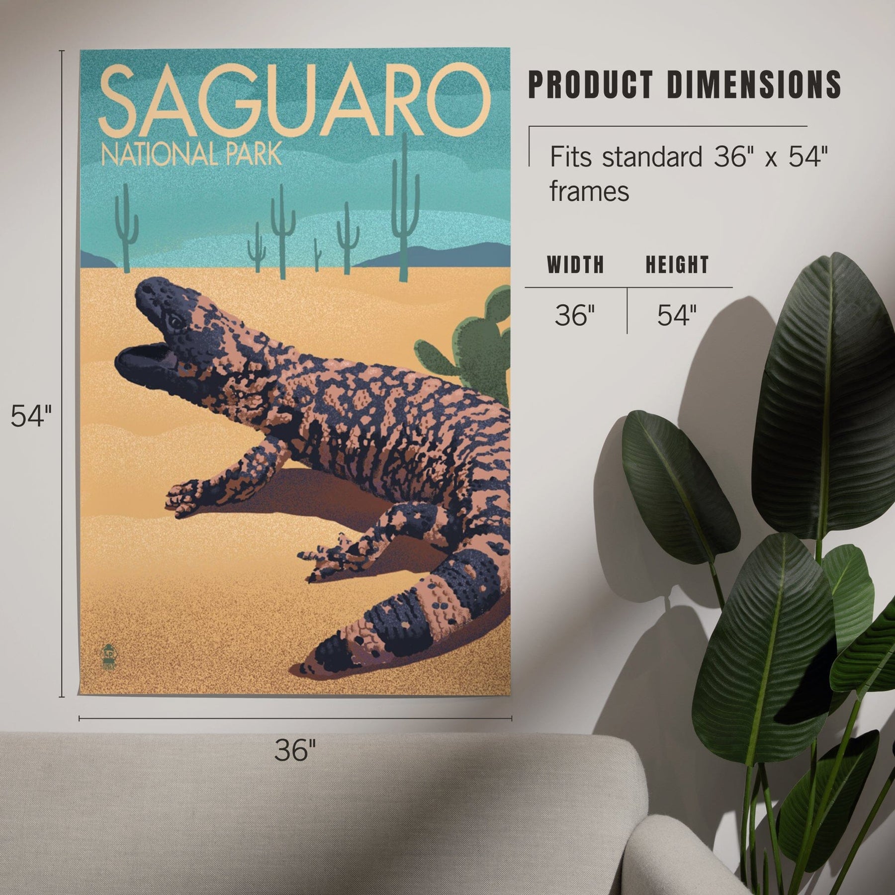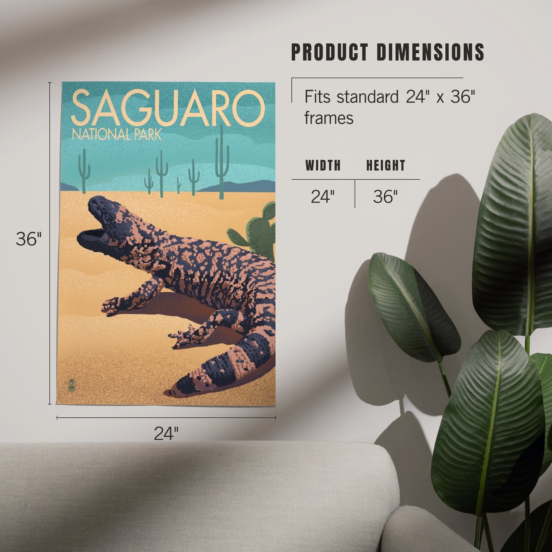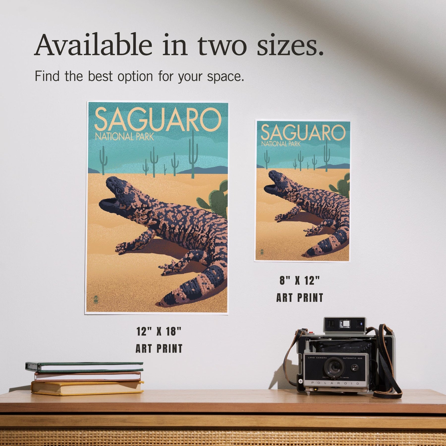 Saguaro National Park, Arizona, Gila Monster and Cactus, Lithograph, Art & Giclee Prints Art Lantern Press