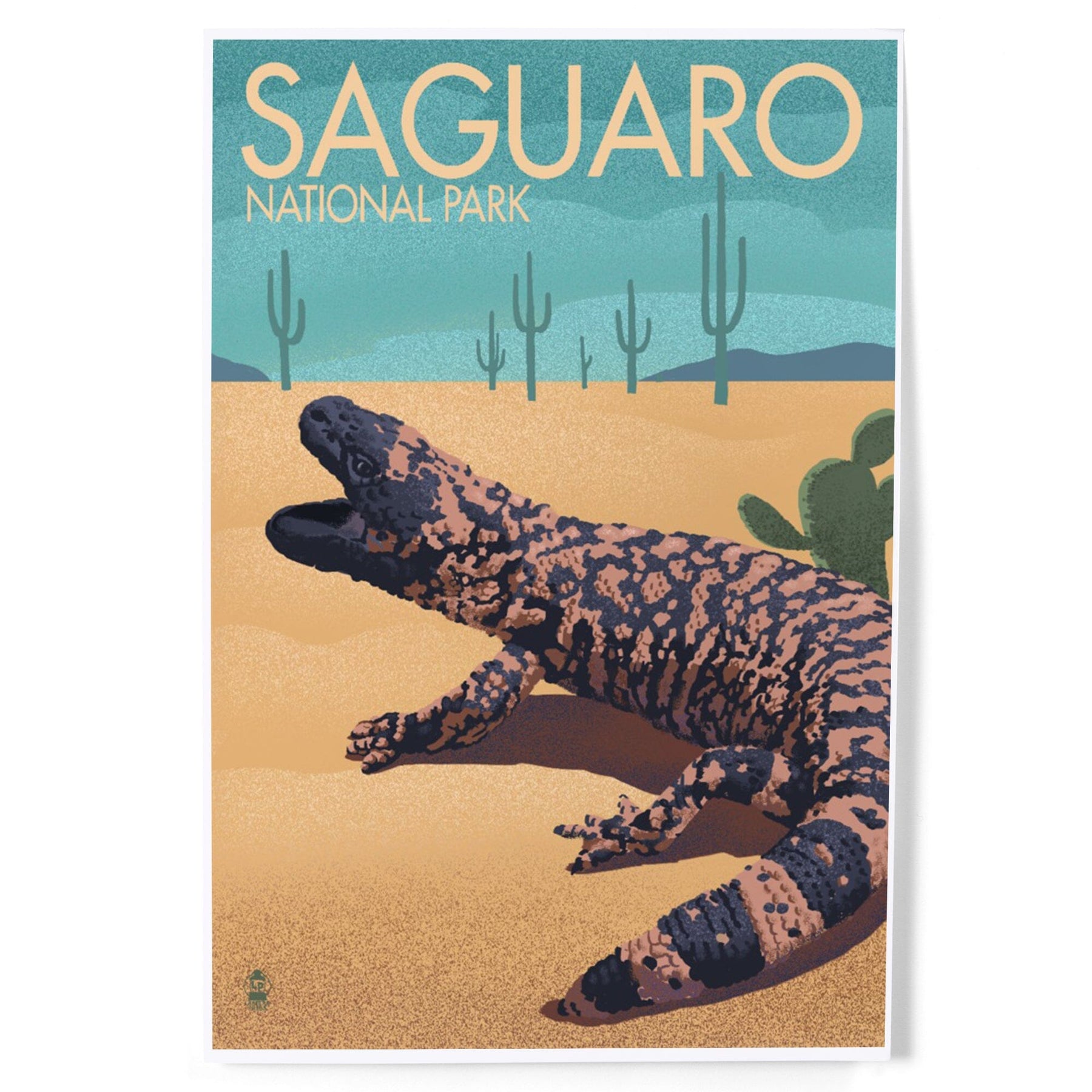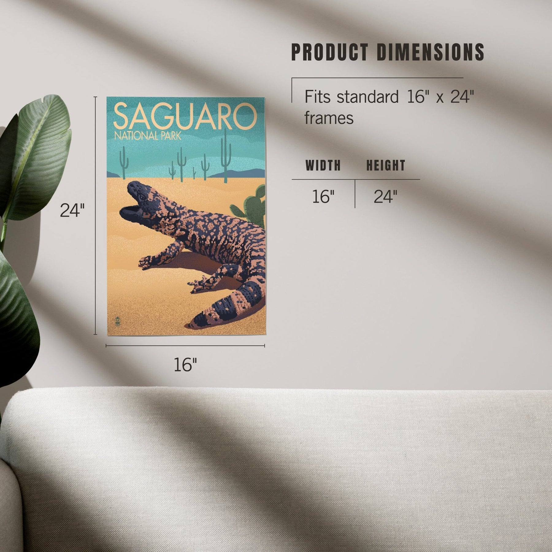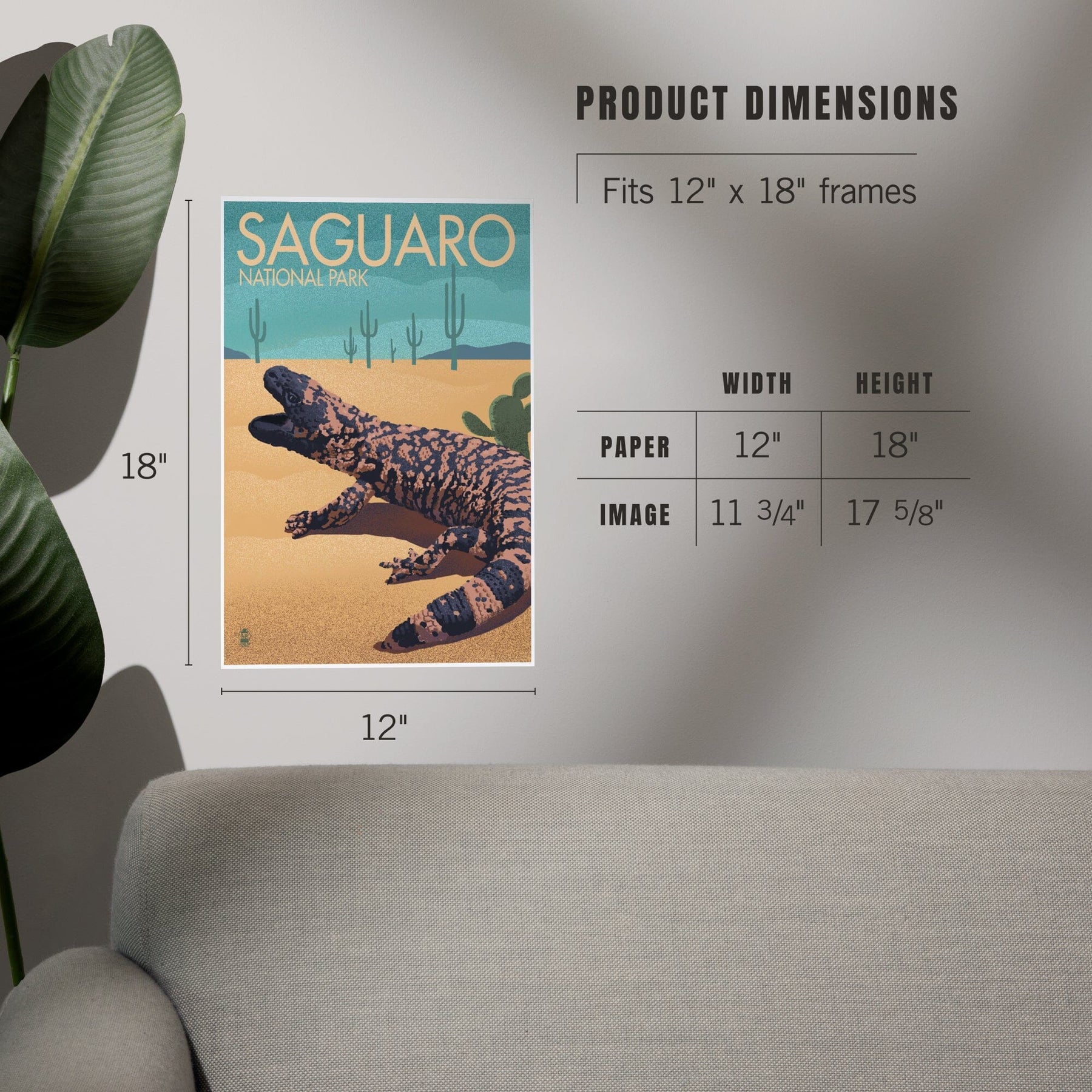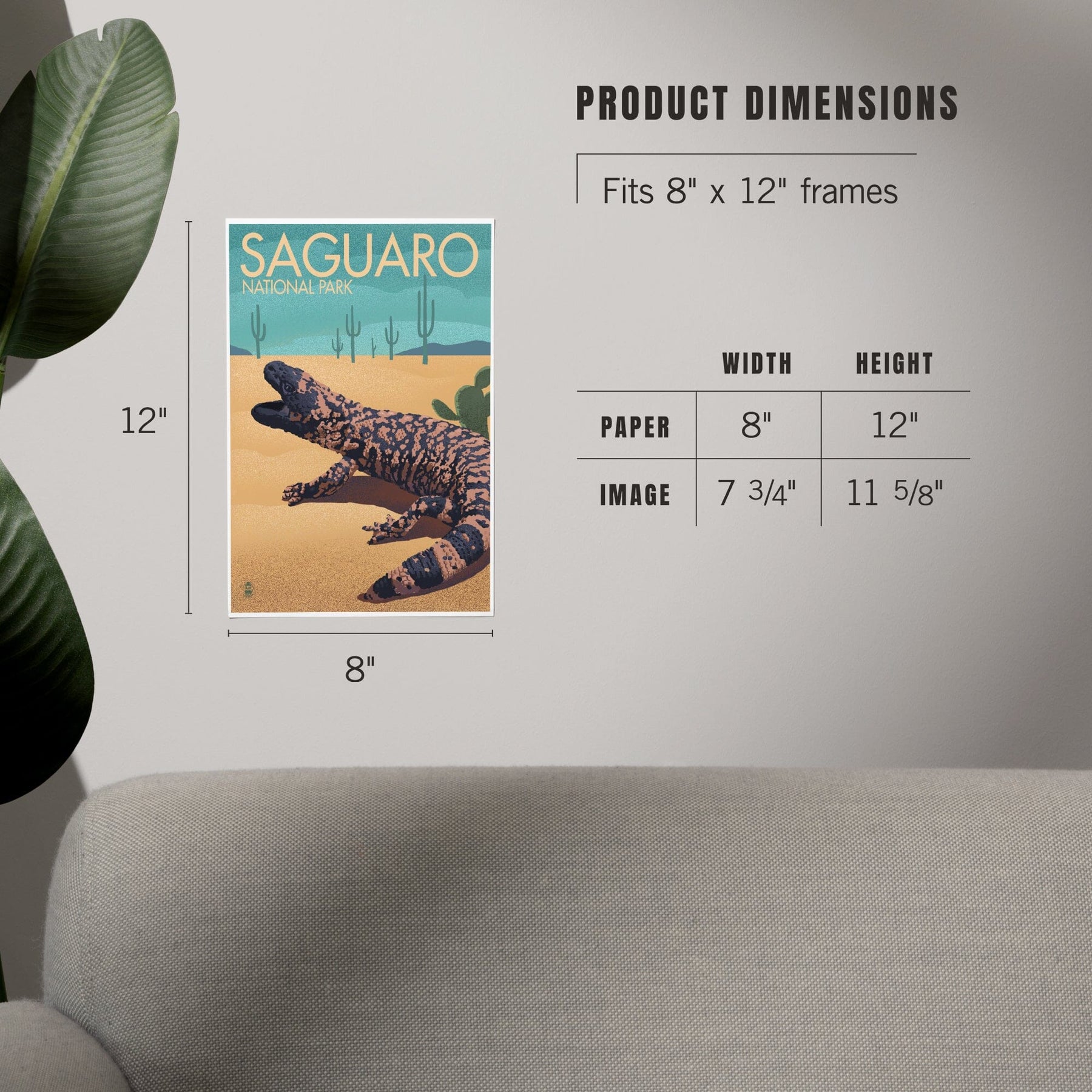 Saguaro National Park, Arizona, Gila Monster and Cactus, Lithograph, Art & Giclee Prints Art Lantern Press