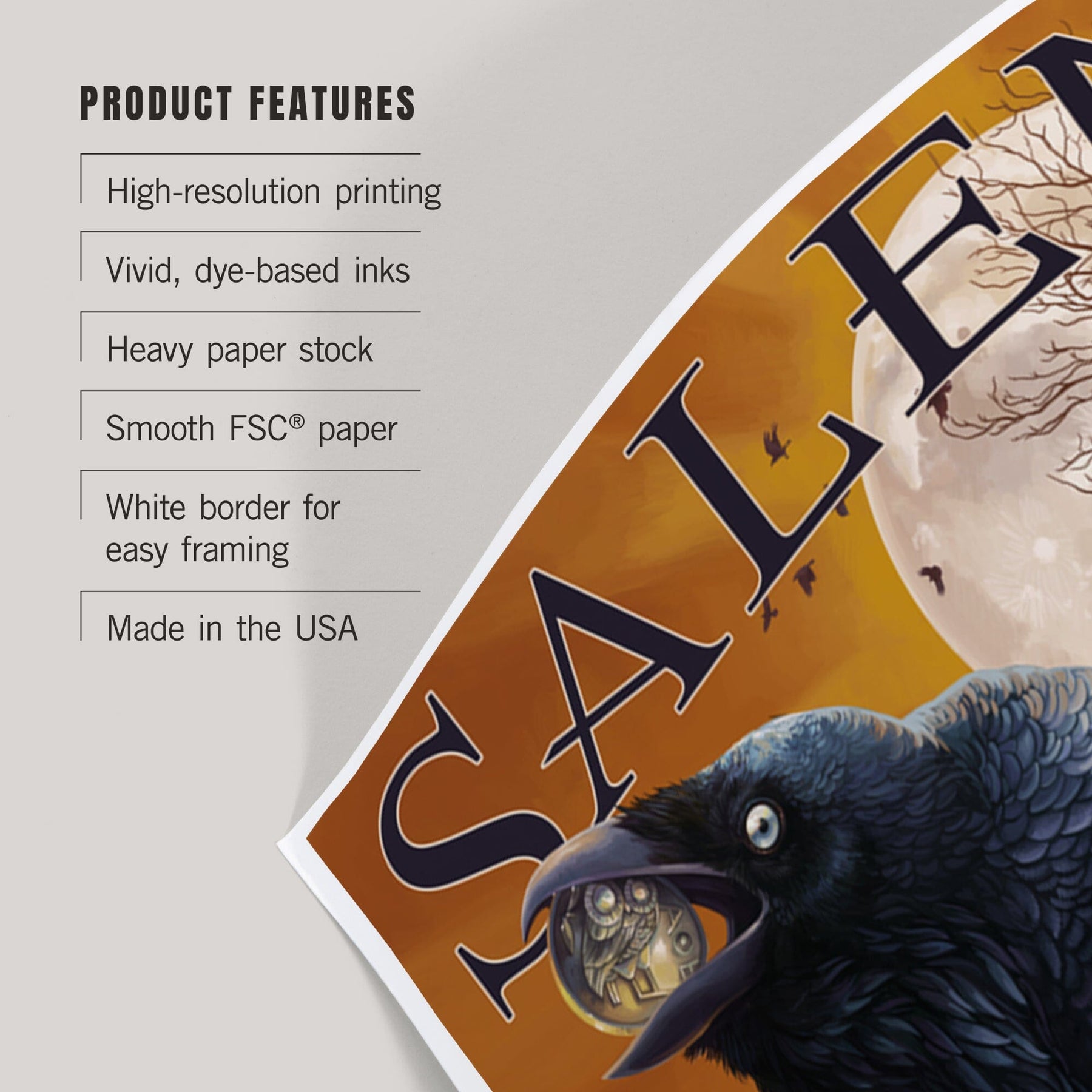 Salem, Massachusetts, Raven and Skull, Art & Giclee Prints Art Lantern Press