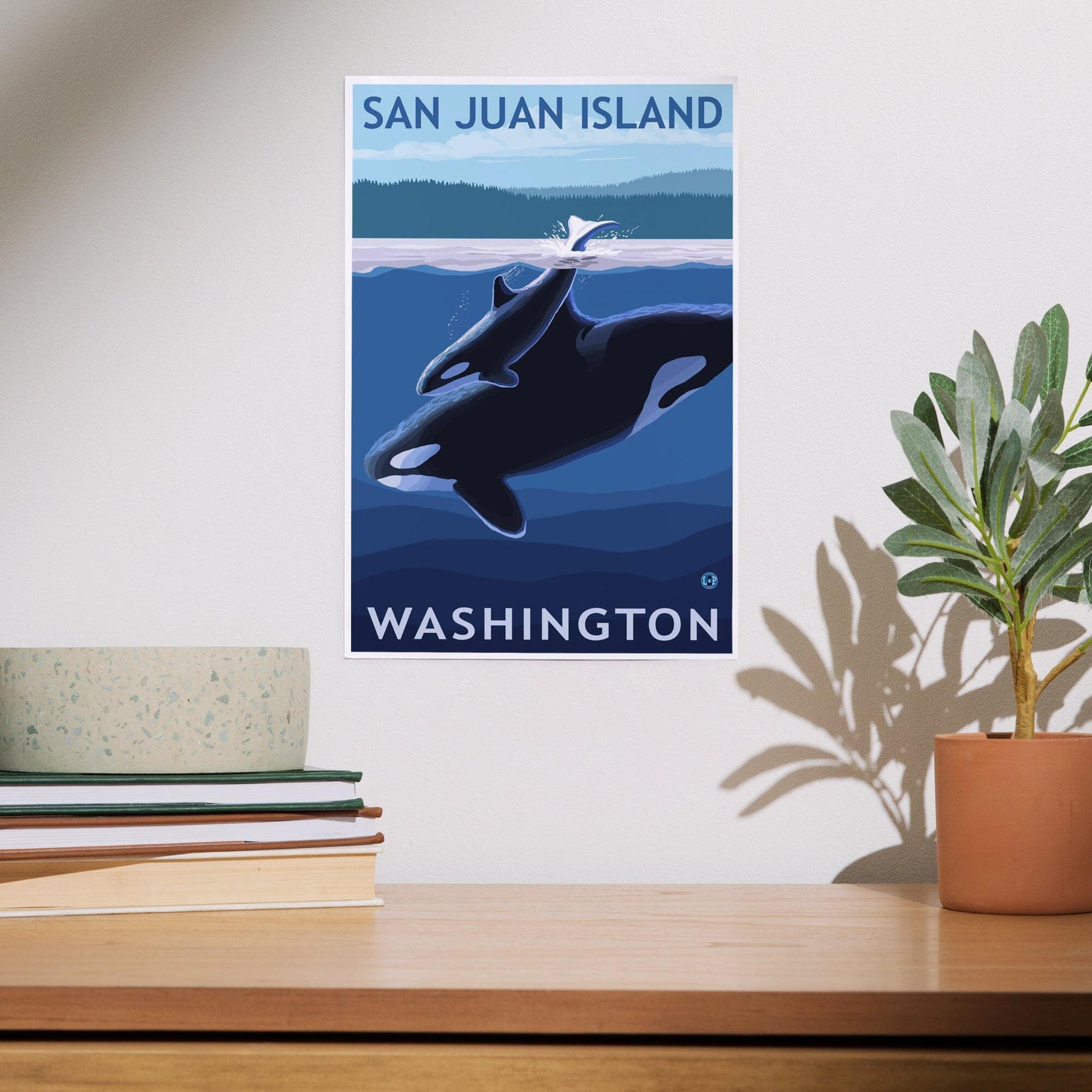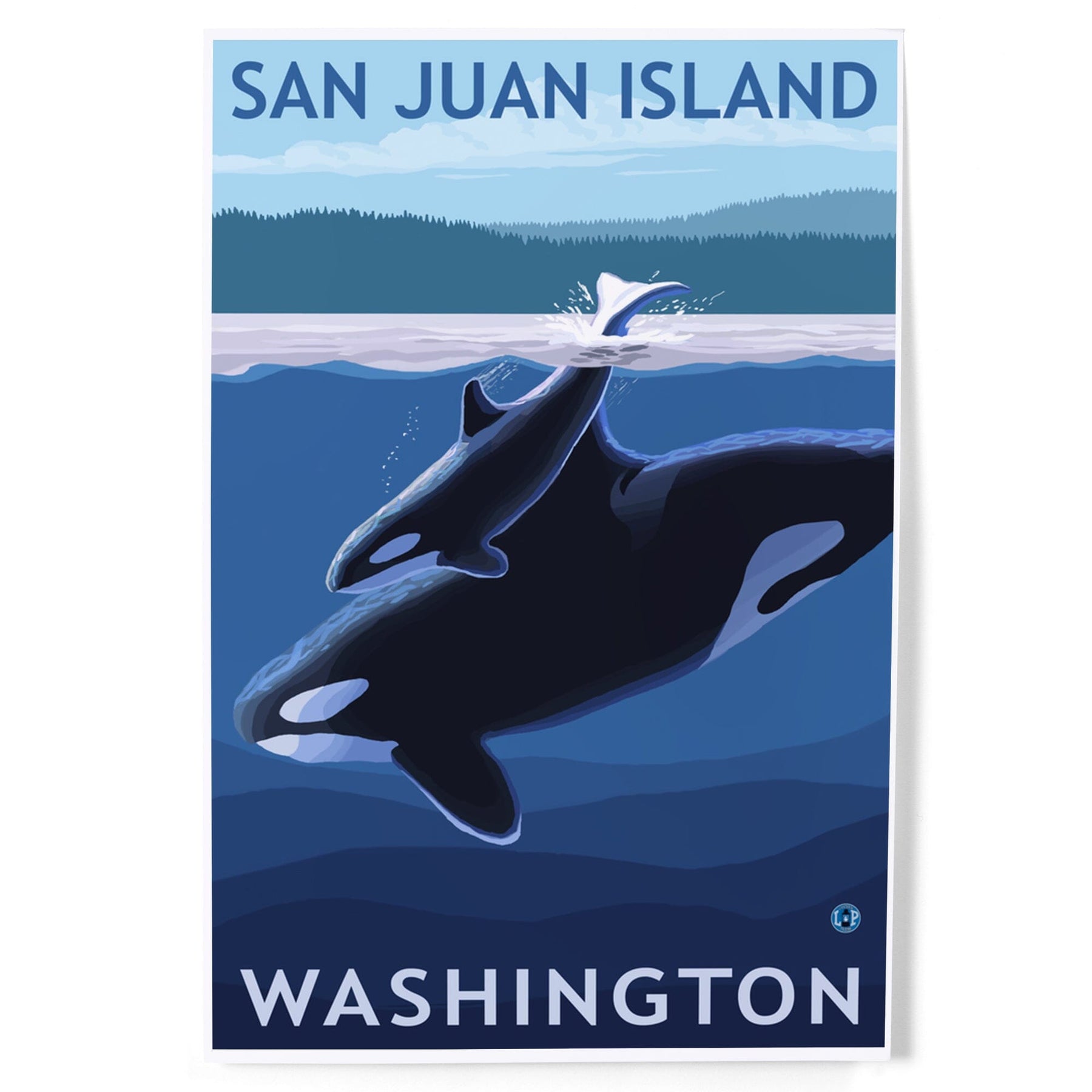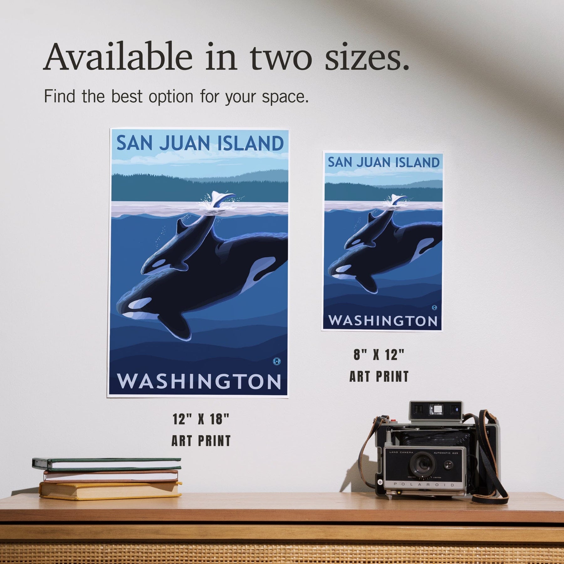 San Juan Island, Washington, Orca and Calf, Art & Giclee Prints Art Lantern Press