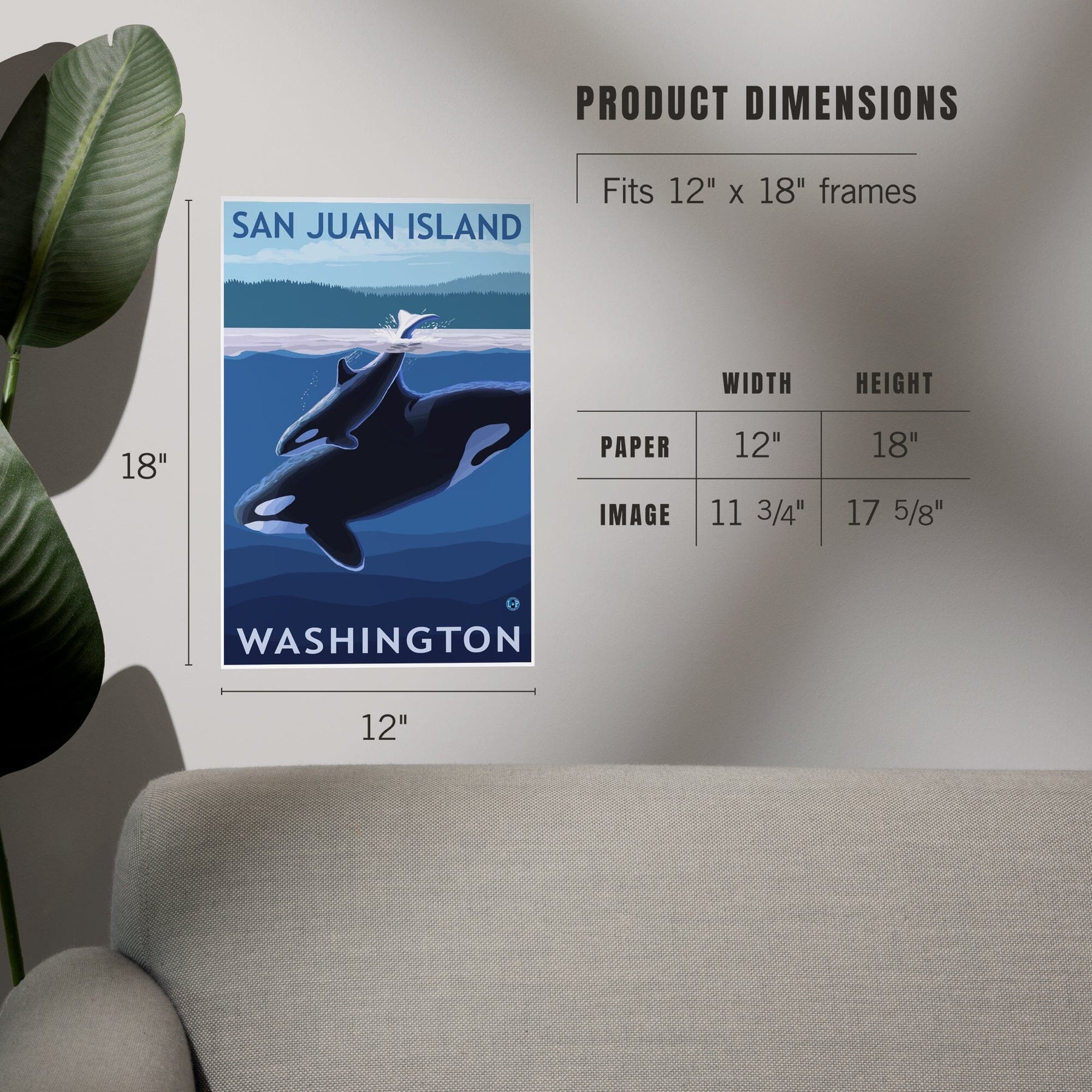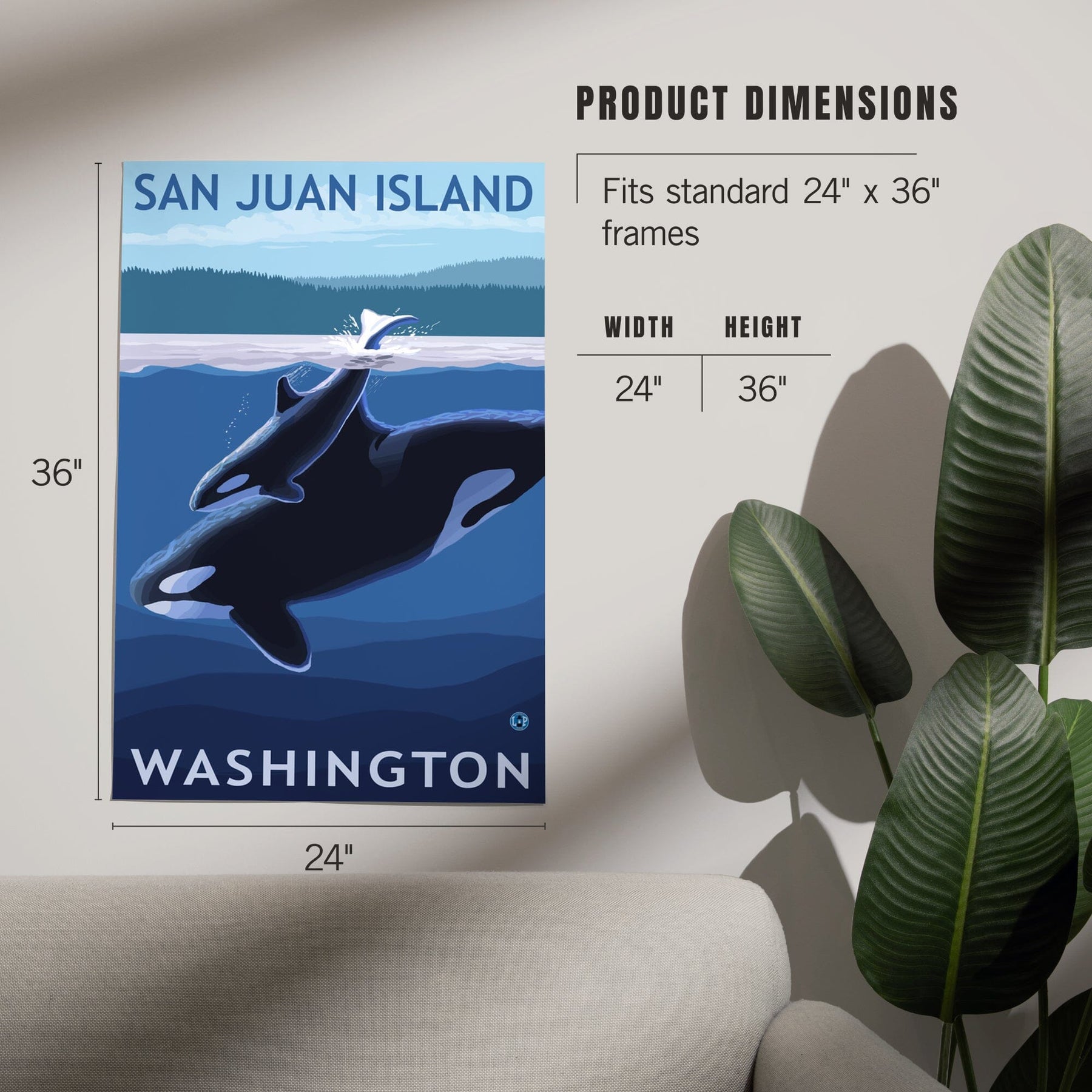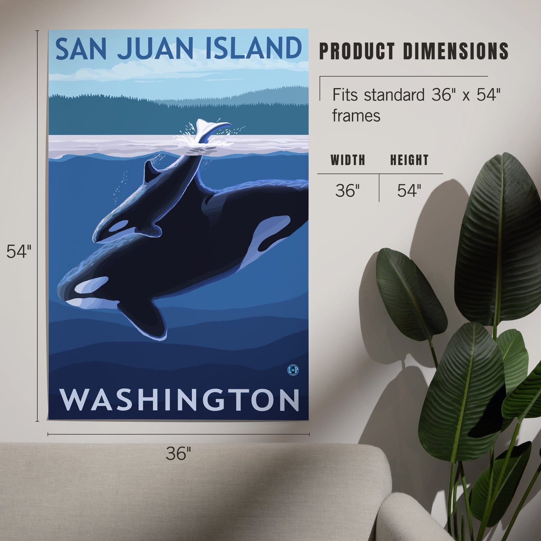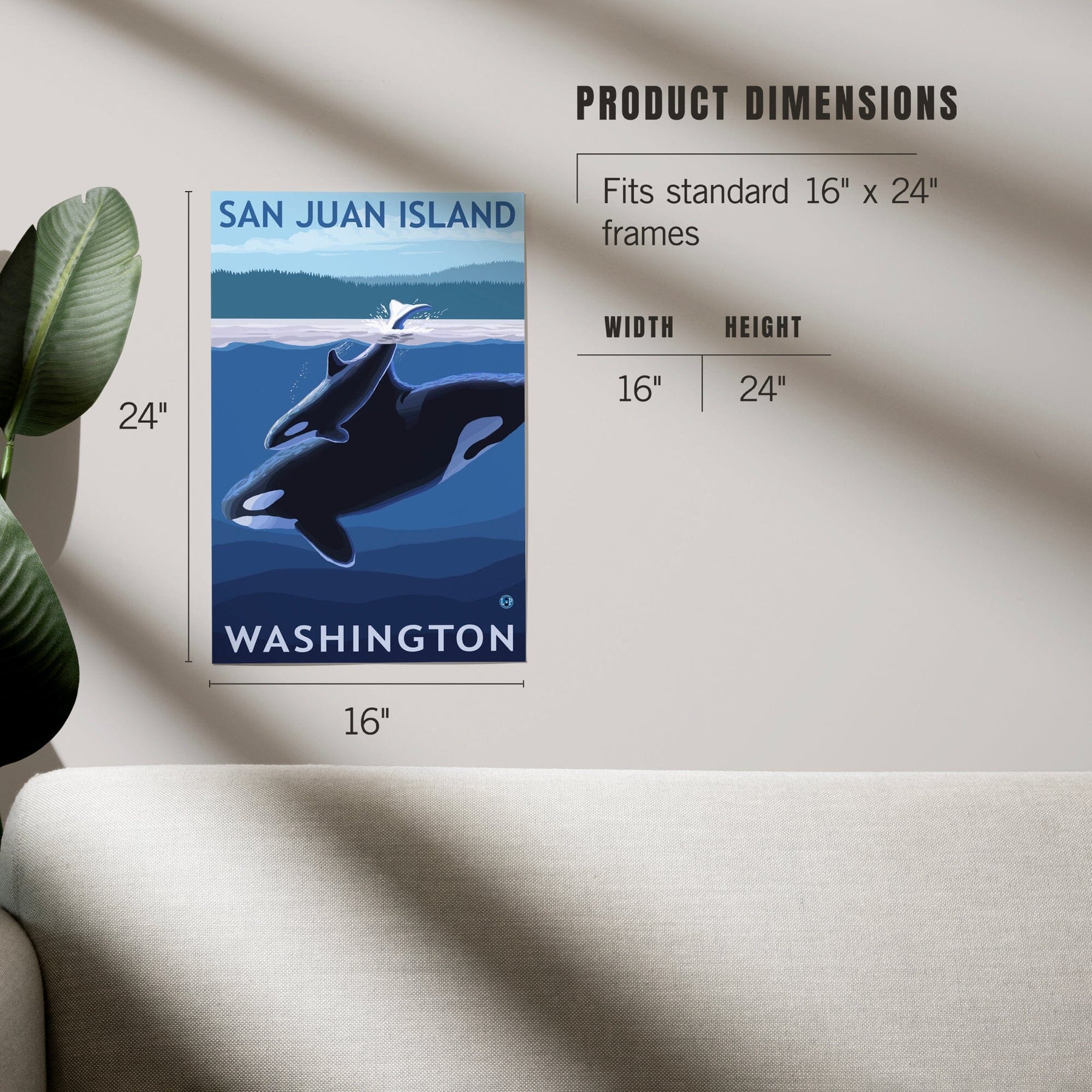 San Juan Island, Washington, Orca and Calf, Art & Giclee Prints Art Lantern Press