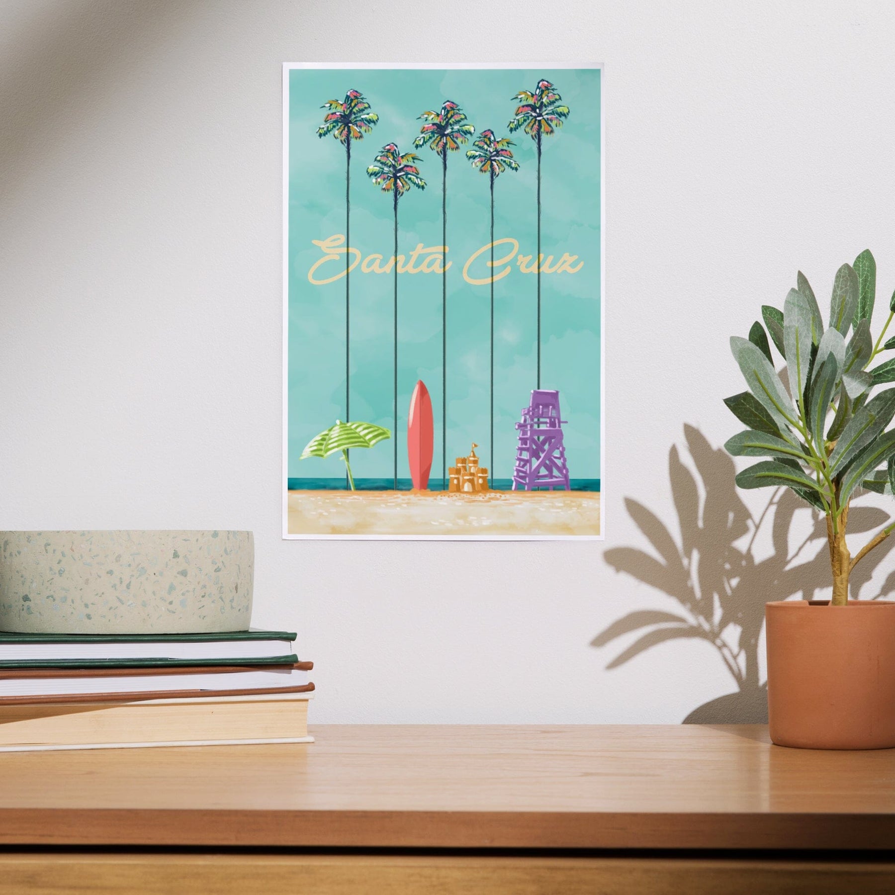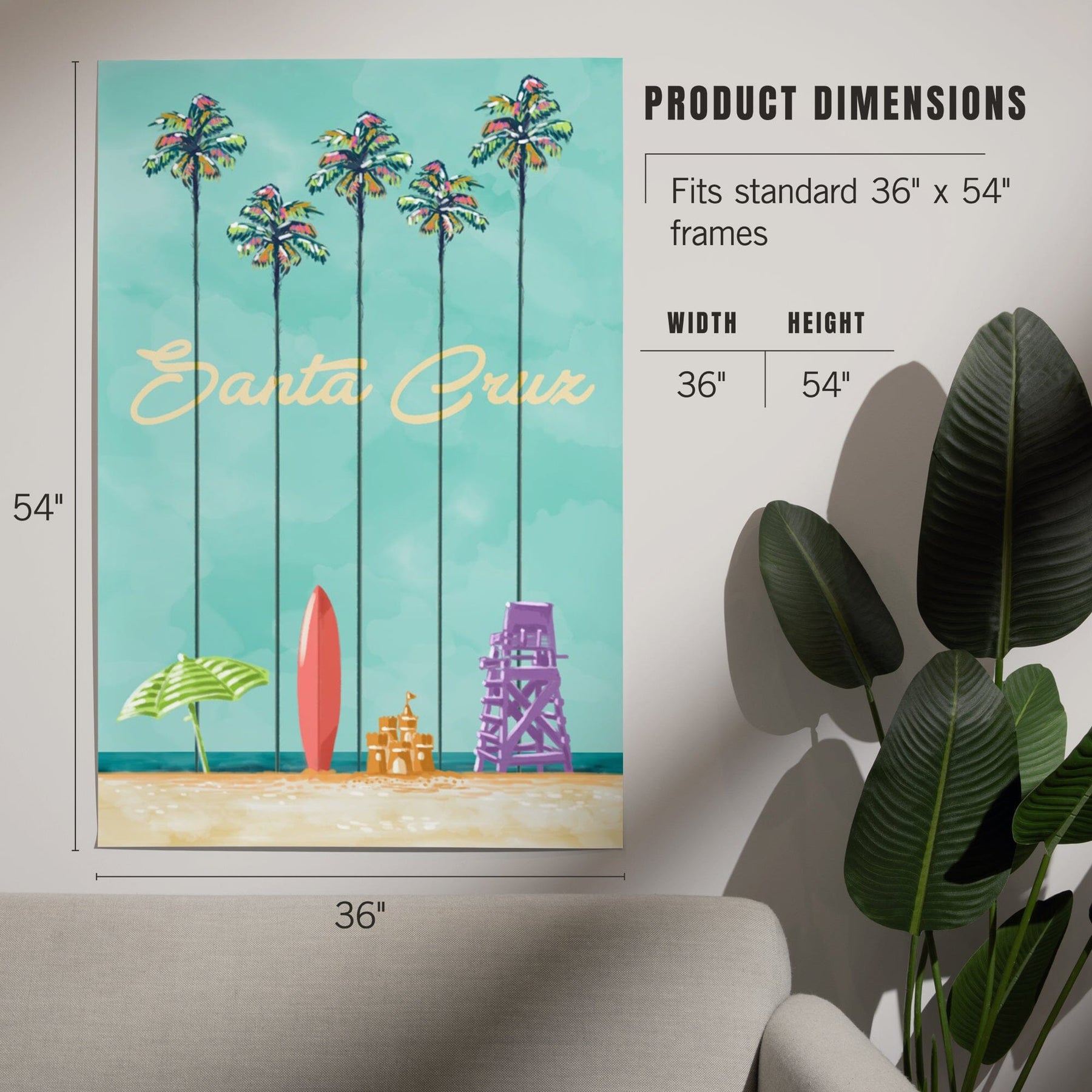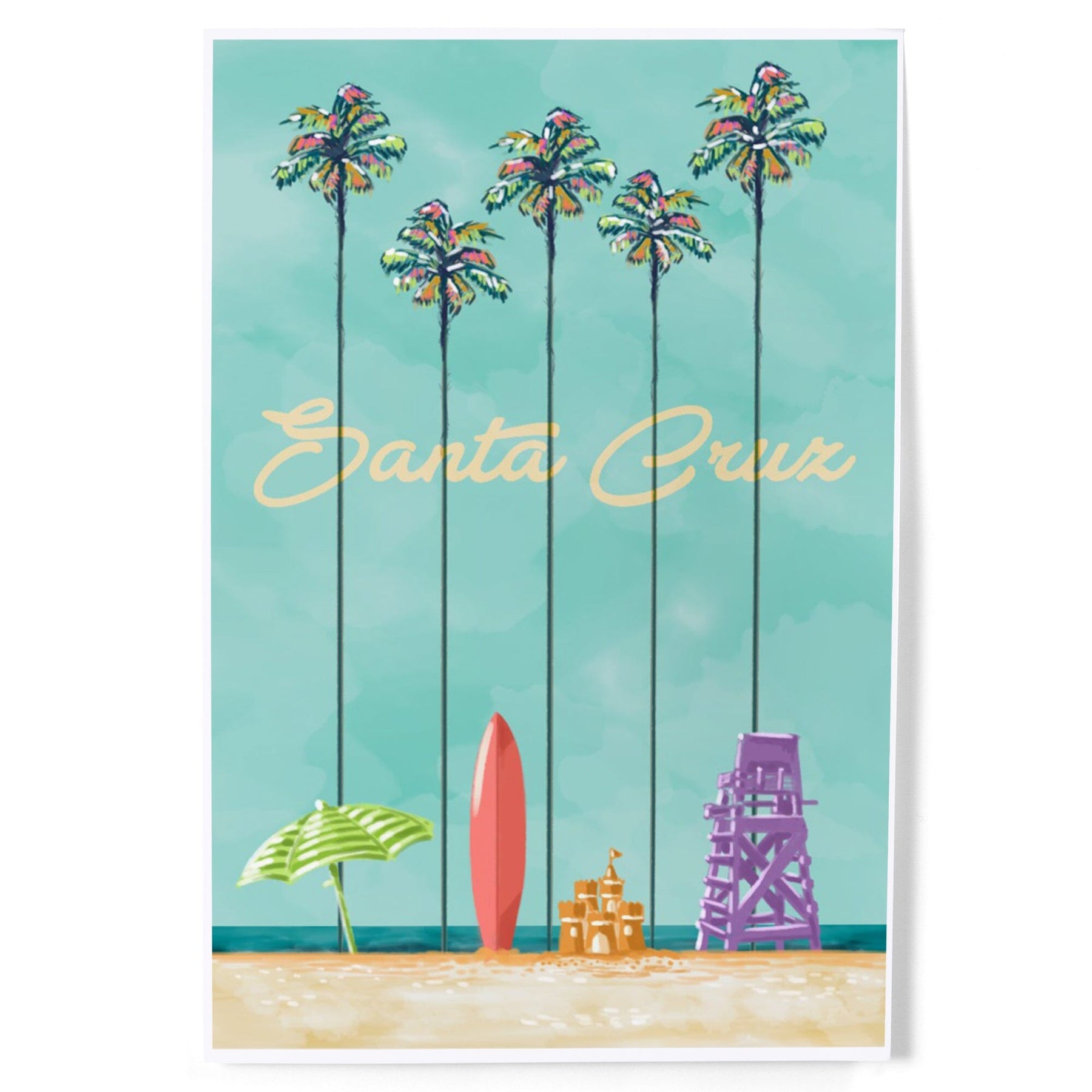 Santa Cruz, California, Tall Palms Beach Scene, Art & Giclee Prints