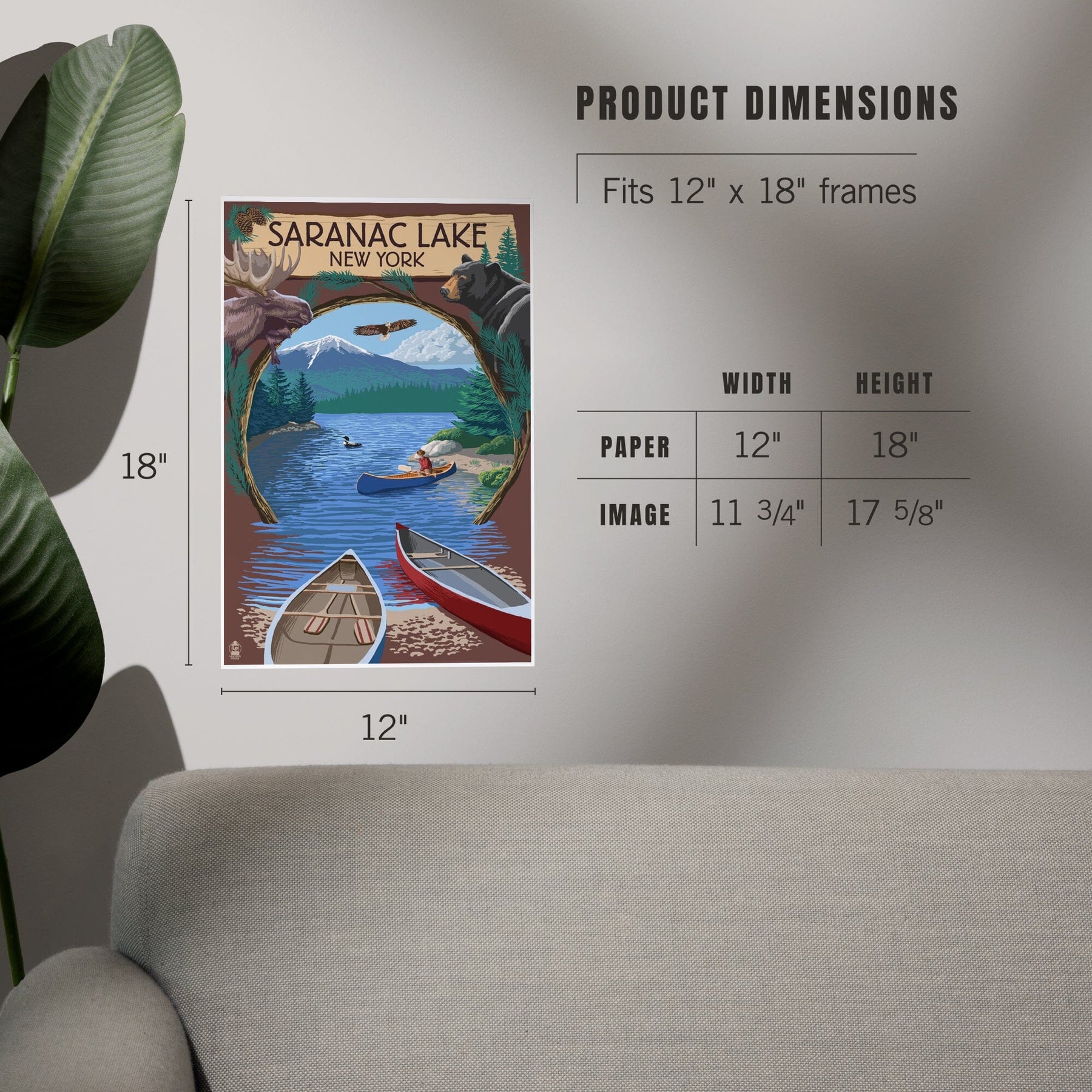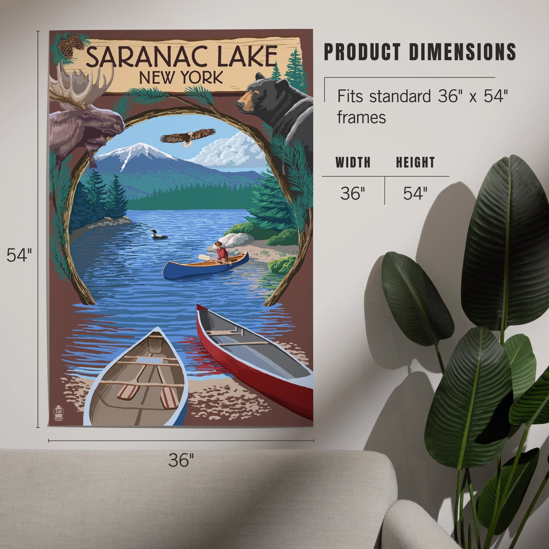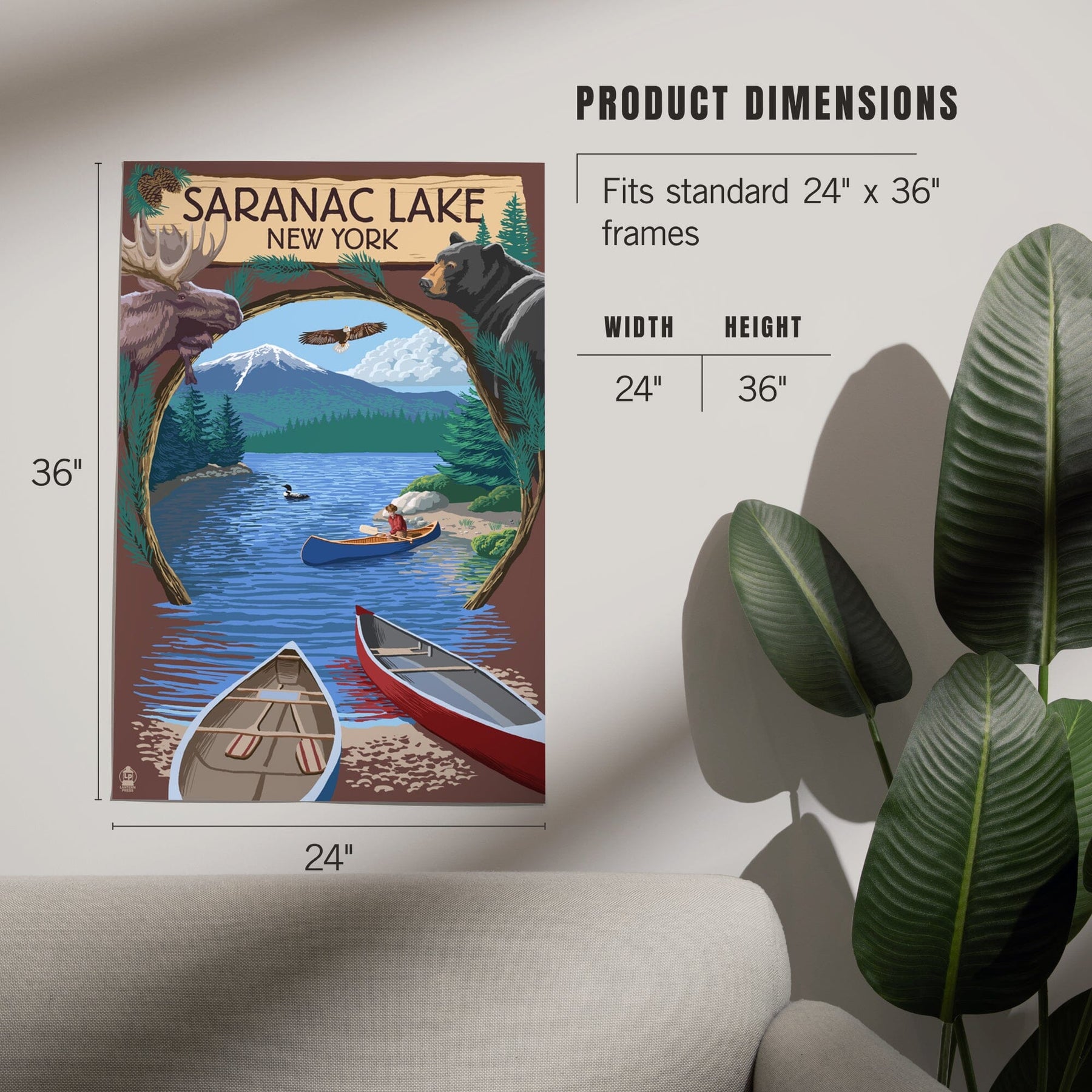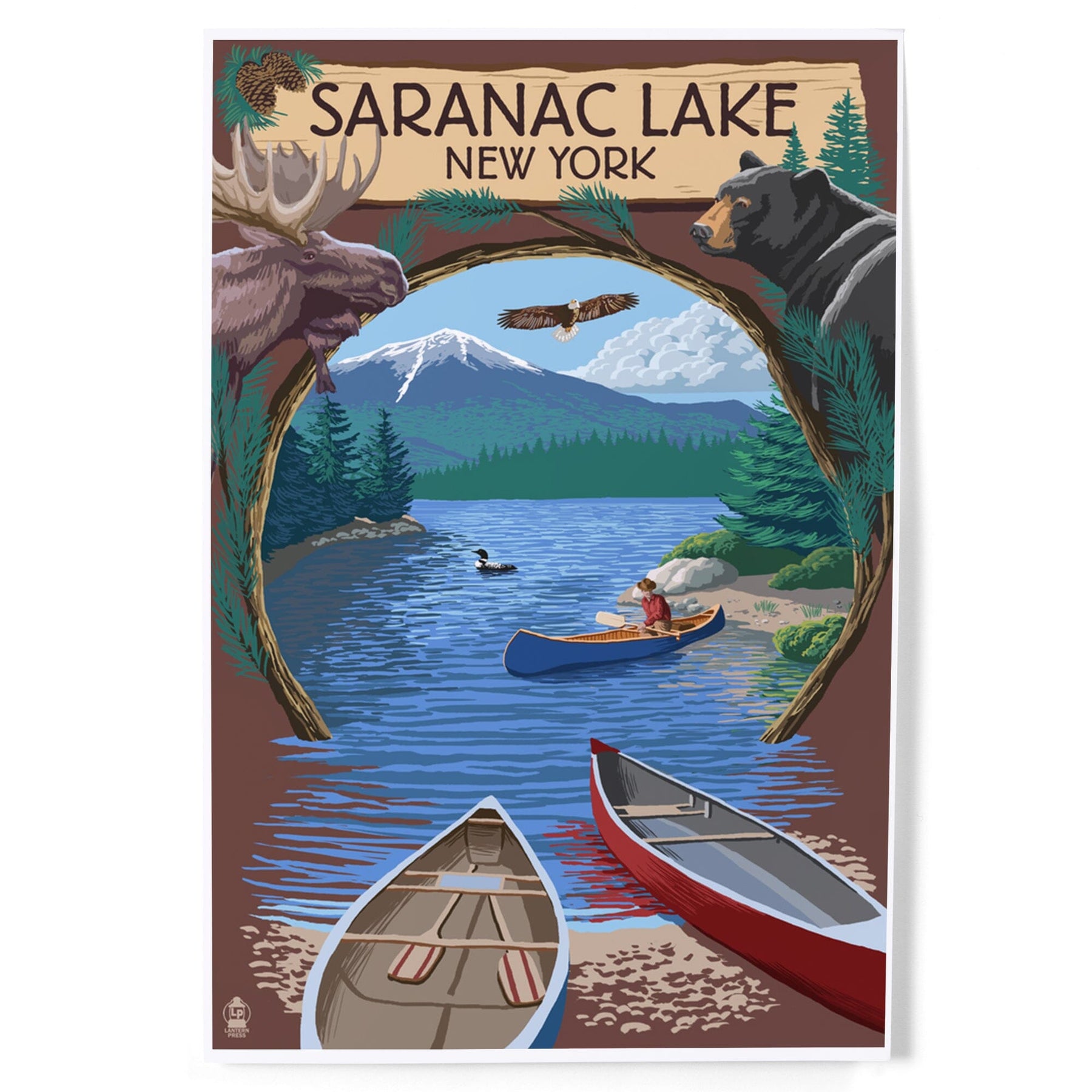 Saranac Lake, New York, Adirondacks Canoe Scene, Art & Giclee Prints Art Lantern Press