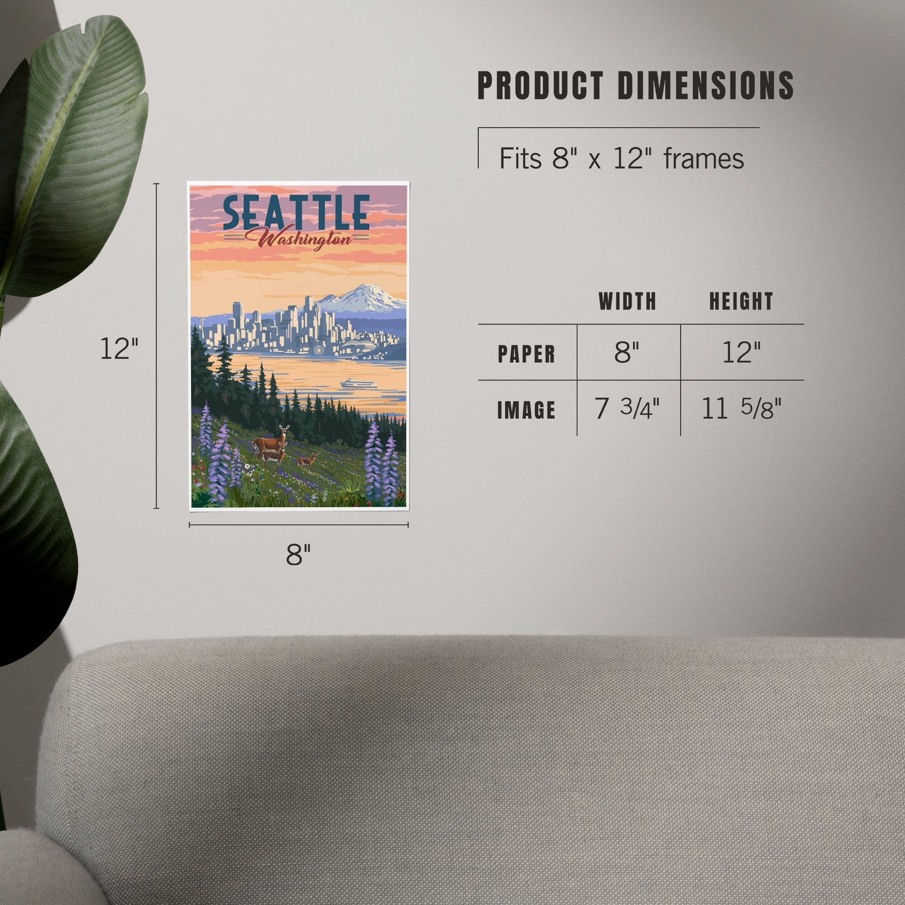 Seattle, Washington, Deer and Spring Flowers, Art & Giclee Prints Art Lantern Press