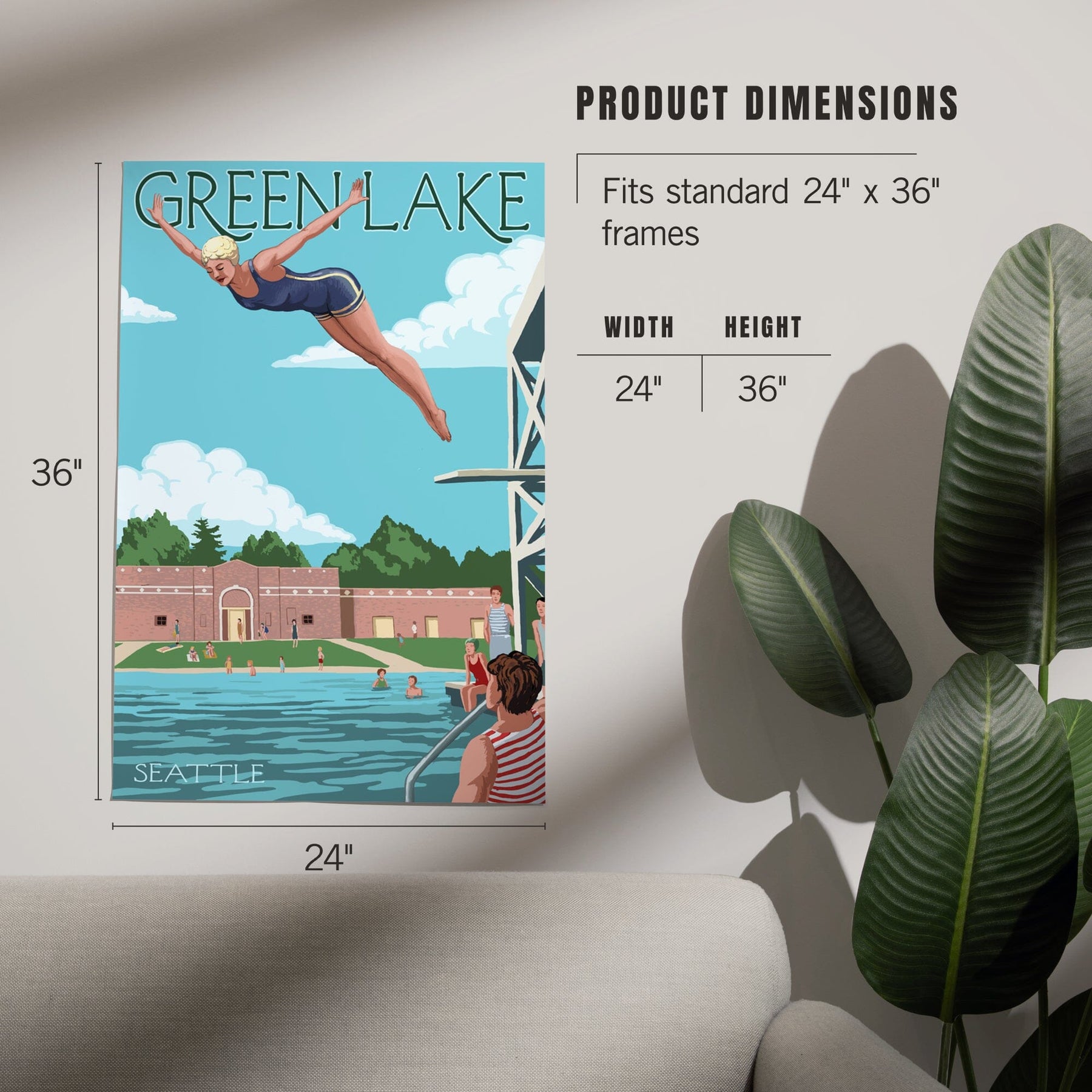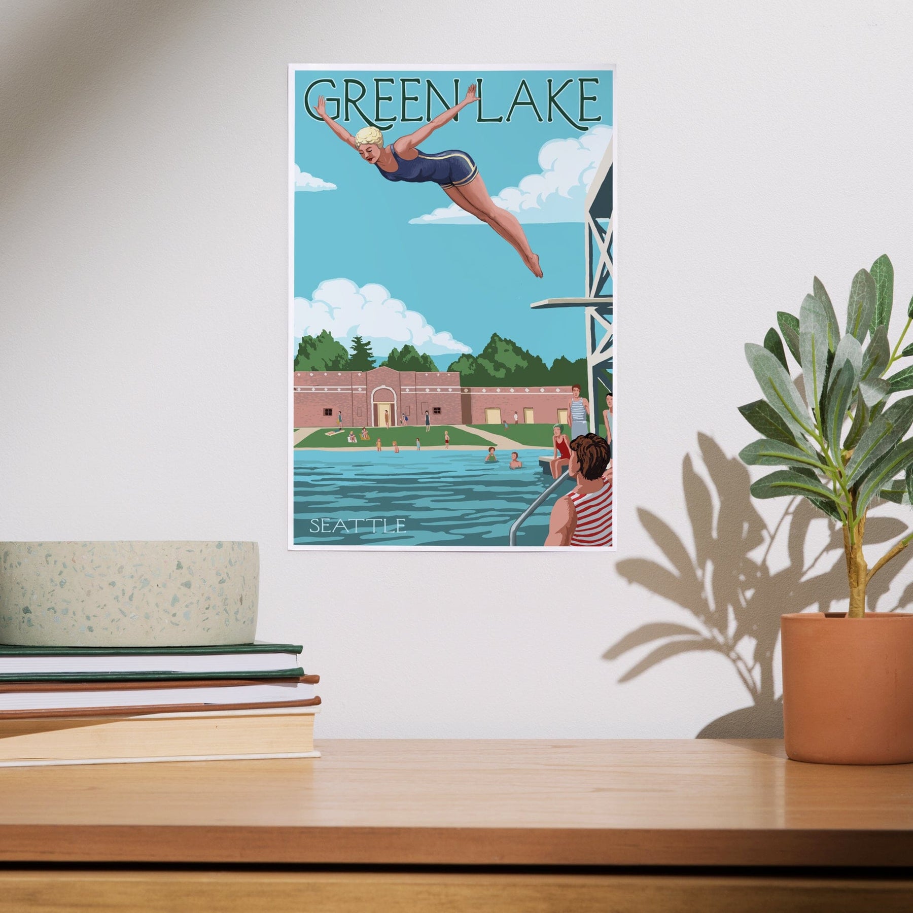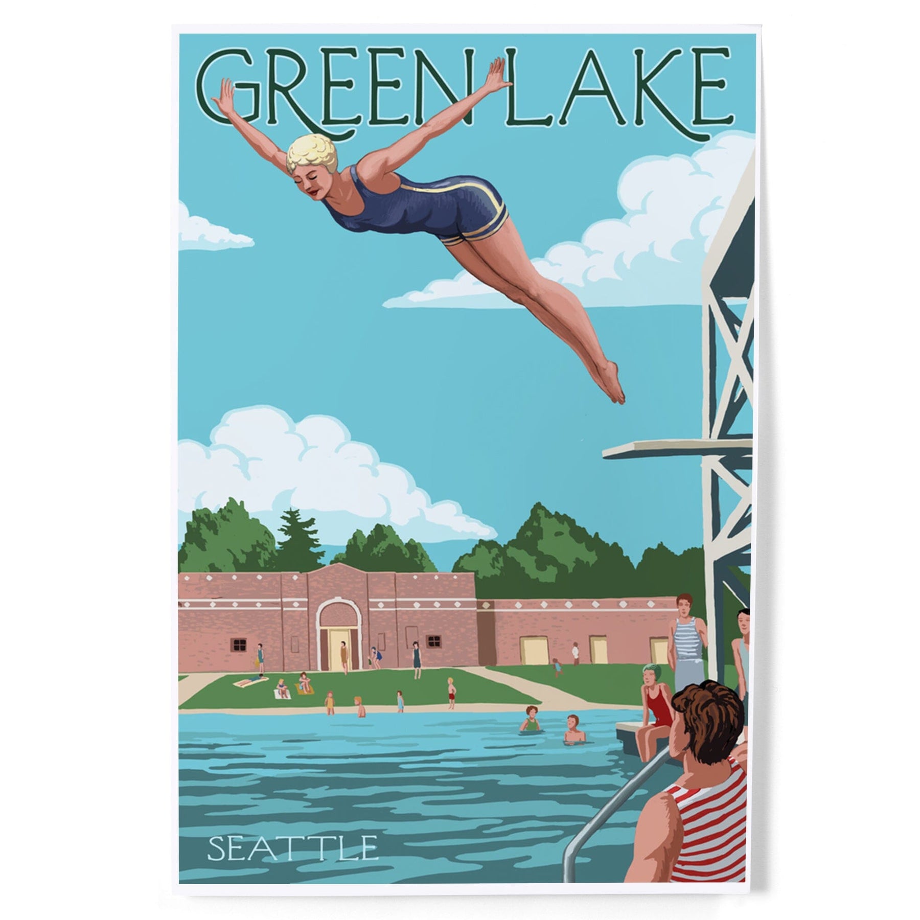 Seattle, Washington, Green Lake Woman Diving, Art & Giclee Prints Art Lantern Press
