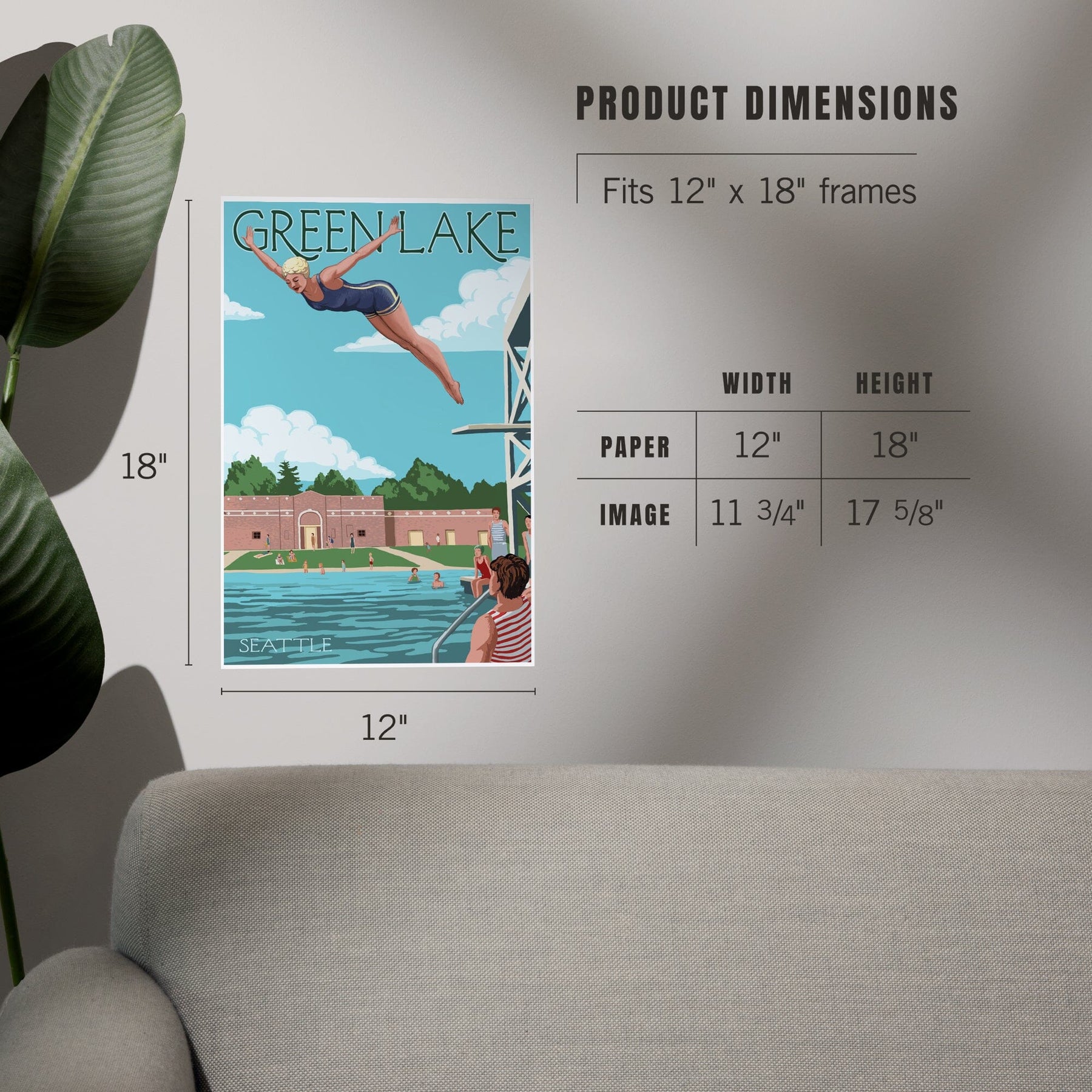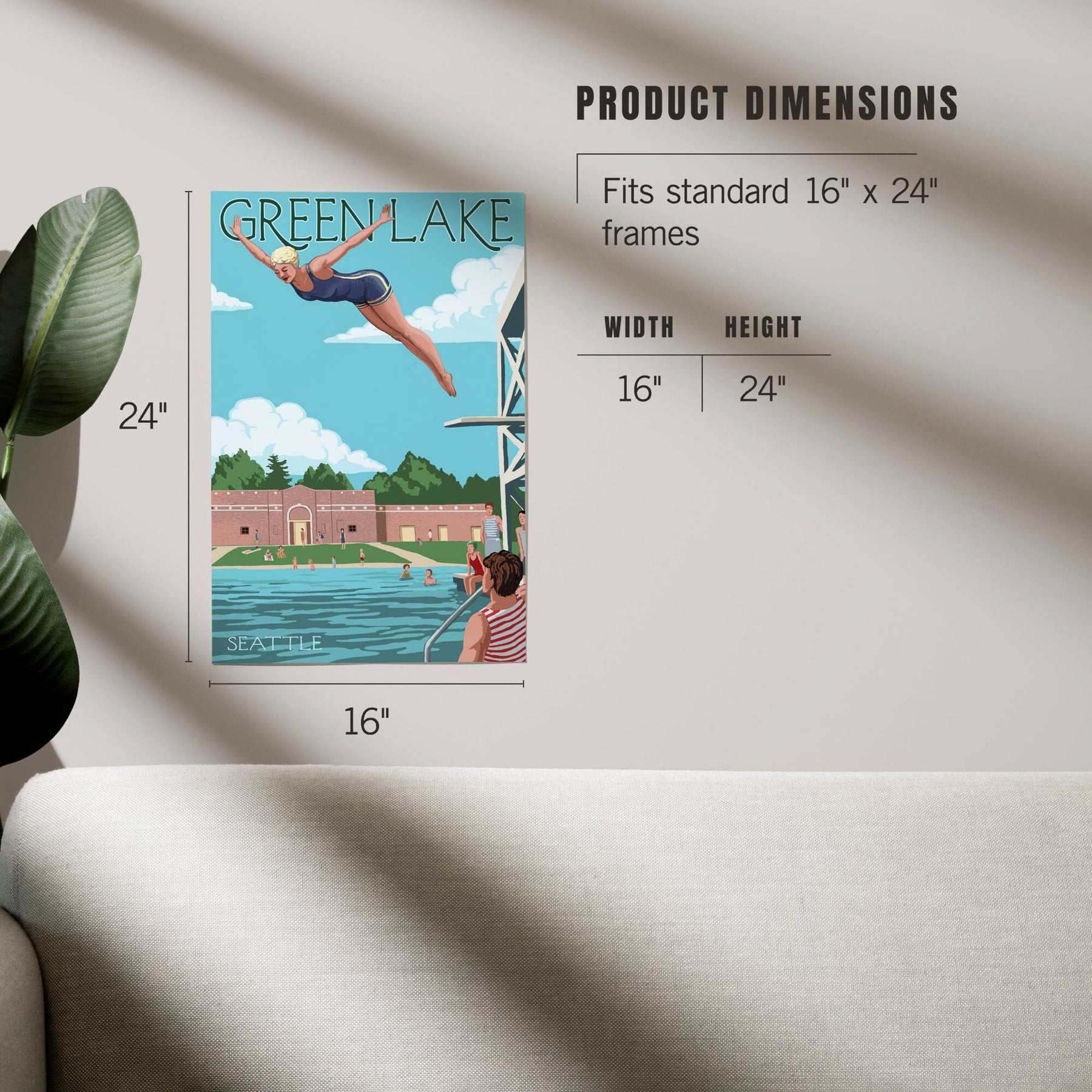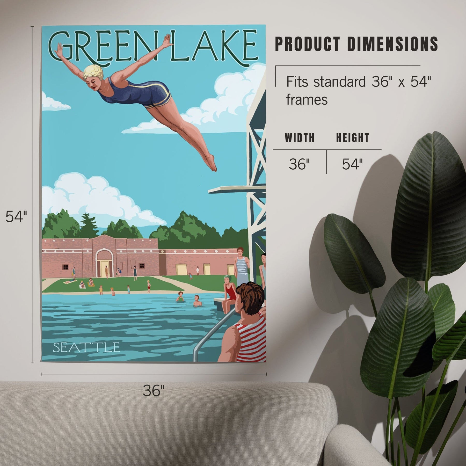 Seattle, Washington, Green Lake Woman Diving, Art & Giclee Prints Art Lantern Press