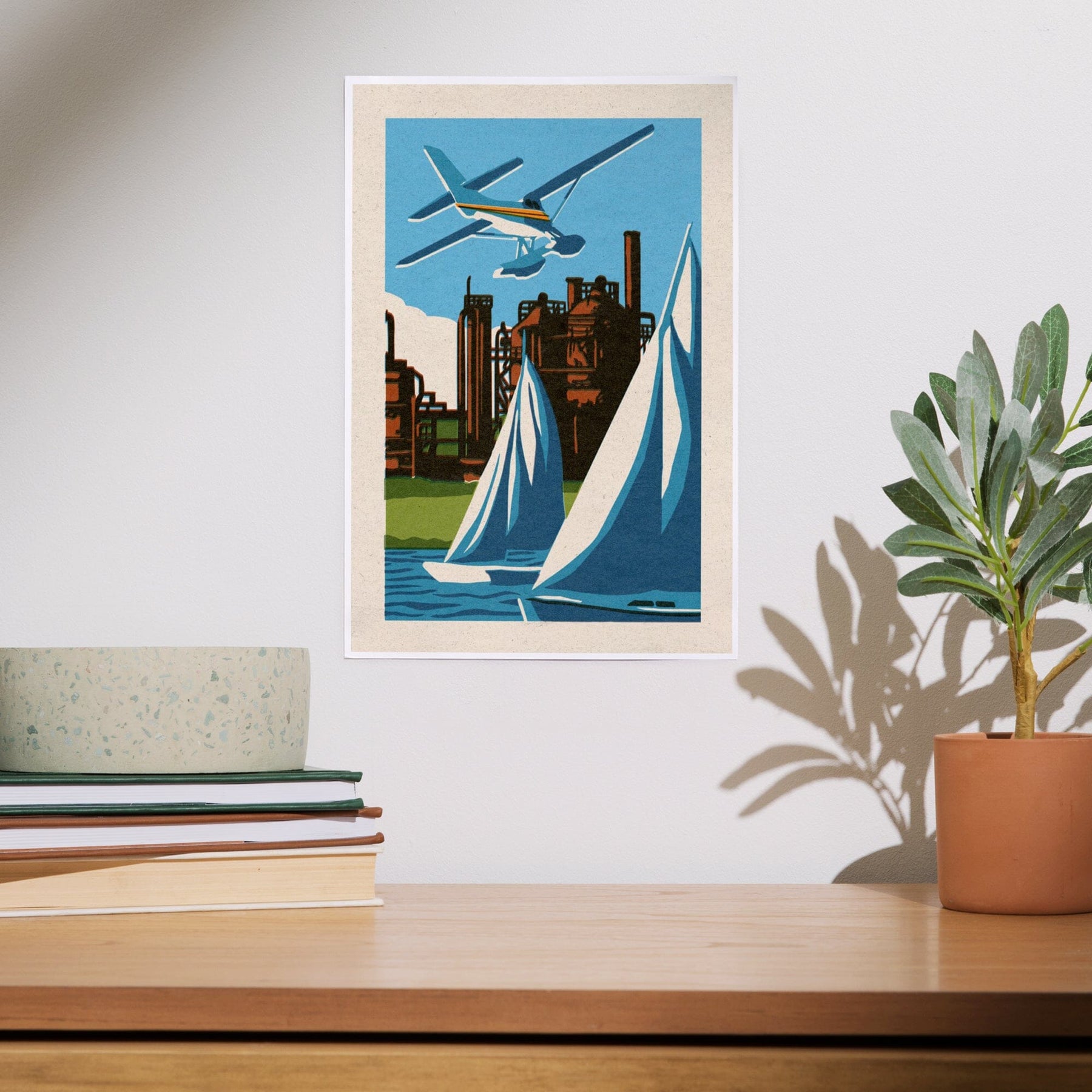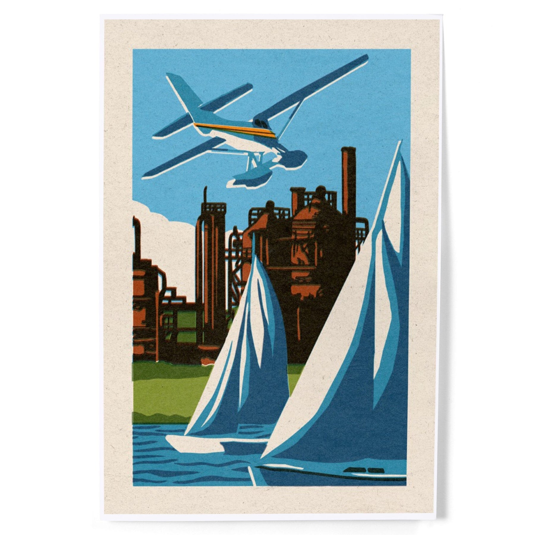 Seattle, Washington, Lake Union, Woodblock, Art & Giclee Prints