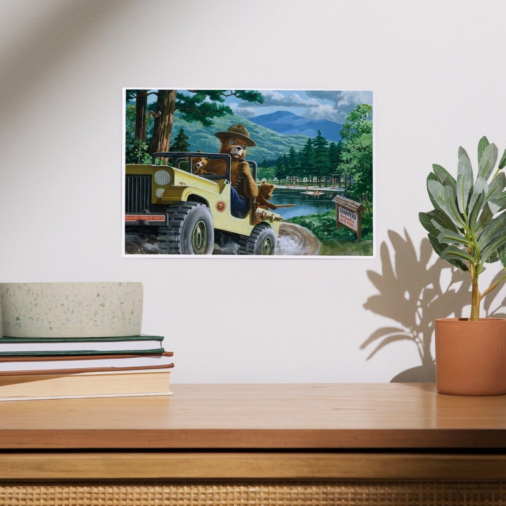 Smokey Bear, Leaving in SUV, Officially Licensed Vintage Poster, Art & Giclee Prints