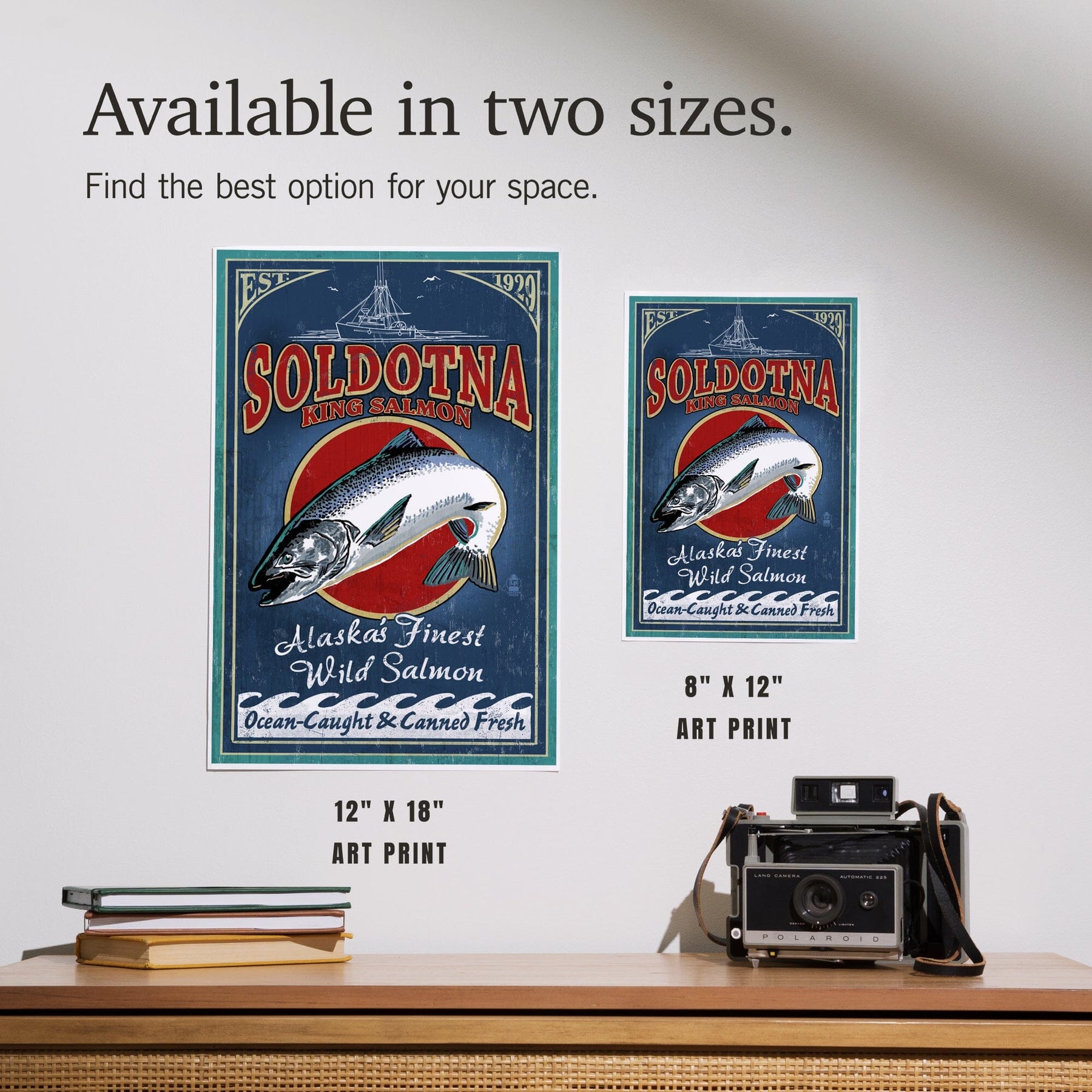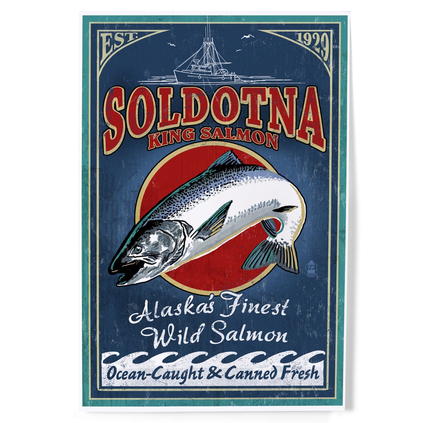 Soldotna, Alaska, Salmon Vintage Sign Art Lantern Press