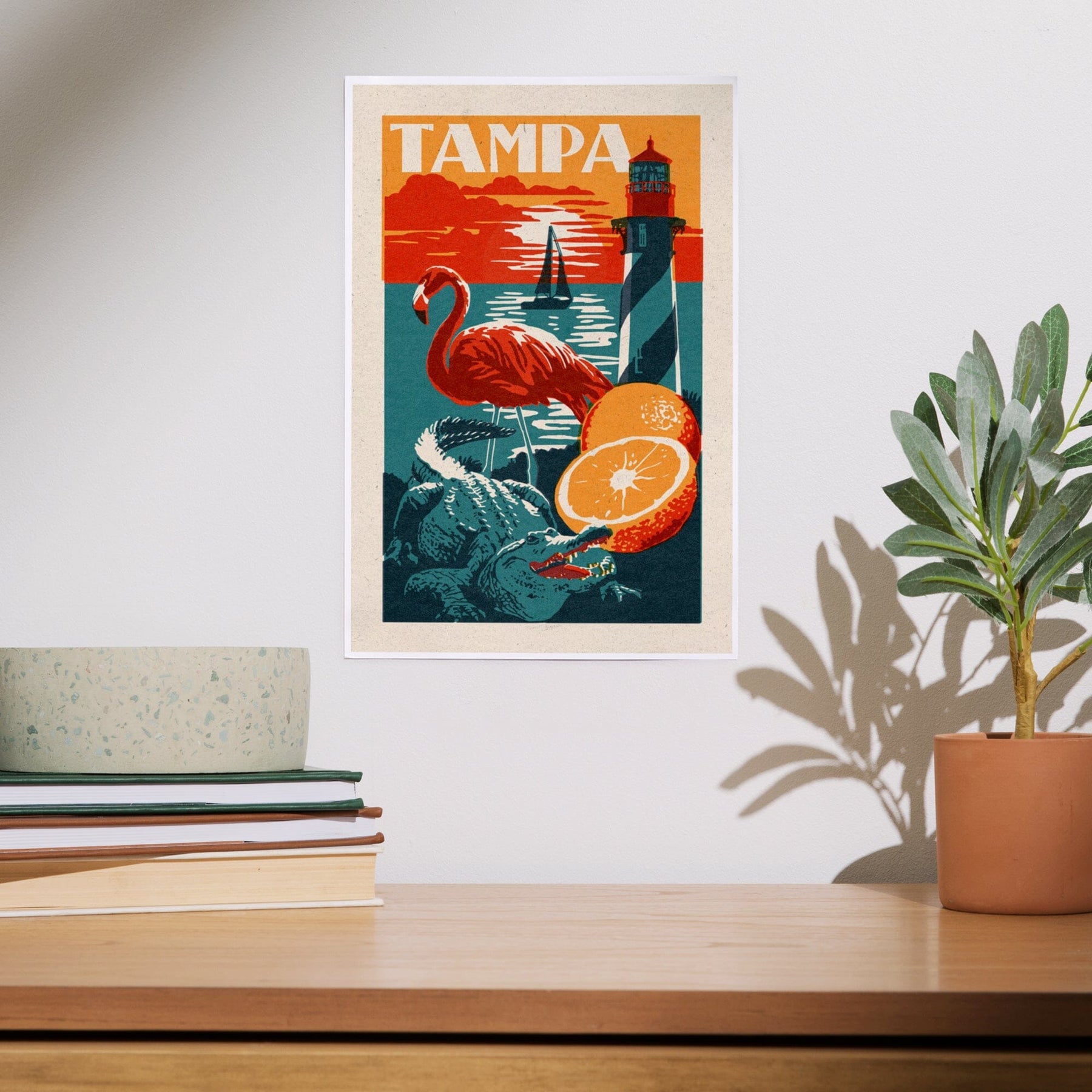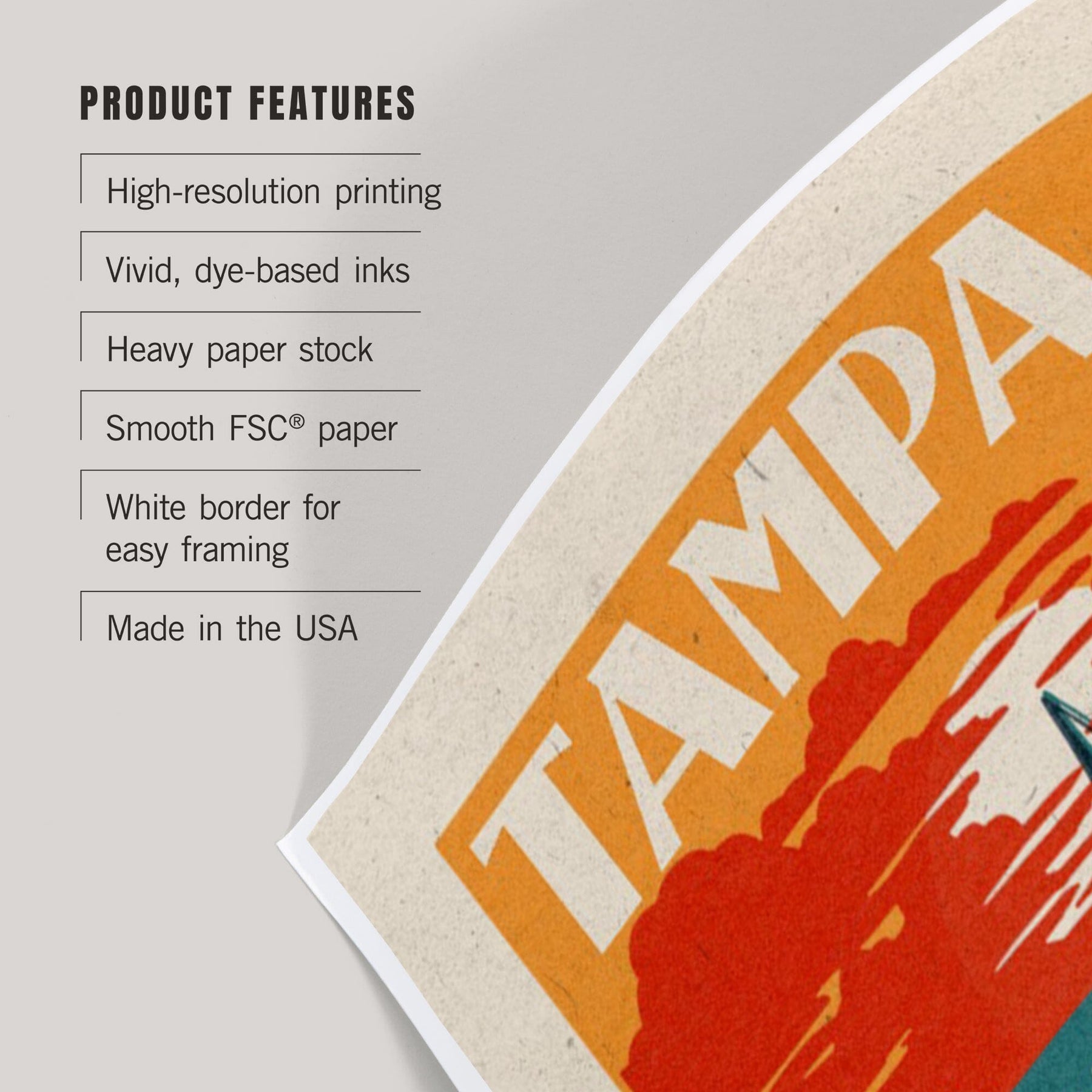 Tampa, Florida, Woodblock, Art & Giclee Prints Art Lantern Press