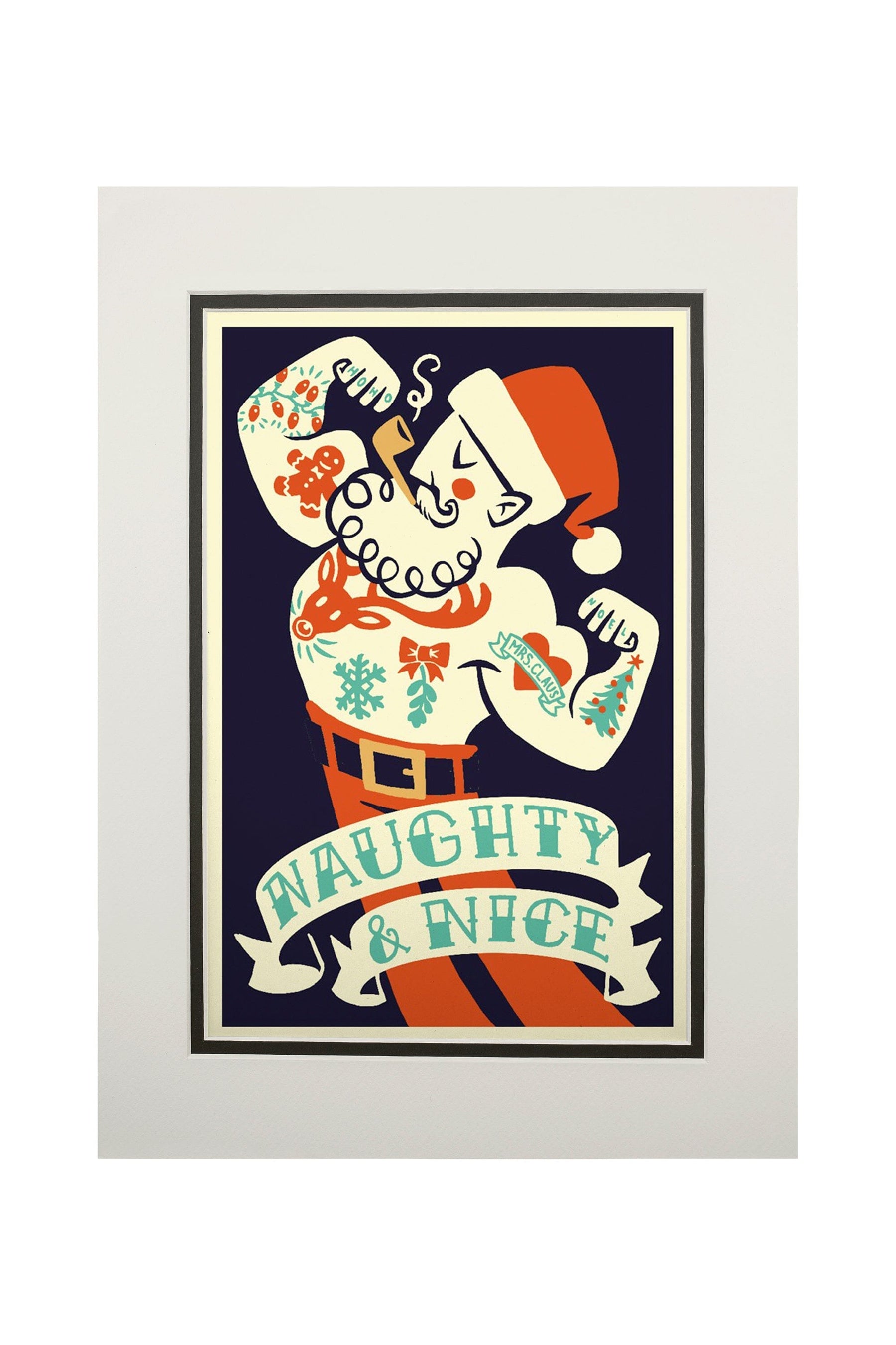 Tattoo Santa, Retro Christmas, Art & Giclee Prints