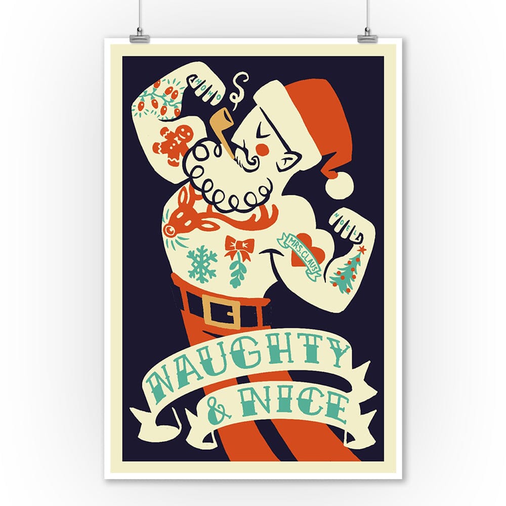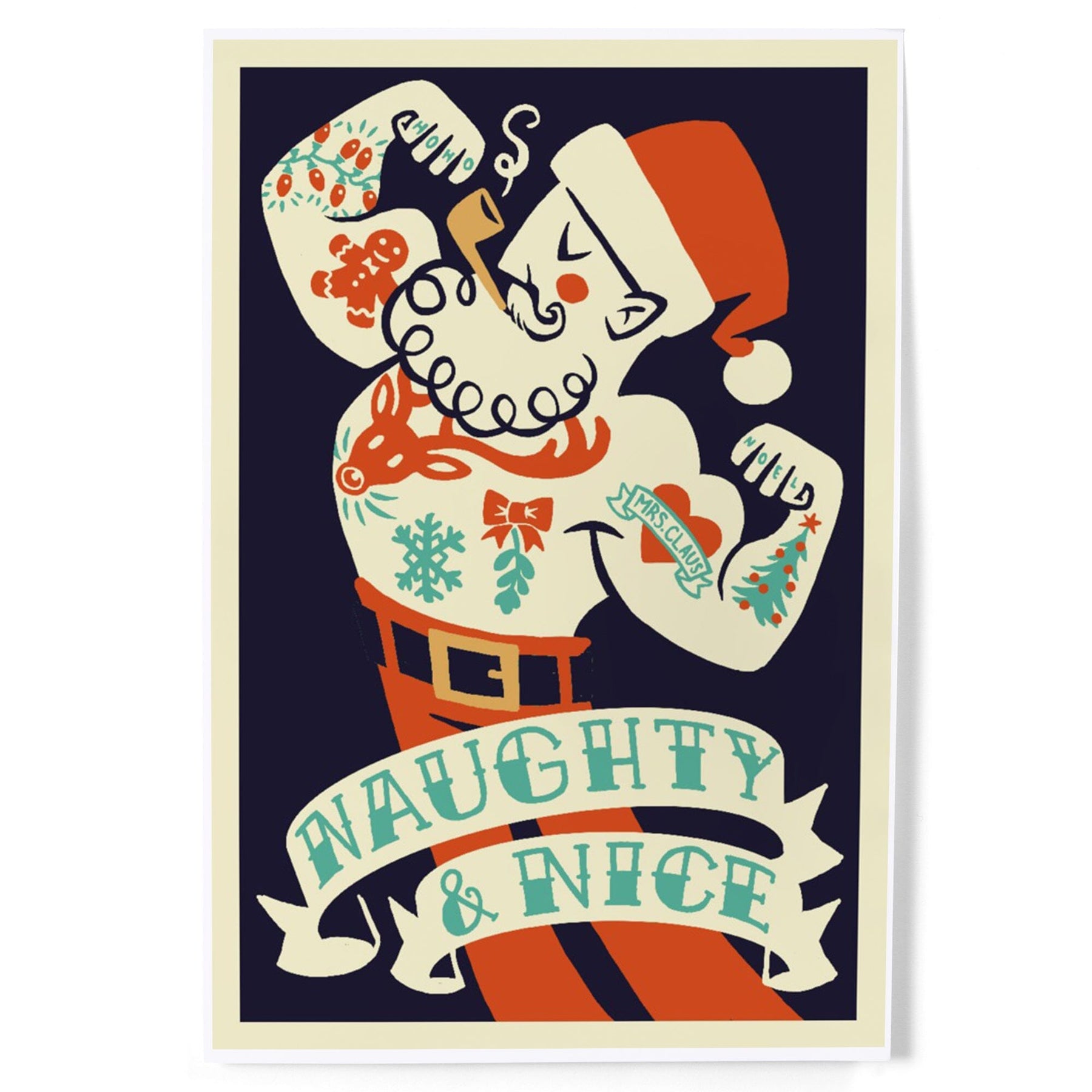 Tattoo Santa, Retro Christmas, Art & Giclee Prints Art Lantern Press