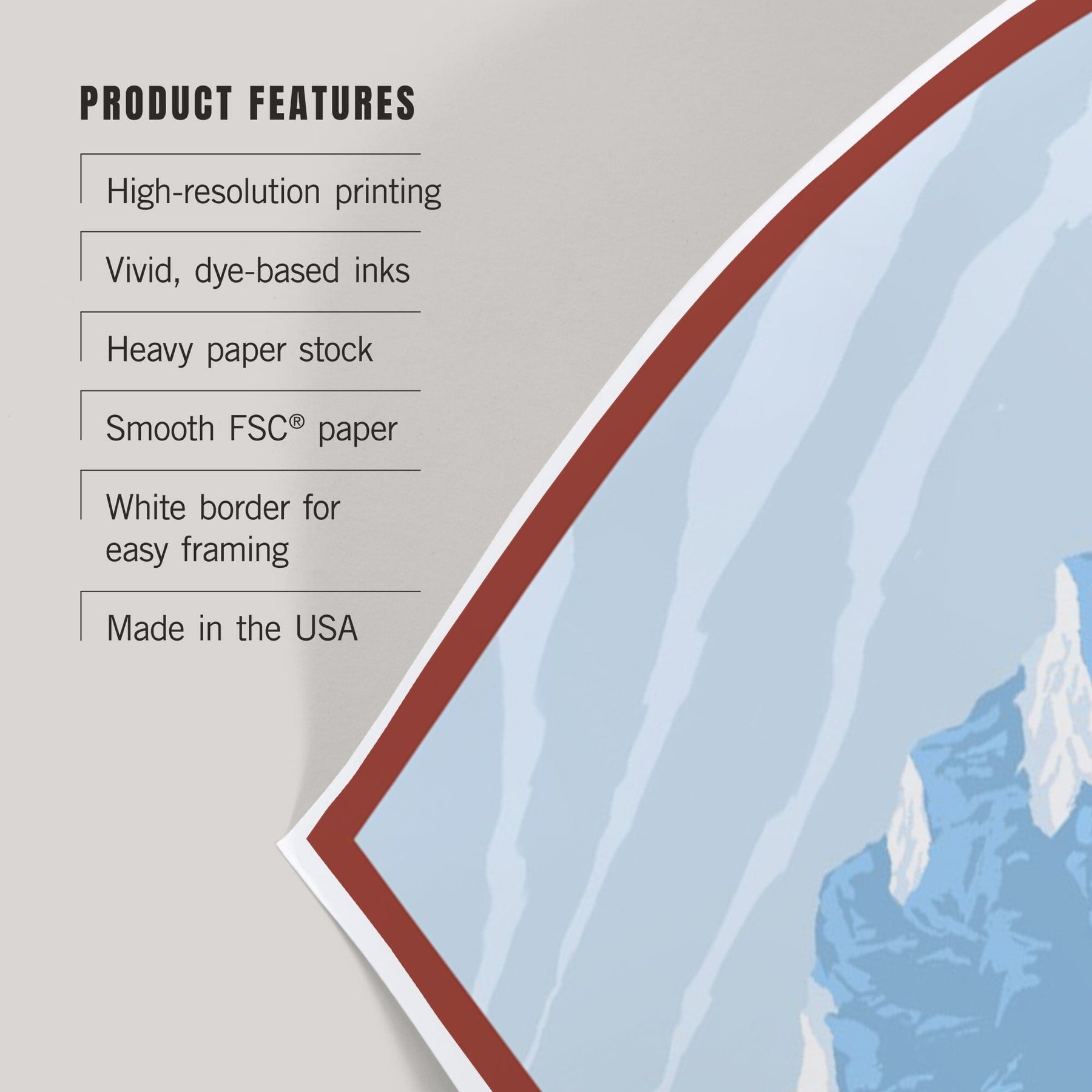 • Art prints include white borders along all edges of at least 1/4 inch