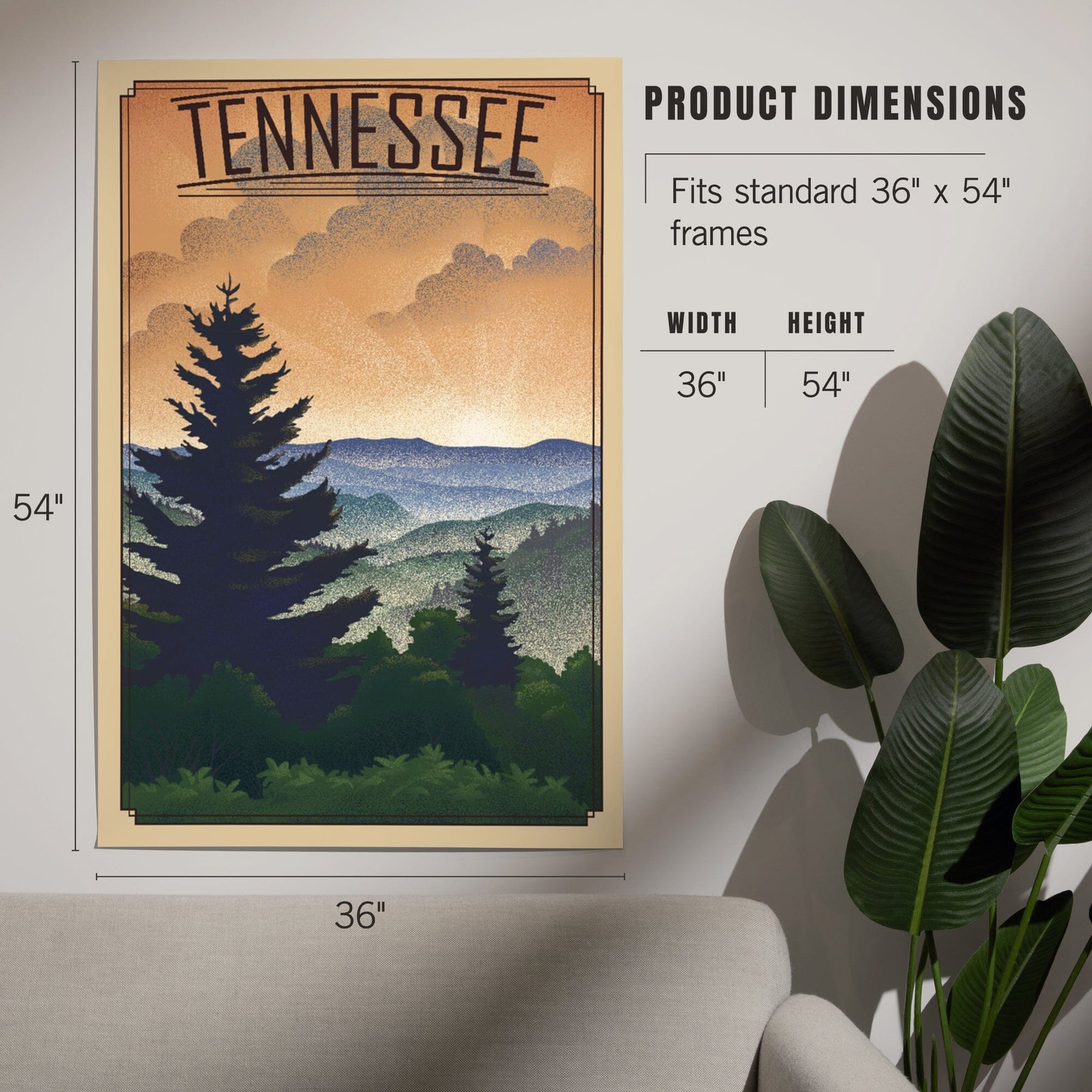 Tennessee, Mountain, Lithograph, Art & Giclee Prints Art Lantern Press