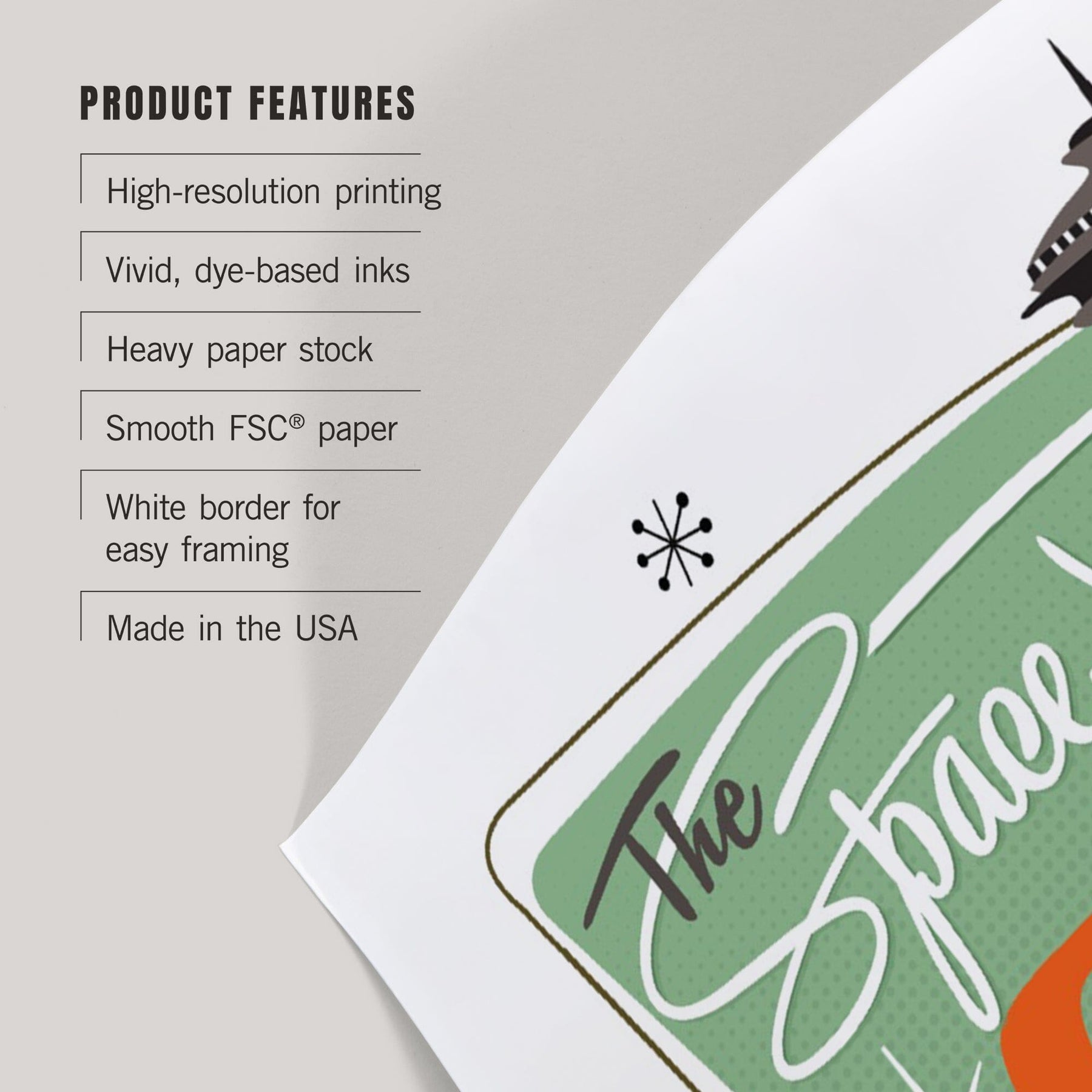 The Space Needle, Mid Century Modern, Teal Sign, Art & Giclee Prints
