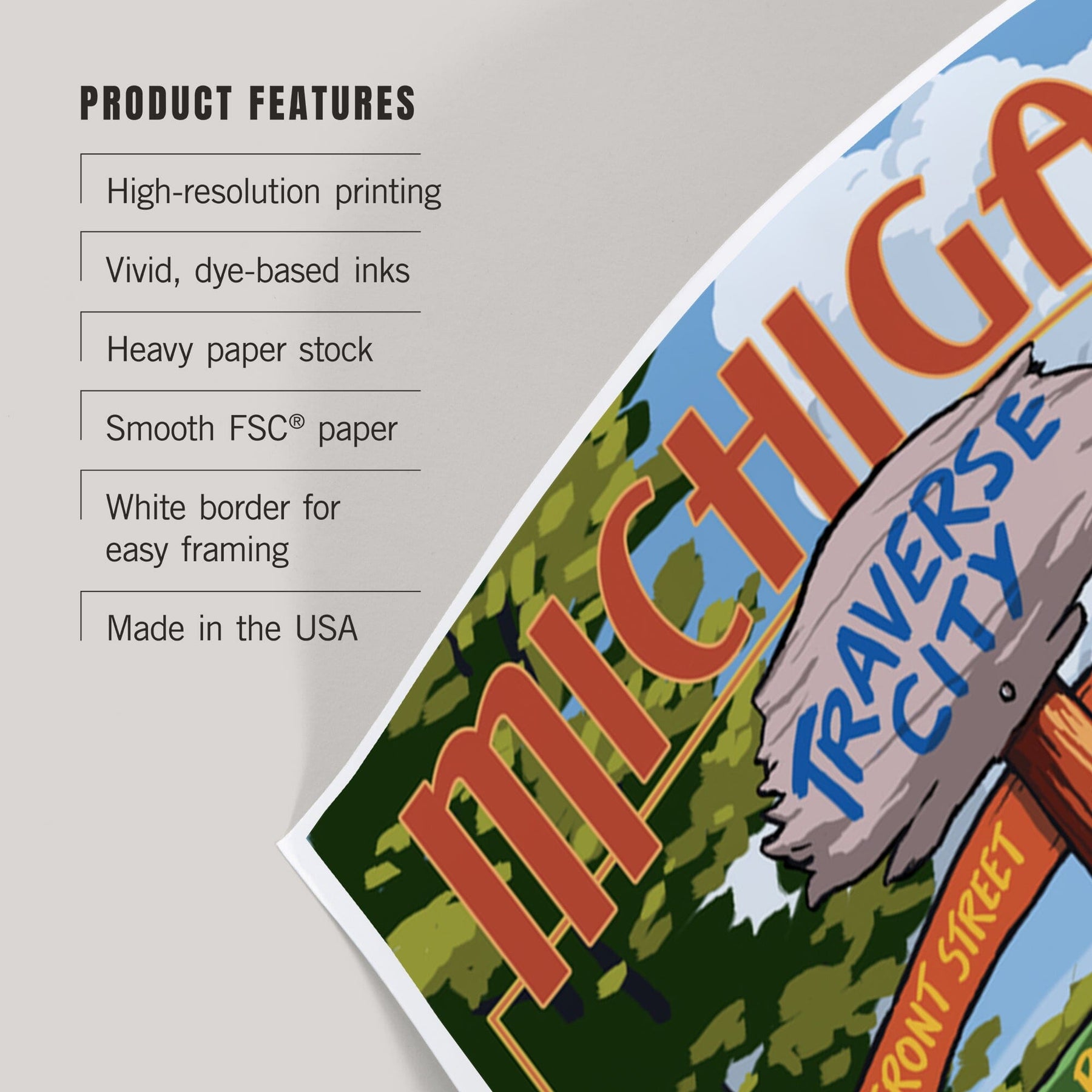 Traverse City, Michigan, Destinations Sign, Art & Giclee Prints