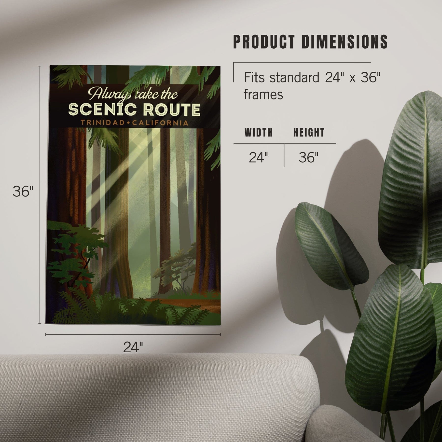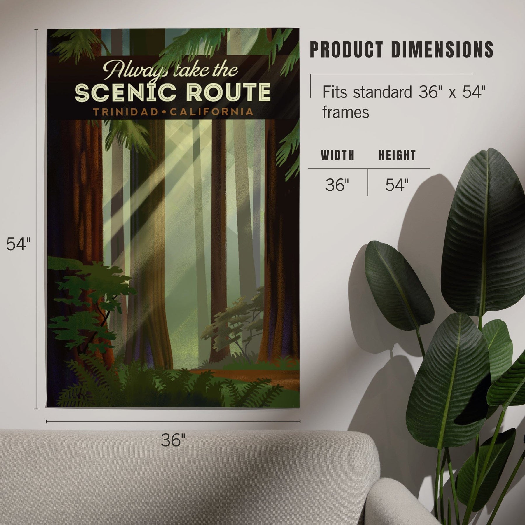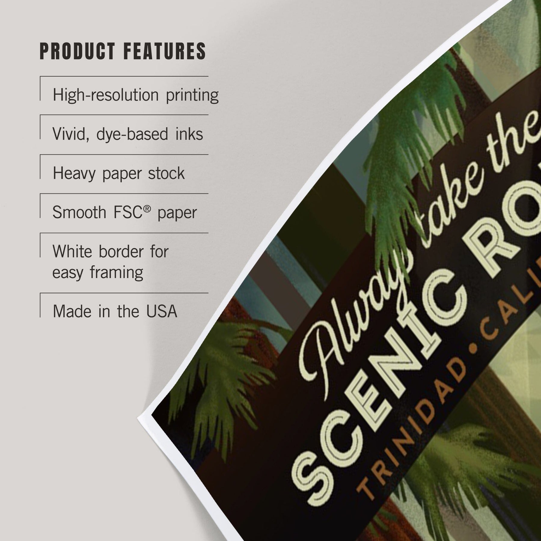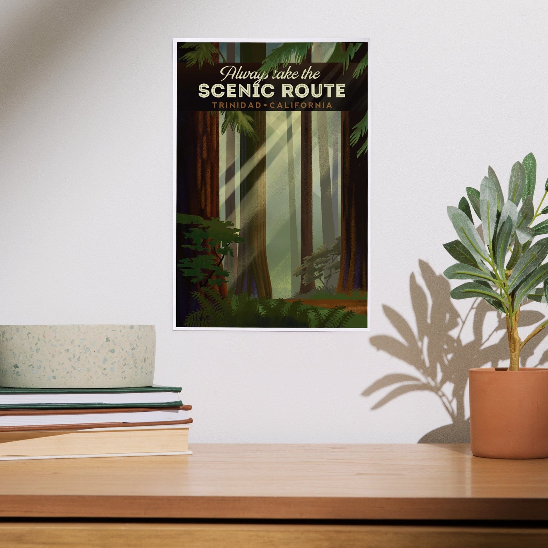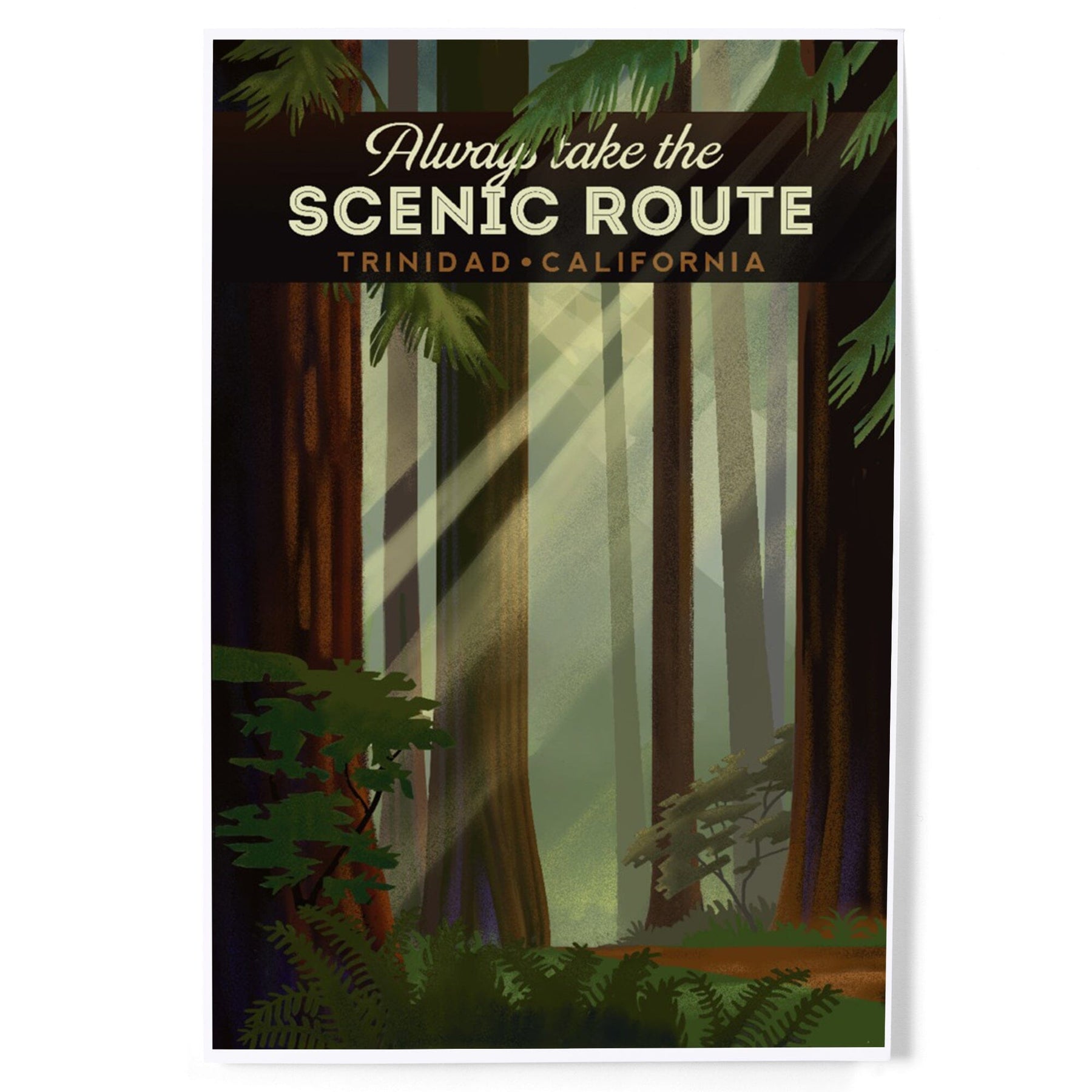 Trinidad, California, Scenic Route, Forest, Geometric Lithograph, Art & Giclee Prints