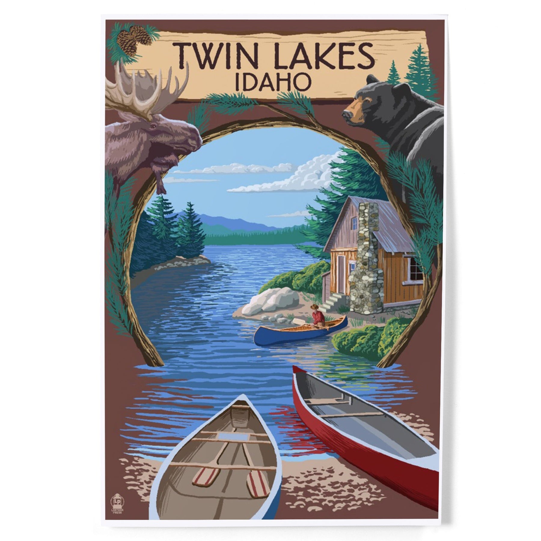 Twin Lakes, Idaho, Cabin on Lake Montage, Art & Giclee Prints Art Lantern Press