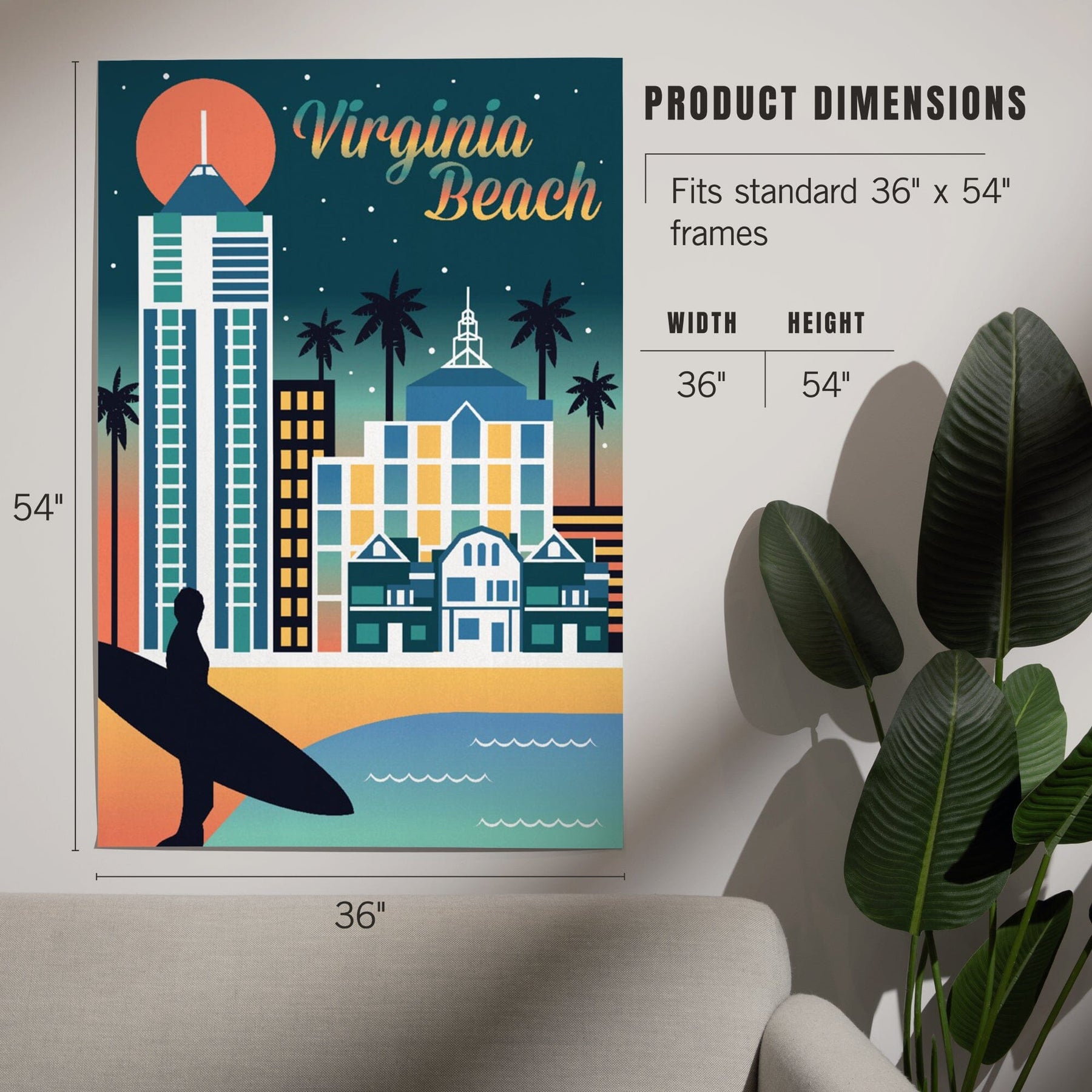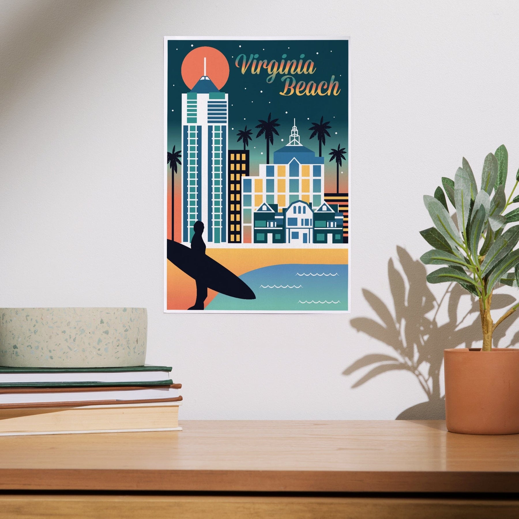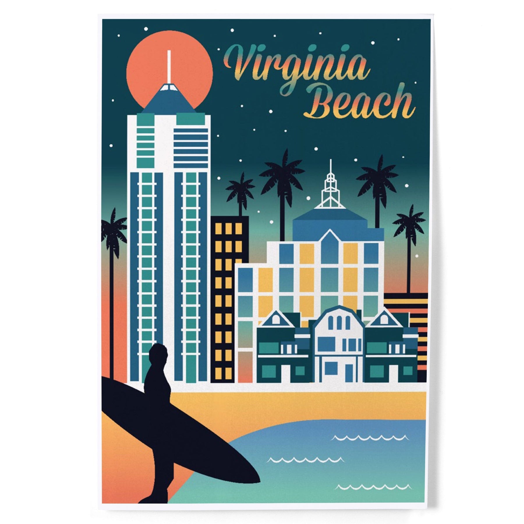 Virginia Beach, Virginia, Retro Skyline Chromatic Series, Art & Giclee Prints