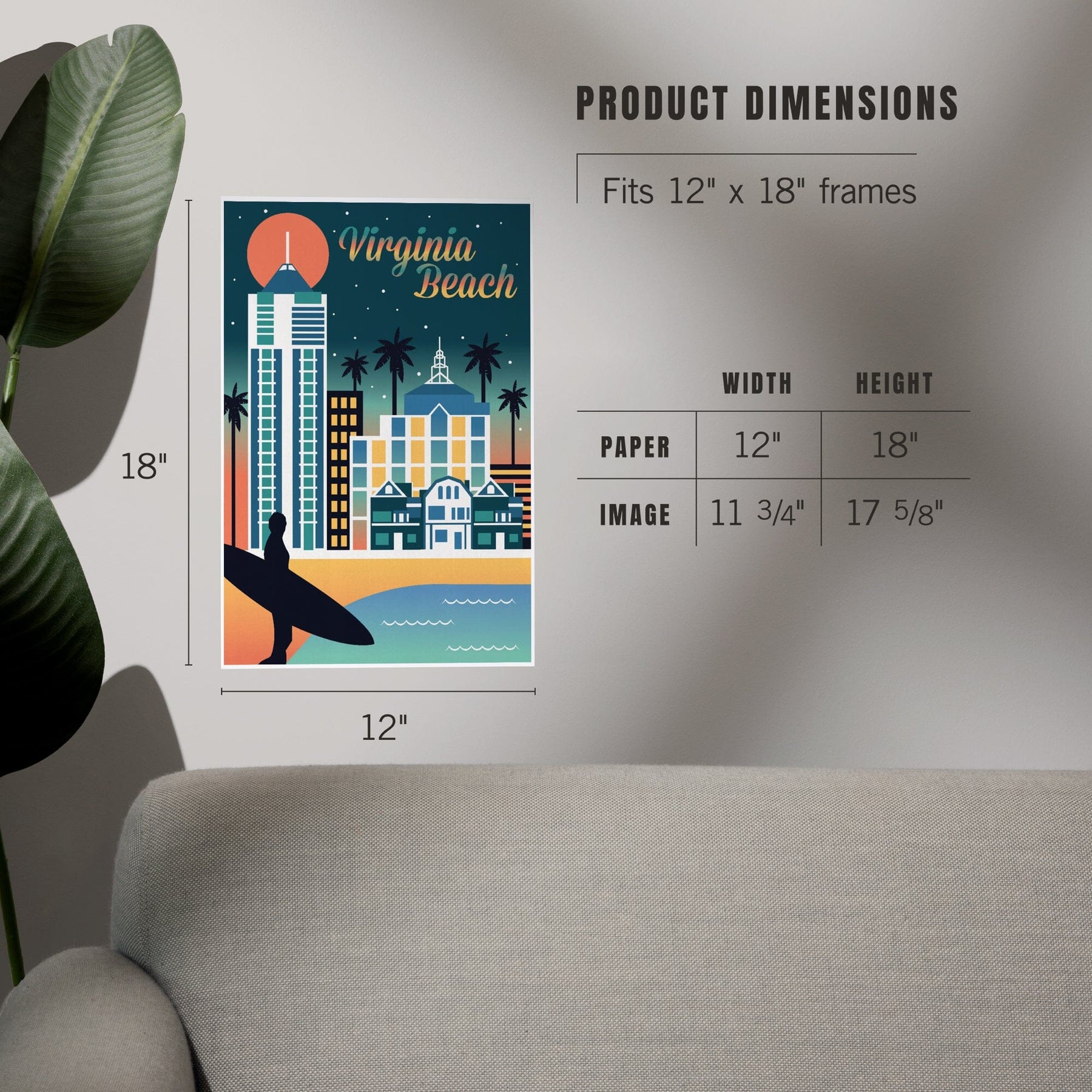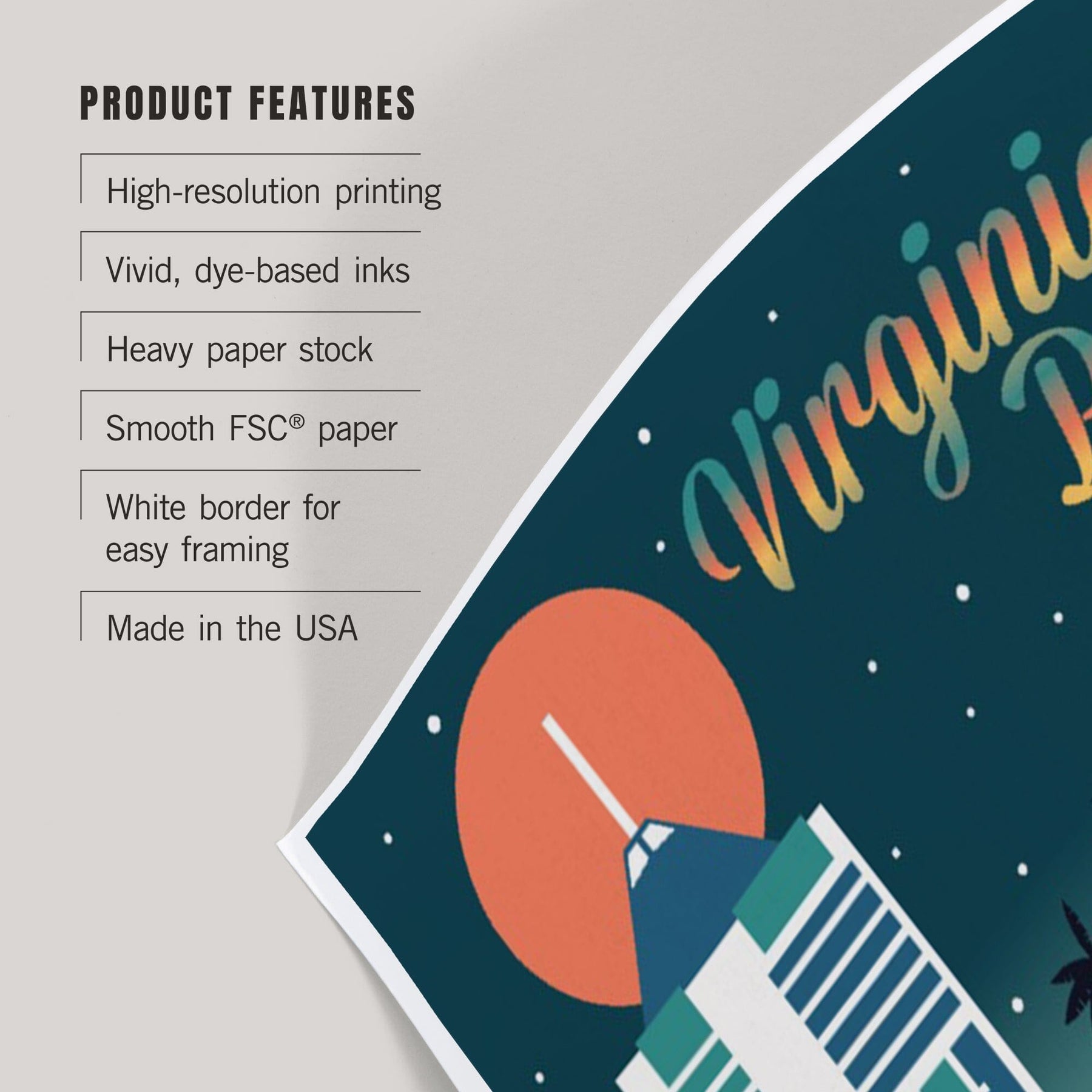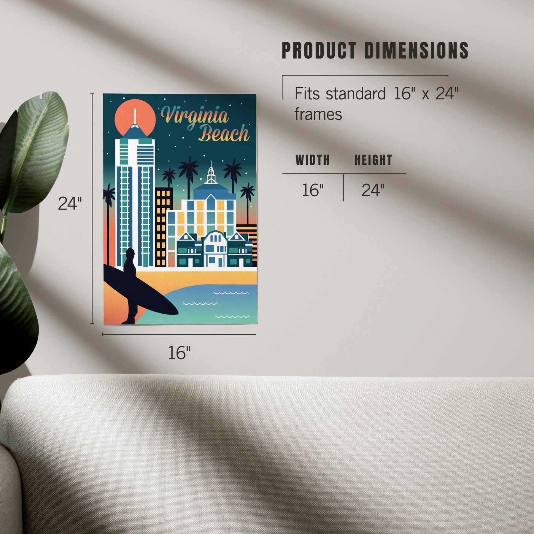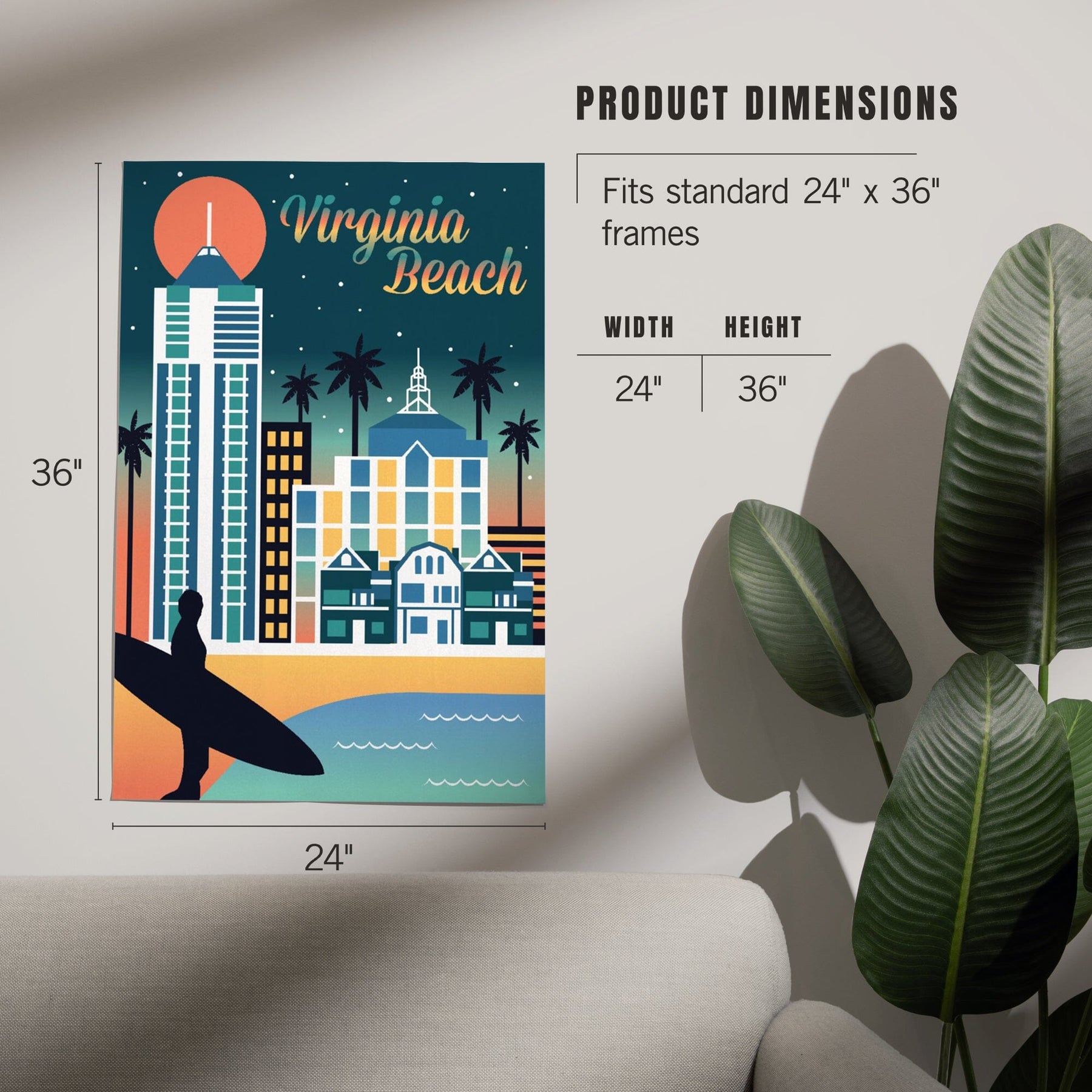 Virginia Beach, Virginia, Retro Skyline Chromatic Series, Art & Giclee Prints