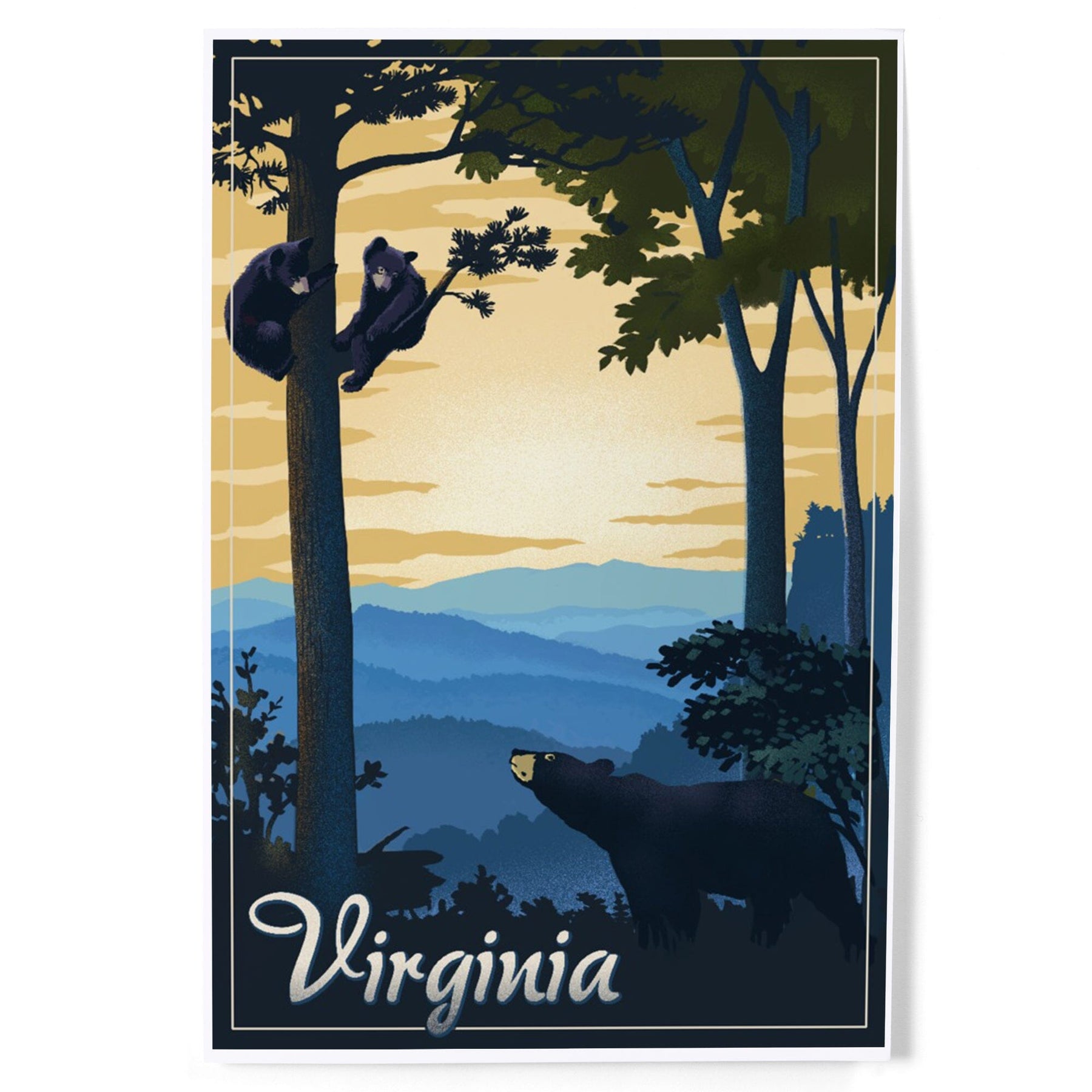 Virginia, Black Bears, Lithograph, Art & Giclee Prints Art Lantern Press