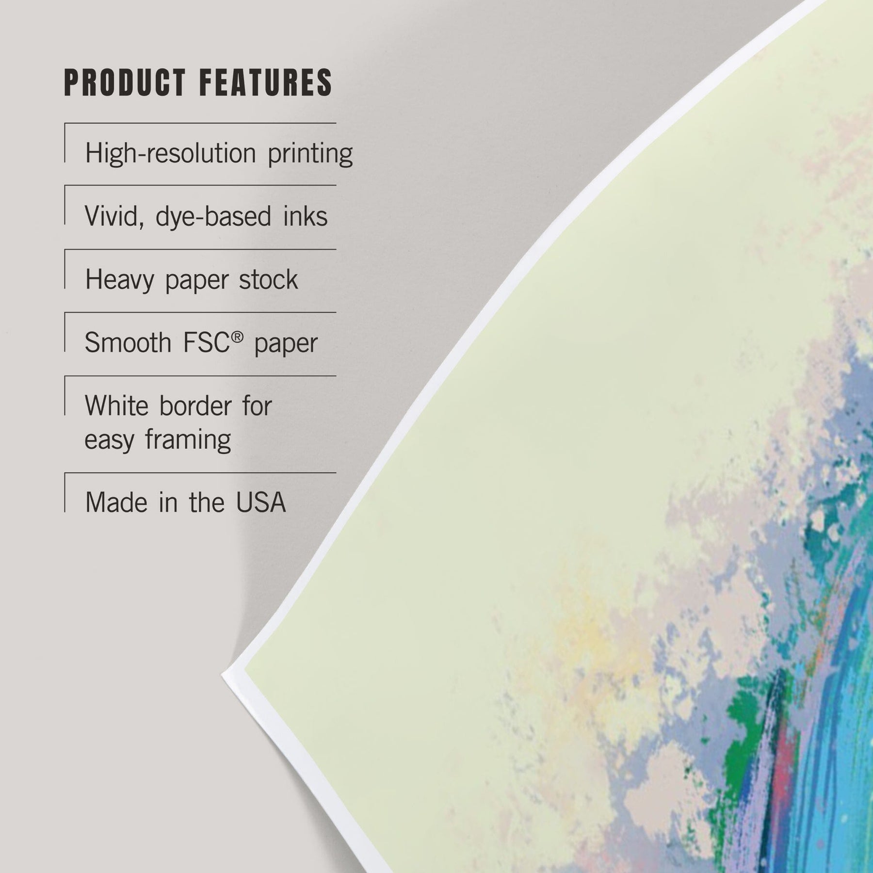 • Art prints include white borders along all edges of at least 1/4 inch