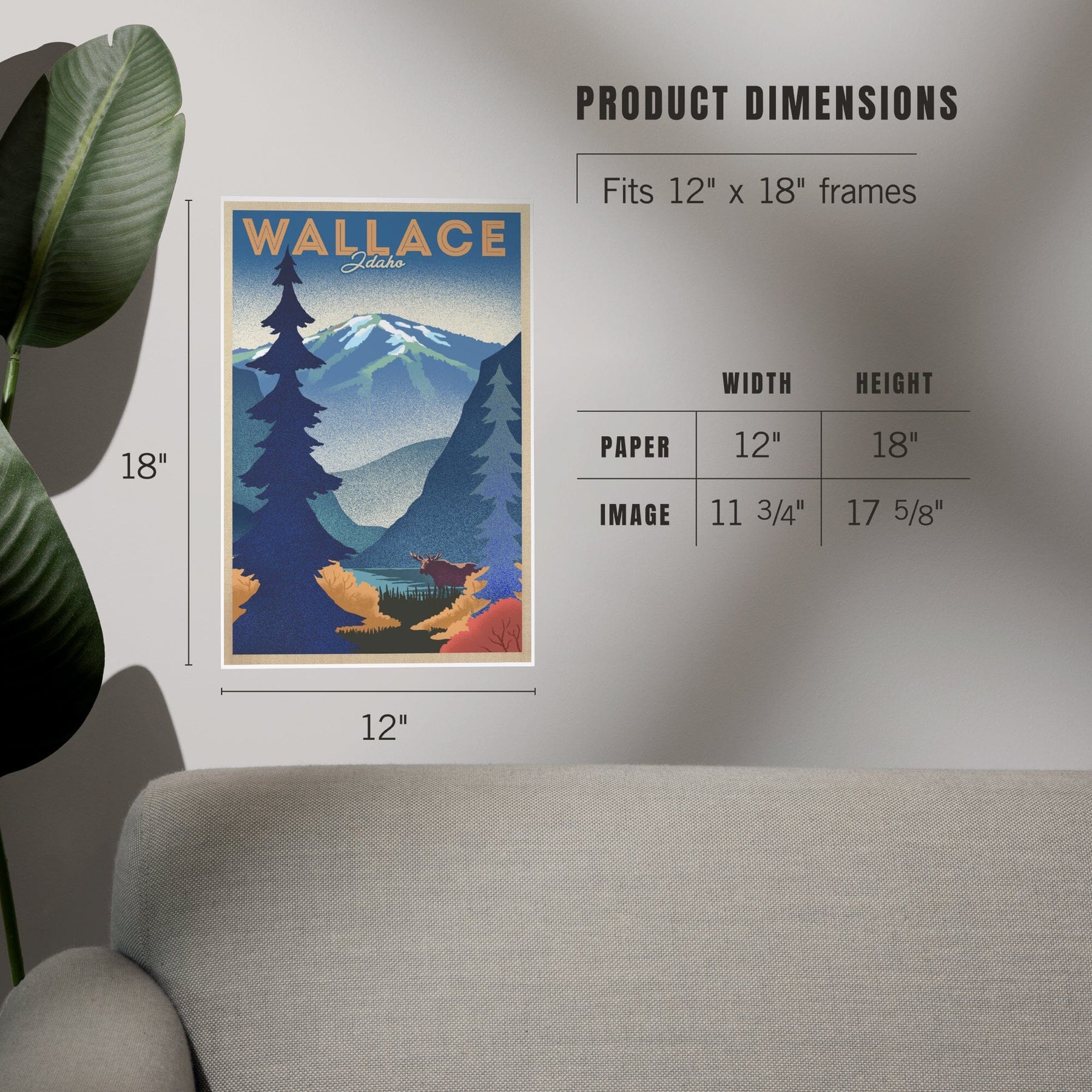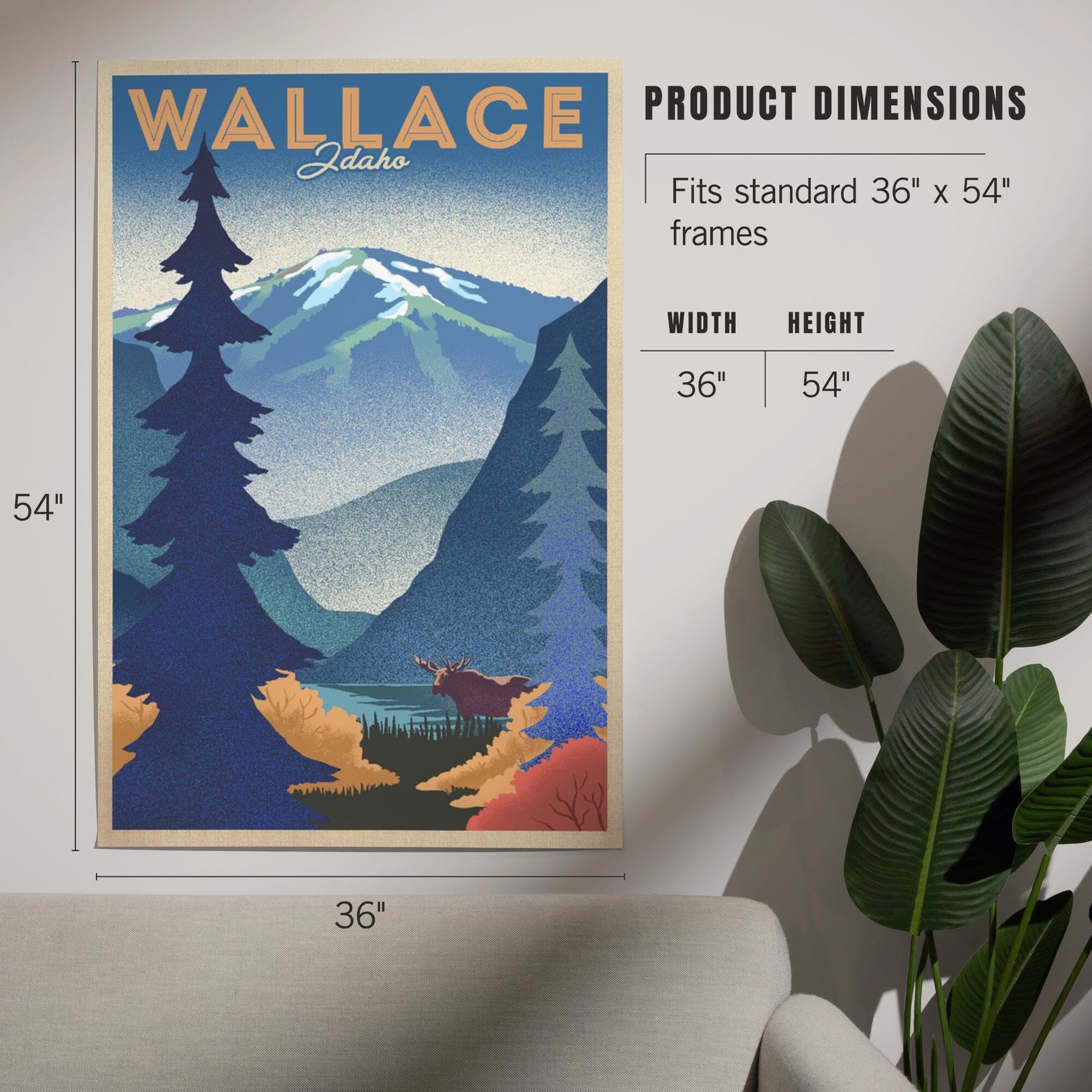 Wallace, Idaho, Mountain and Moose, Lithograph, Art & Giclee Prints