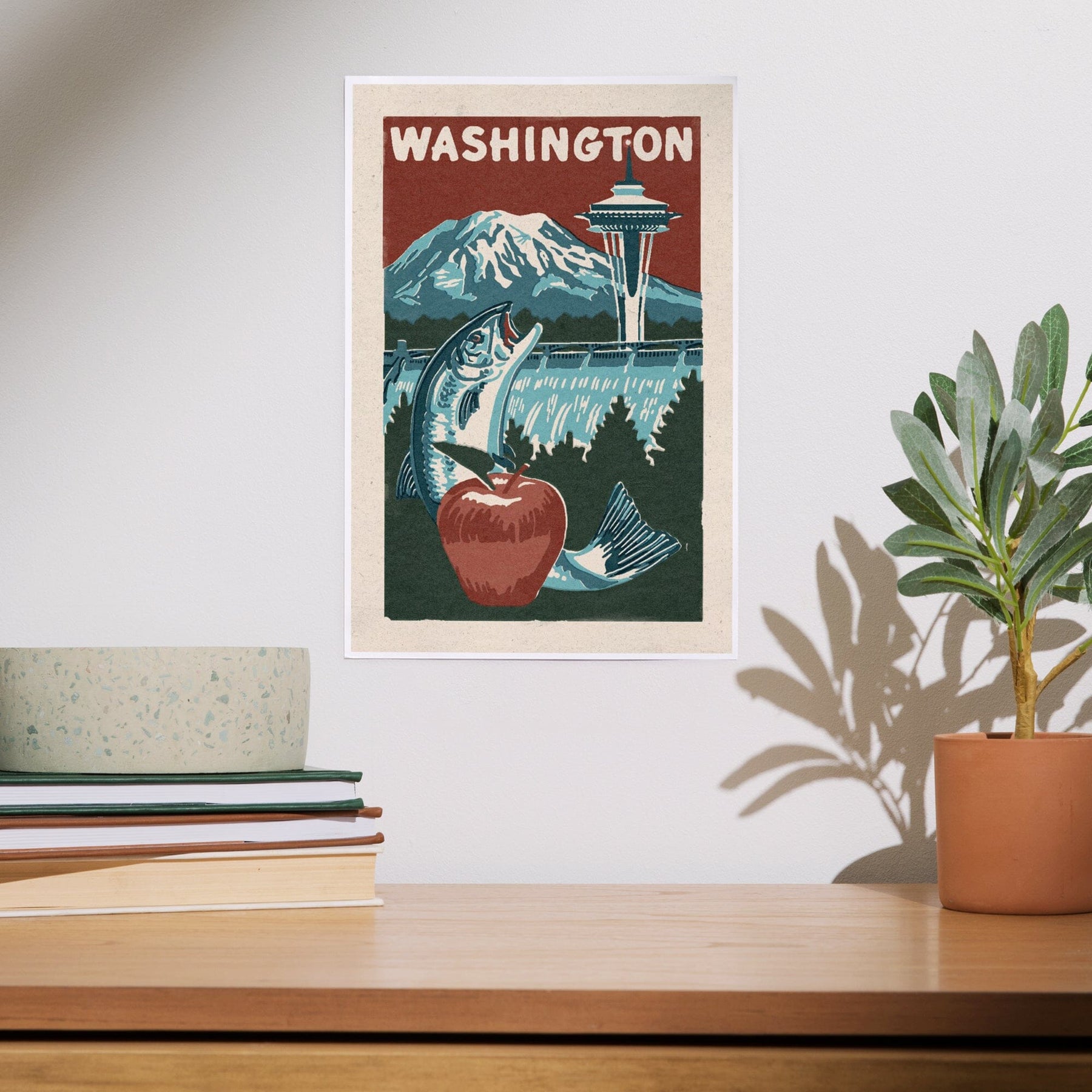 Washington State, Woodblock, Art & Giclee Prints Art Lantern Press