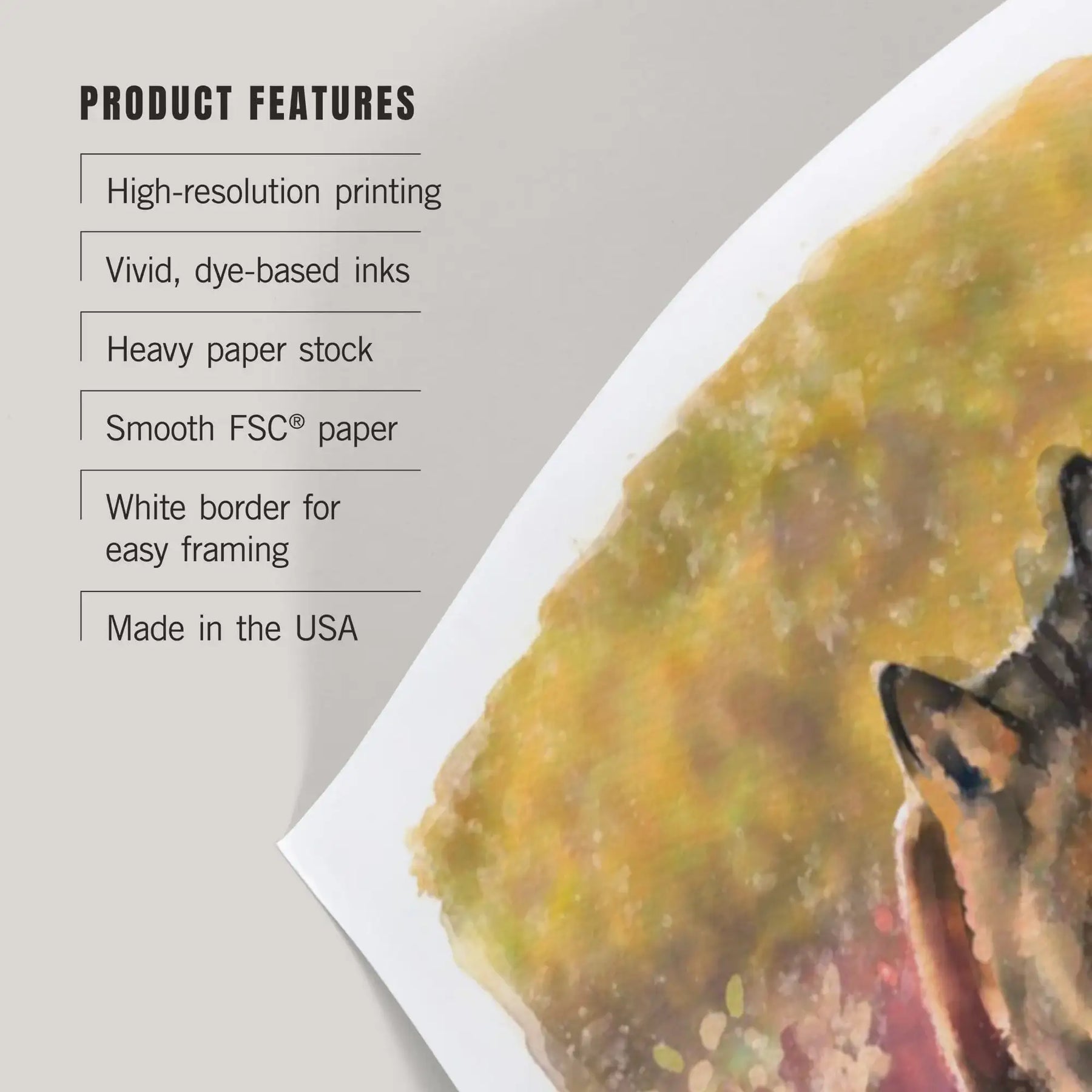 • Art prints include white borders along all edges of at least 1/4 inch