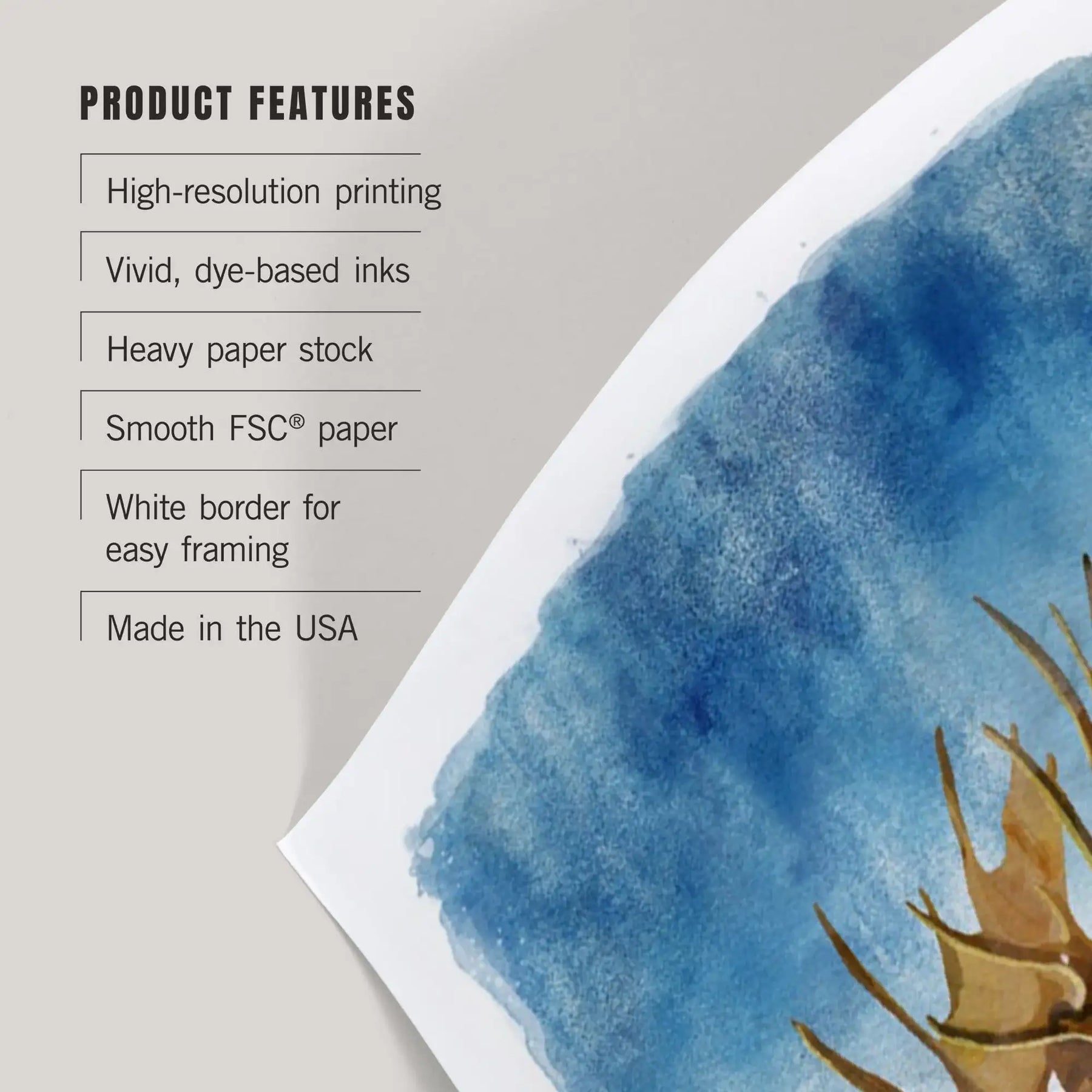 • Art prints include white borders along all edges of at least 1/4 inch