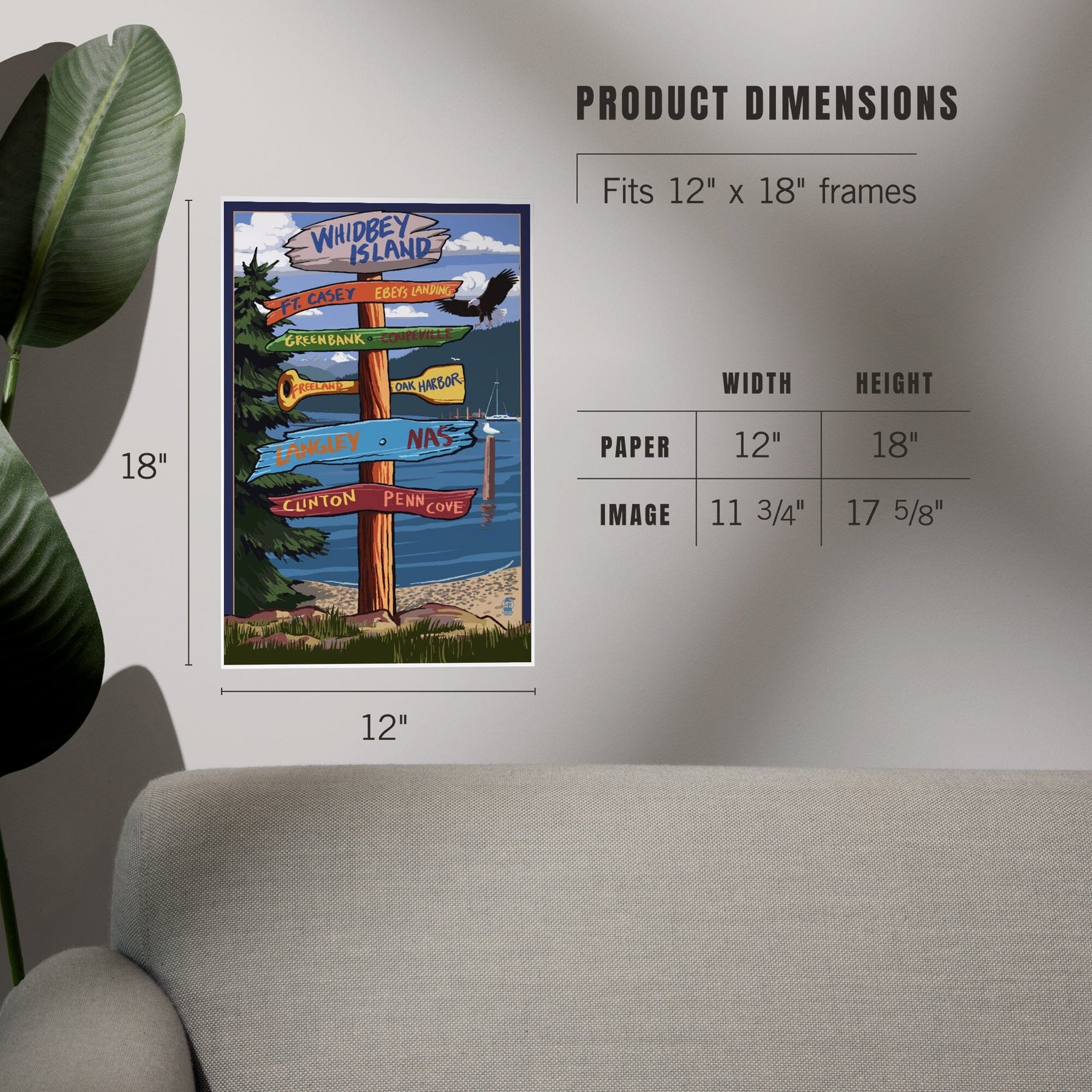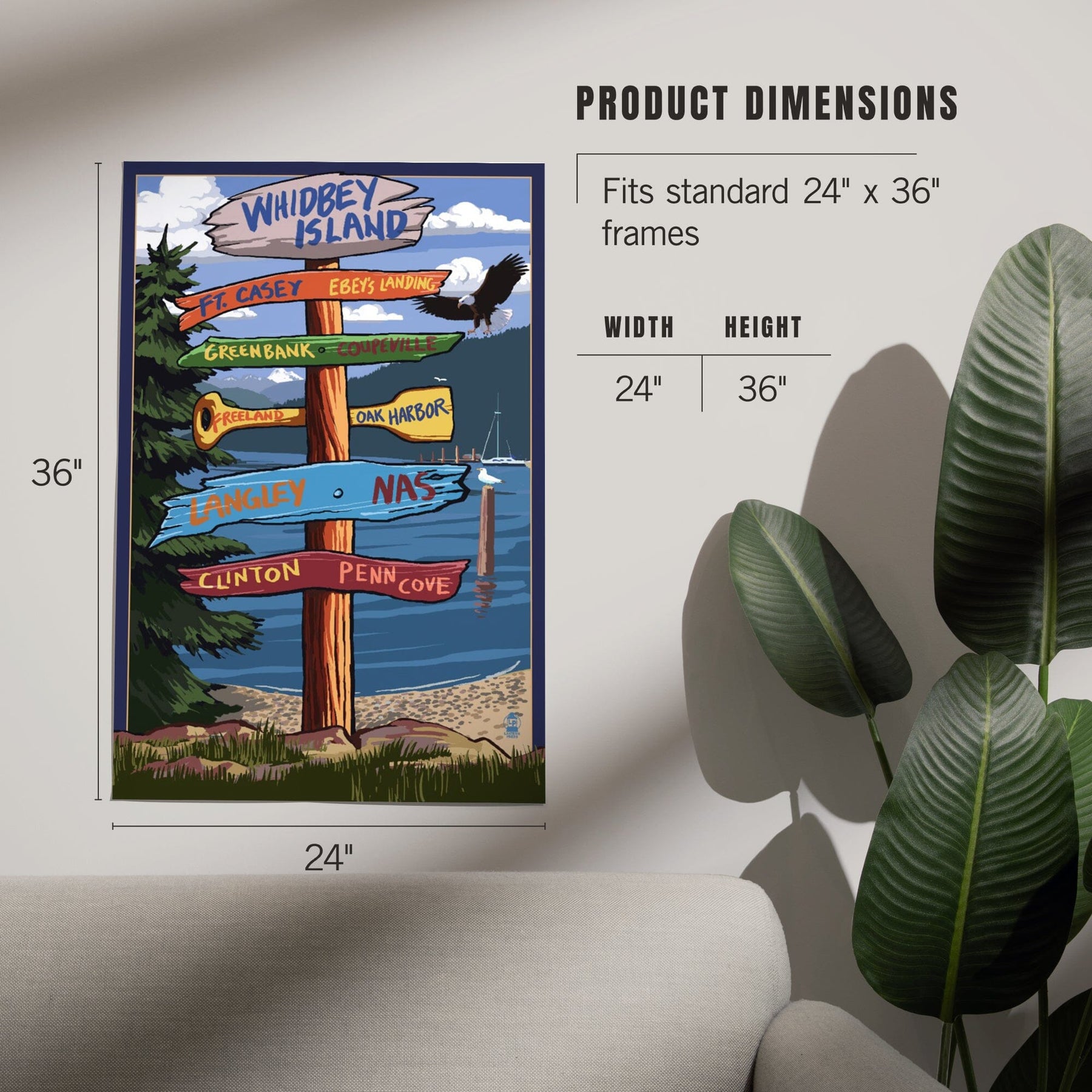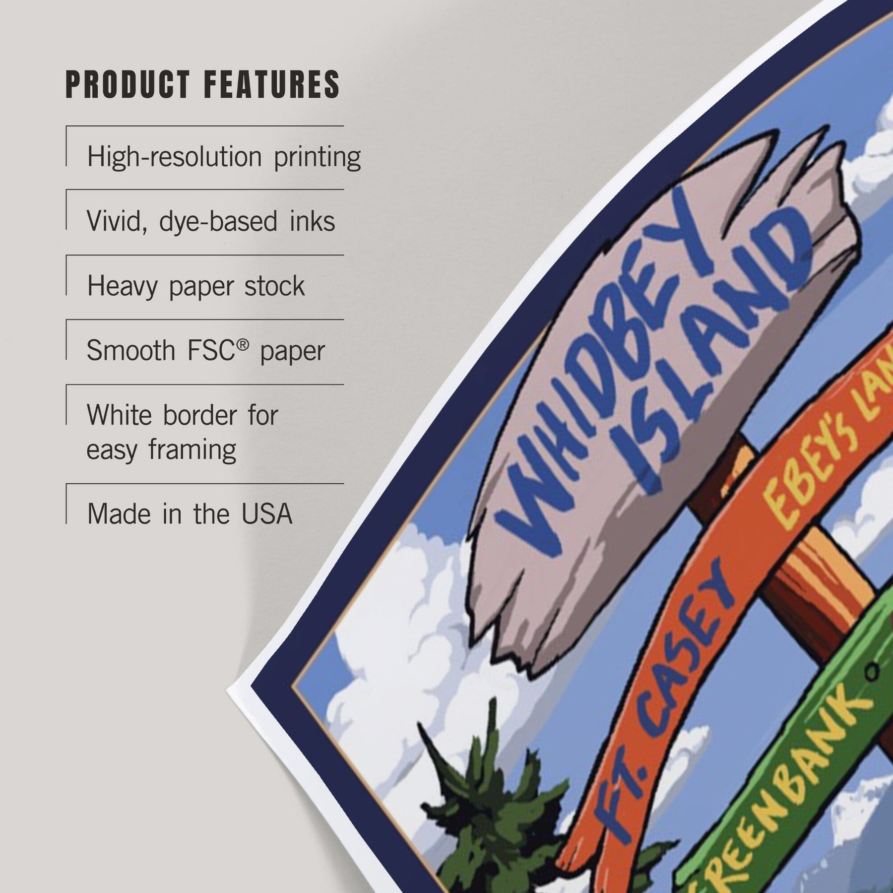 Whidbey Island, Washington, Destination Signpost, Art & Giclee Prints Art Lantern Press