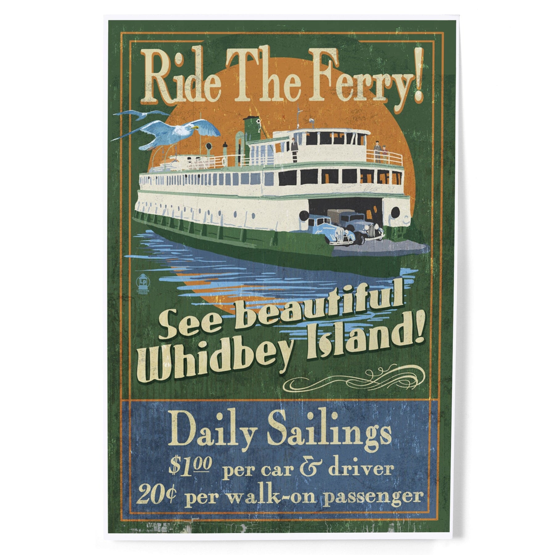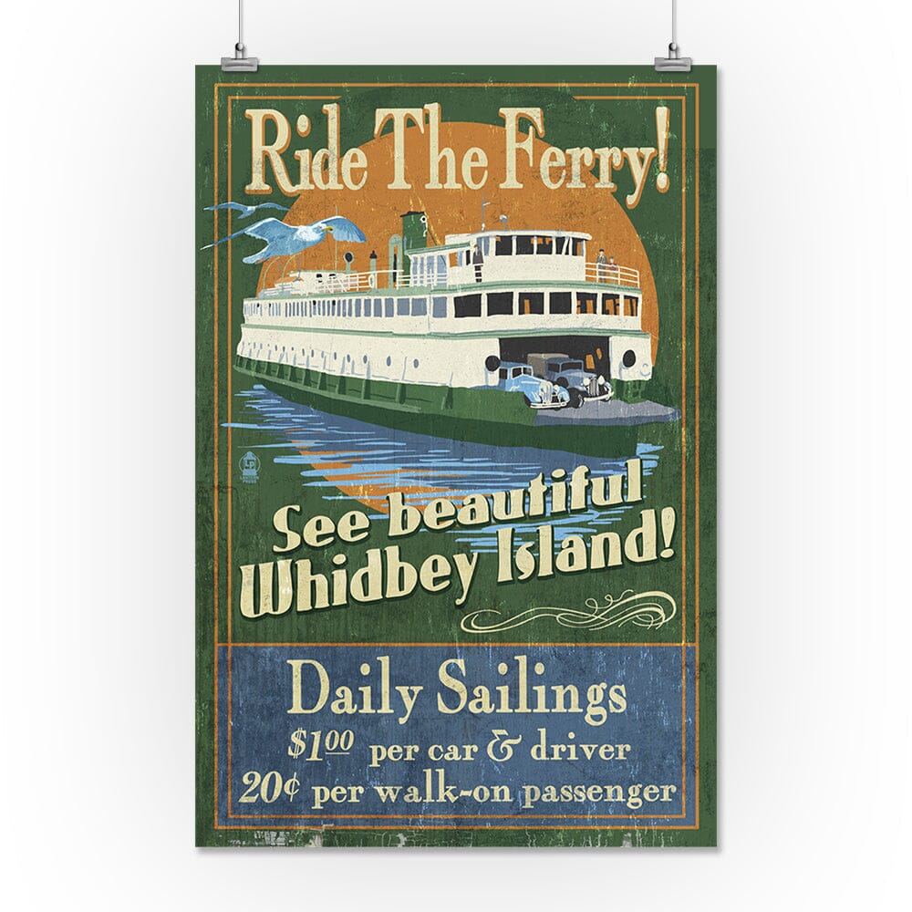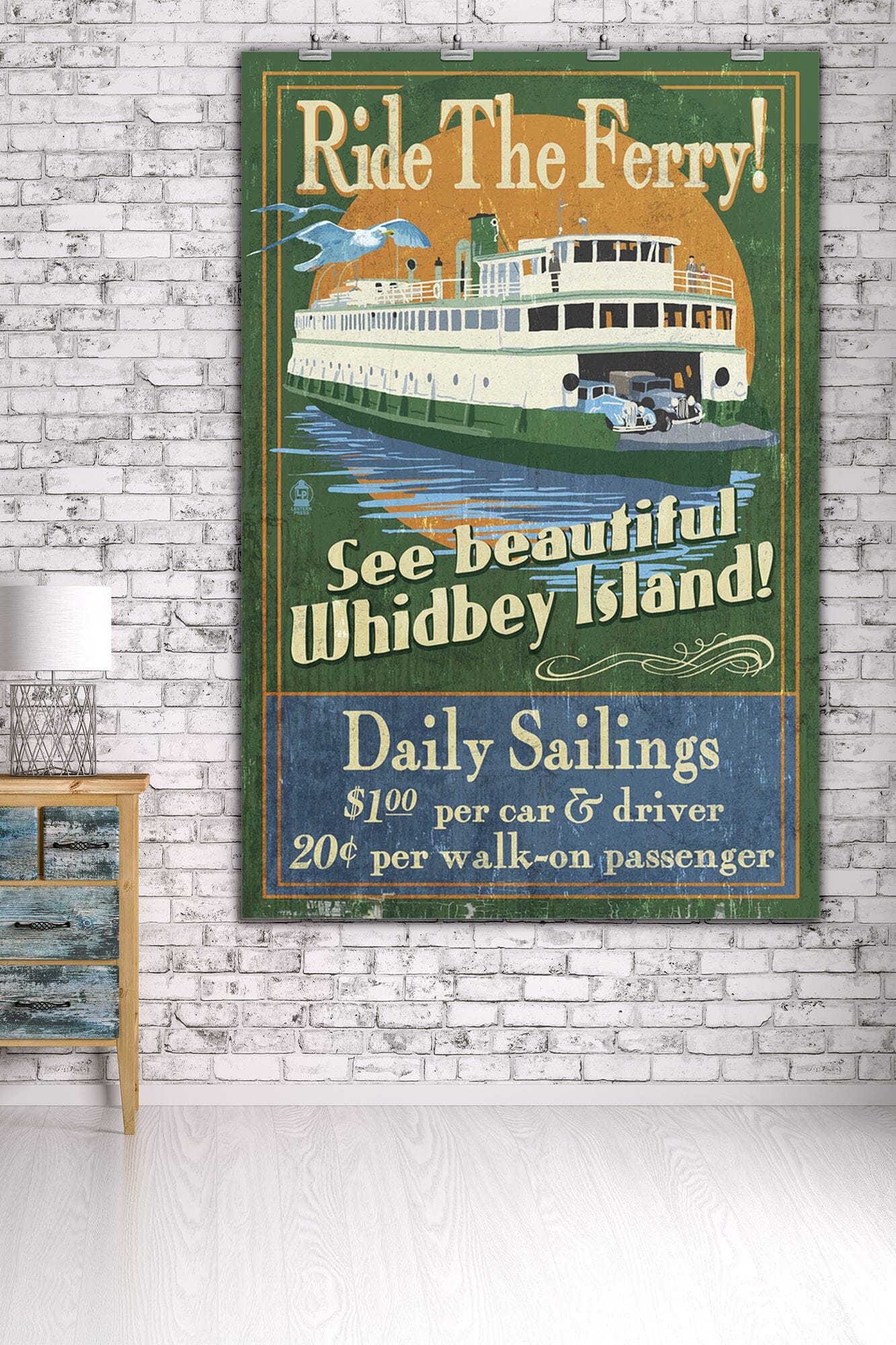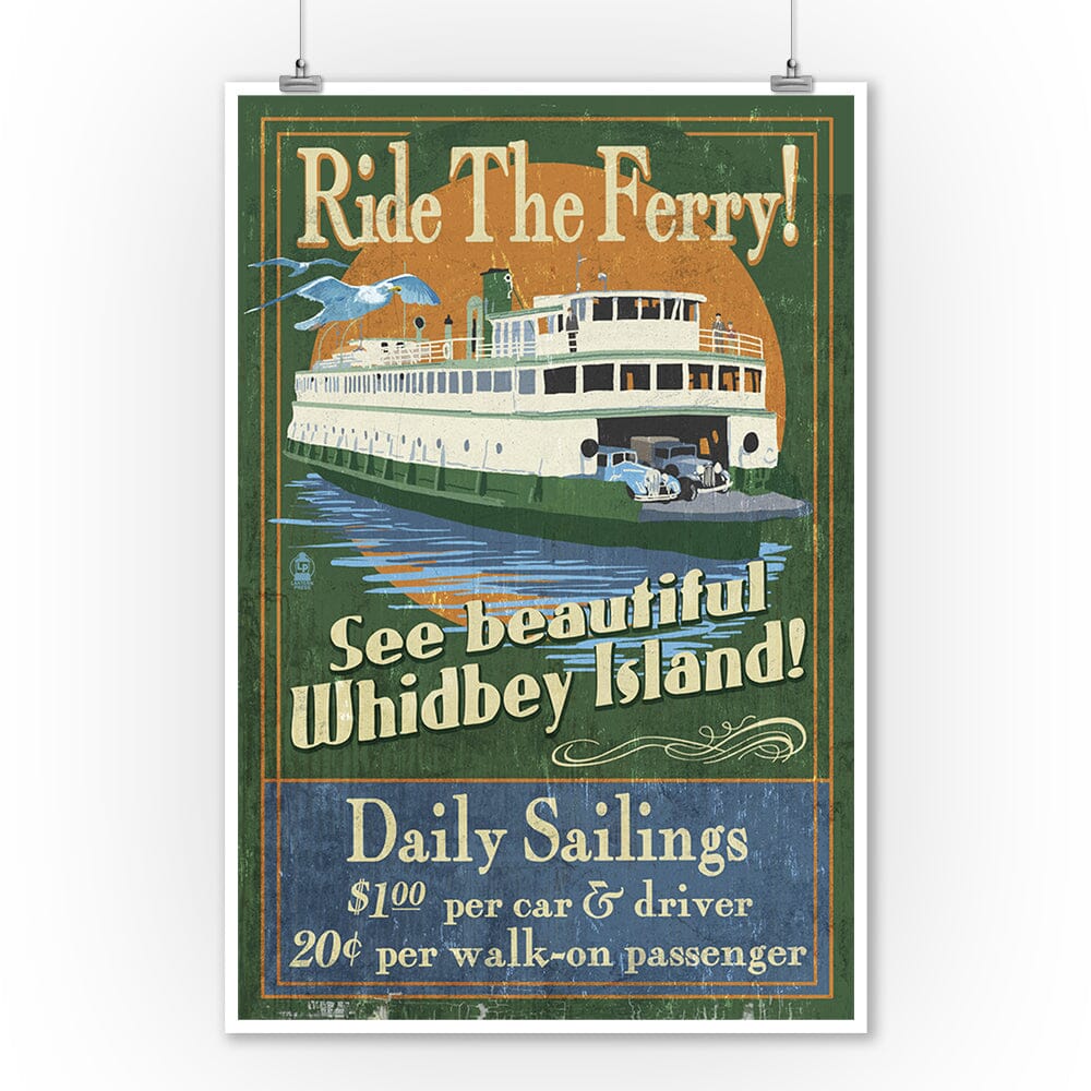 Whidbey Island, Washington, Ferry Vintage Sign Art Lantern Press