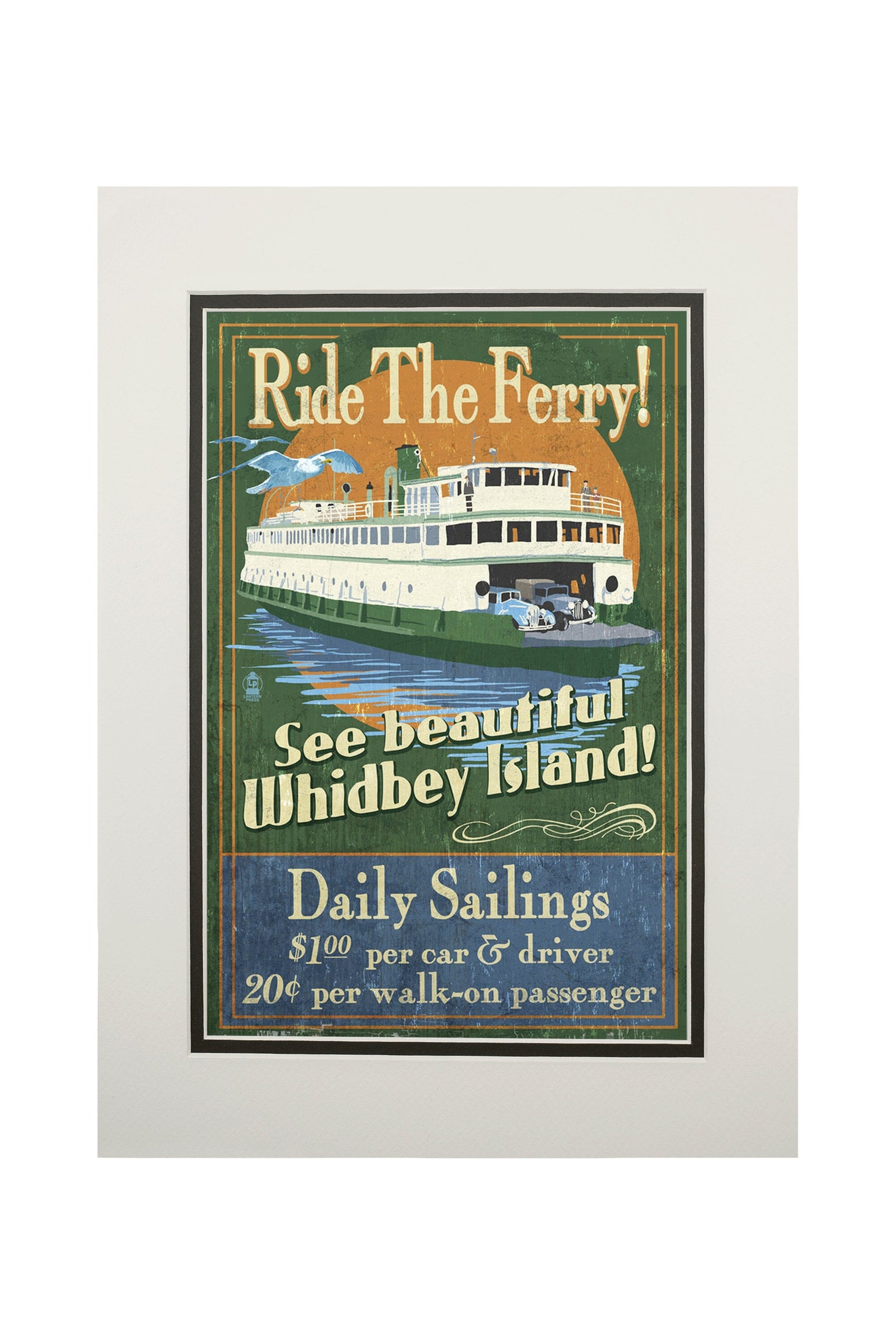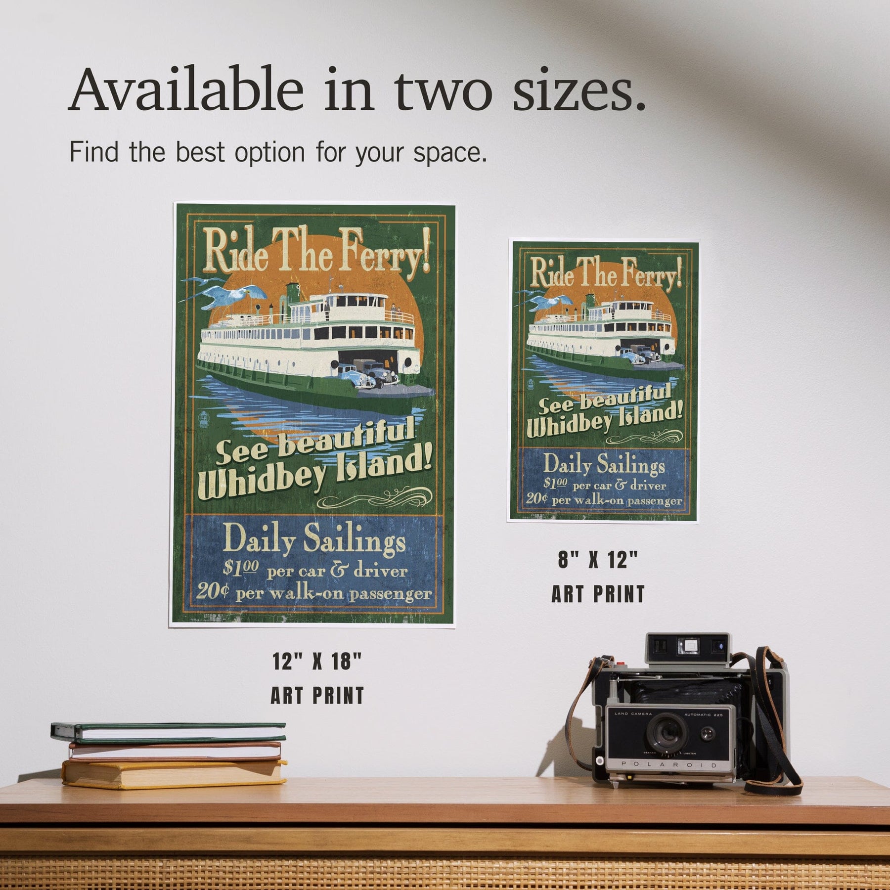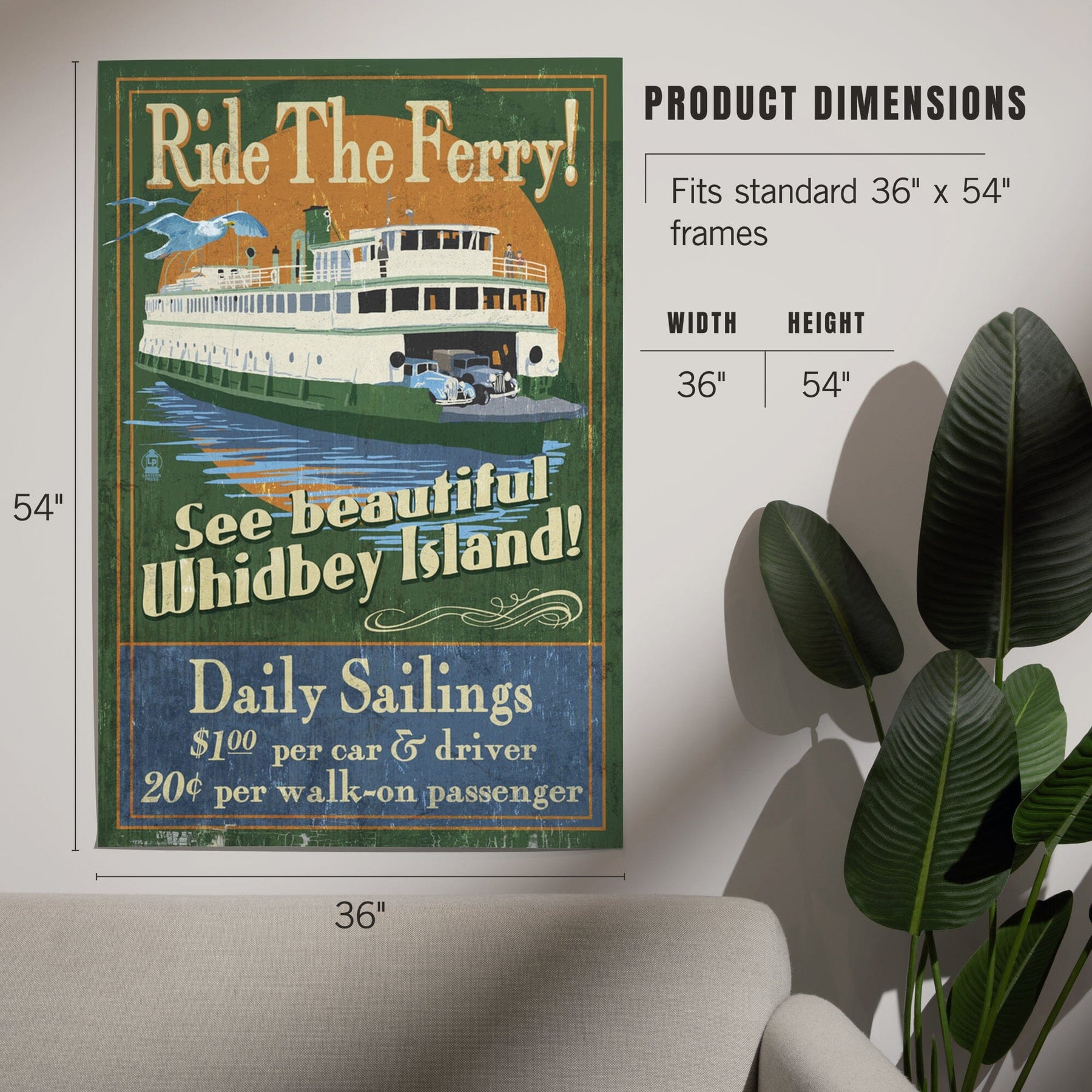 Whidbey Island, Washington, Ferry Vintage Sign Art Lantern Press