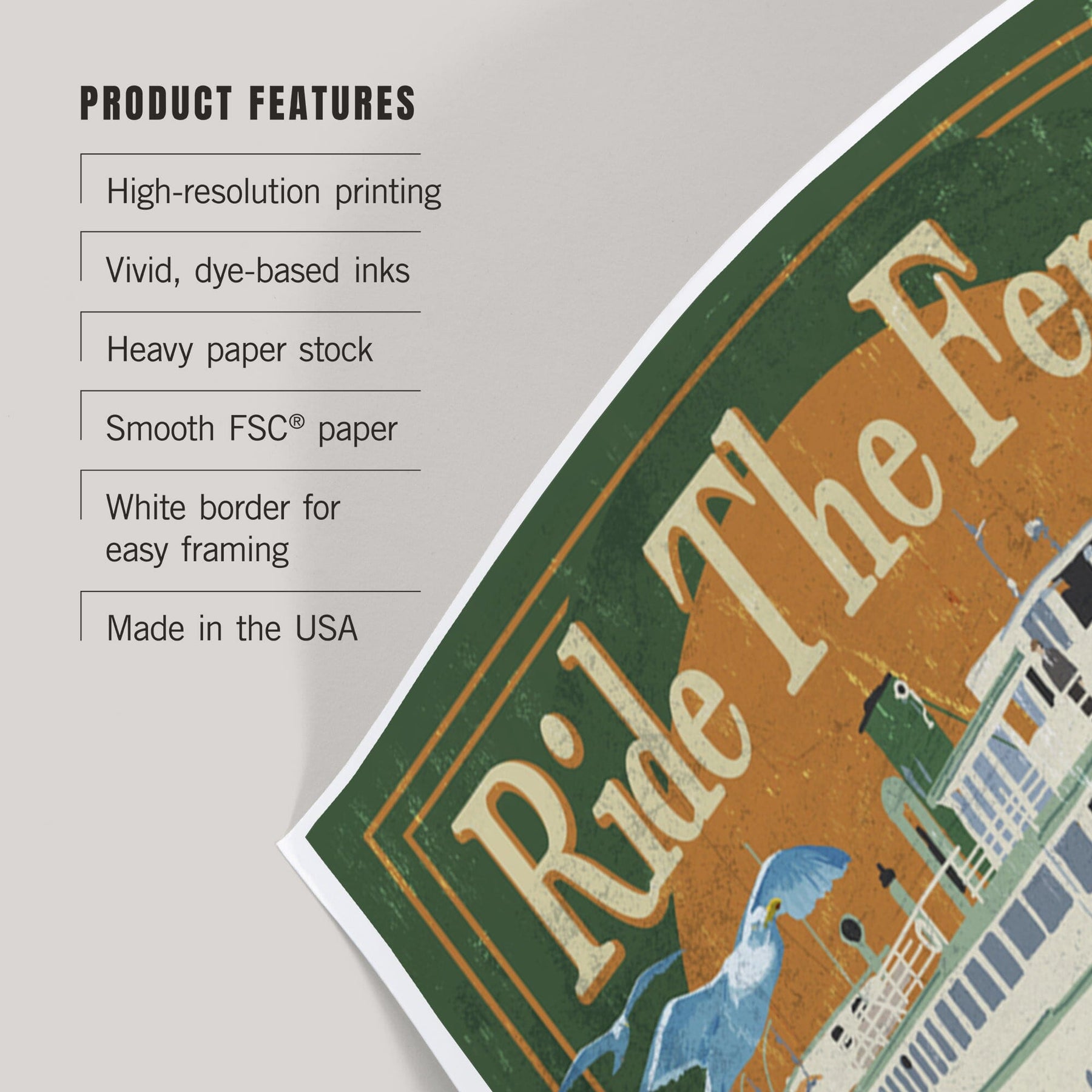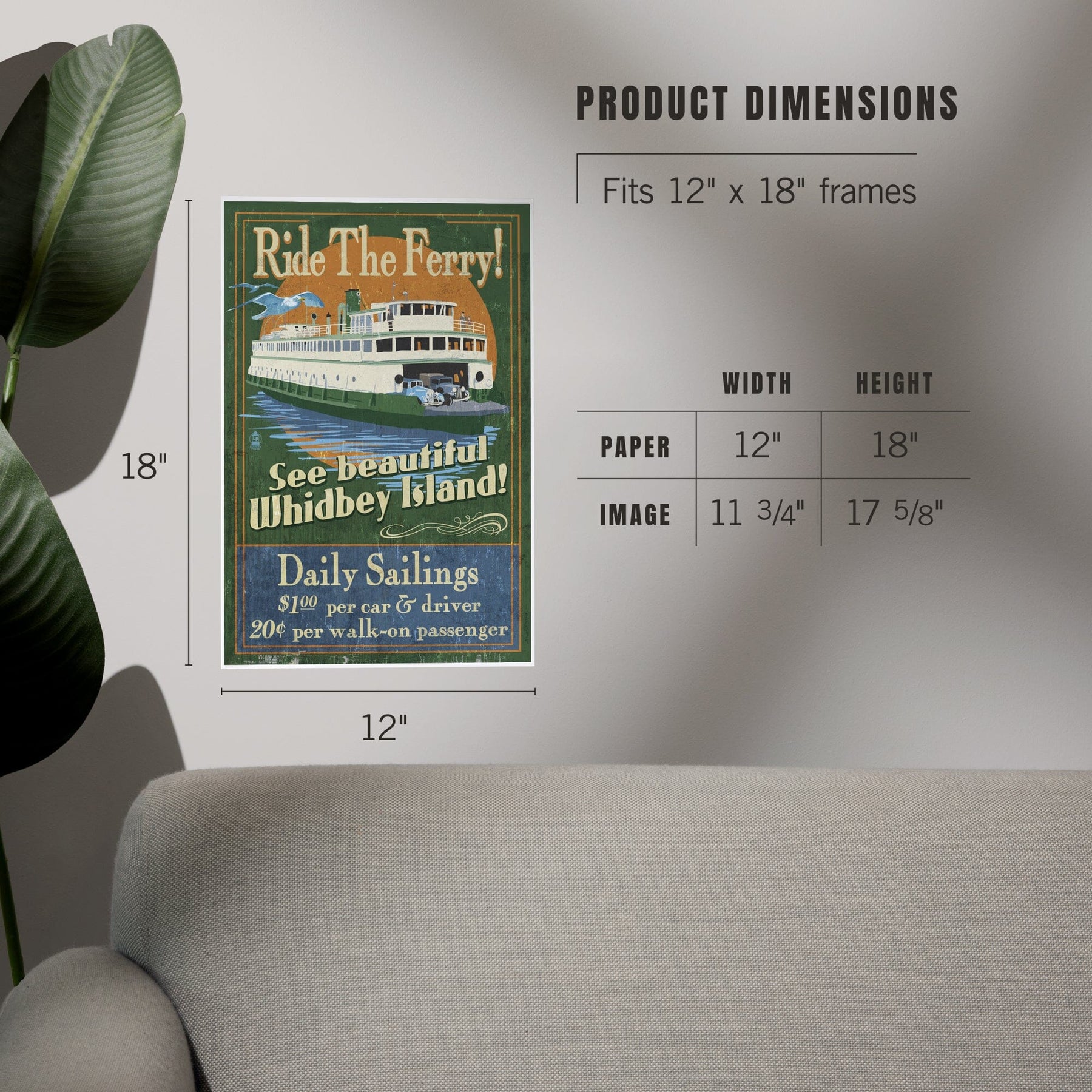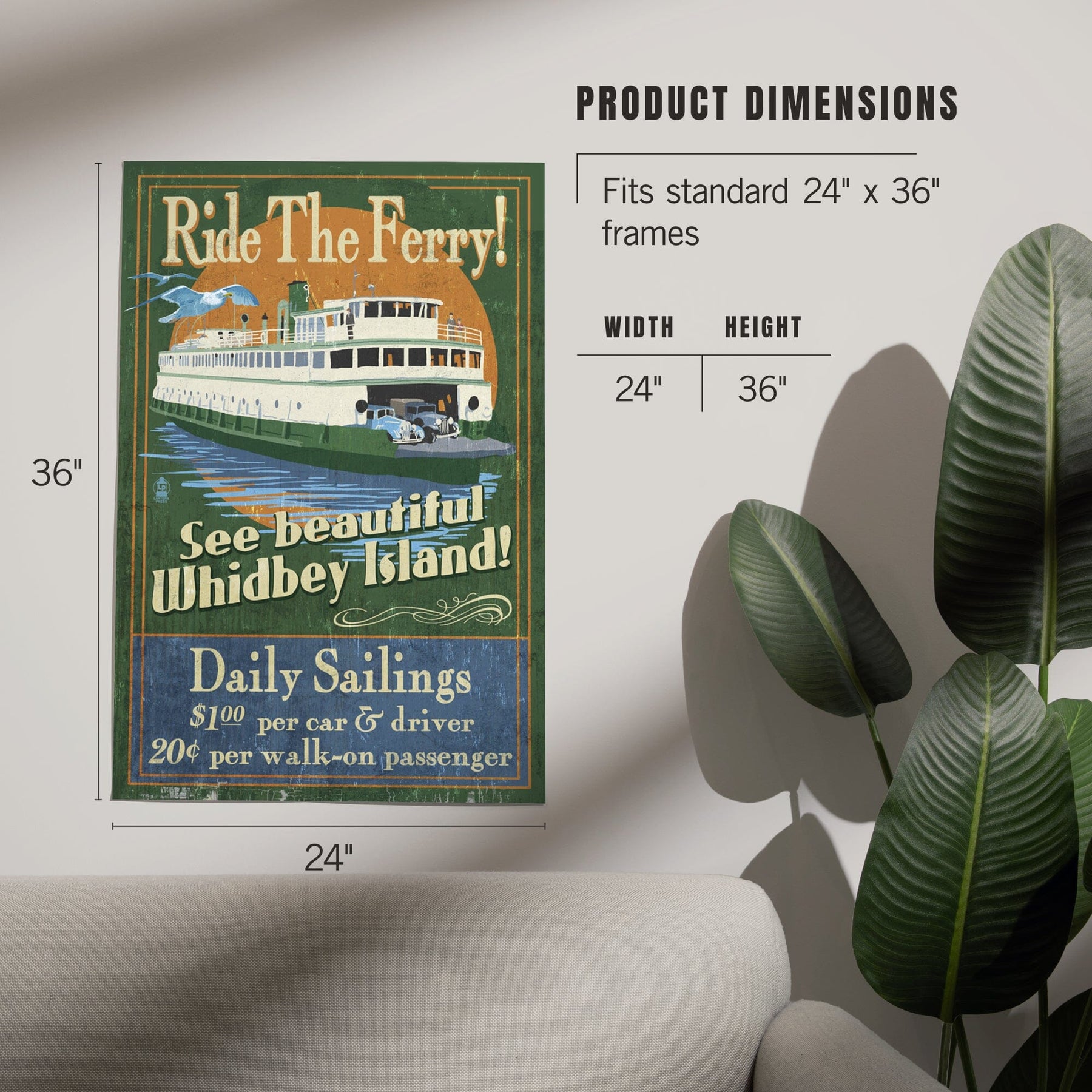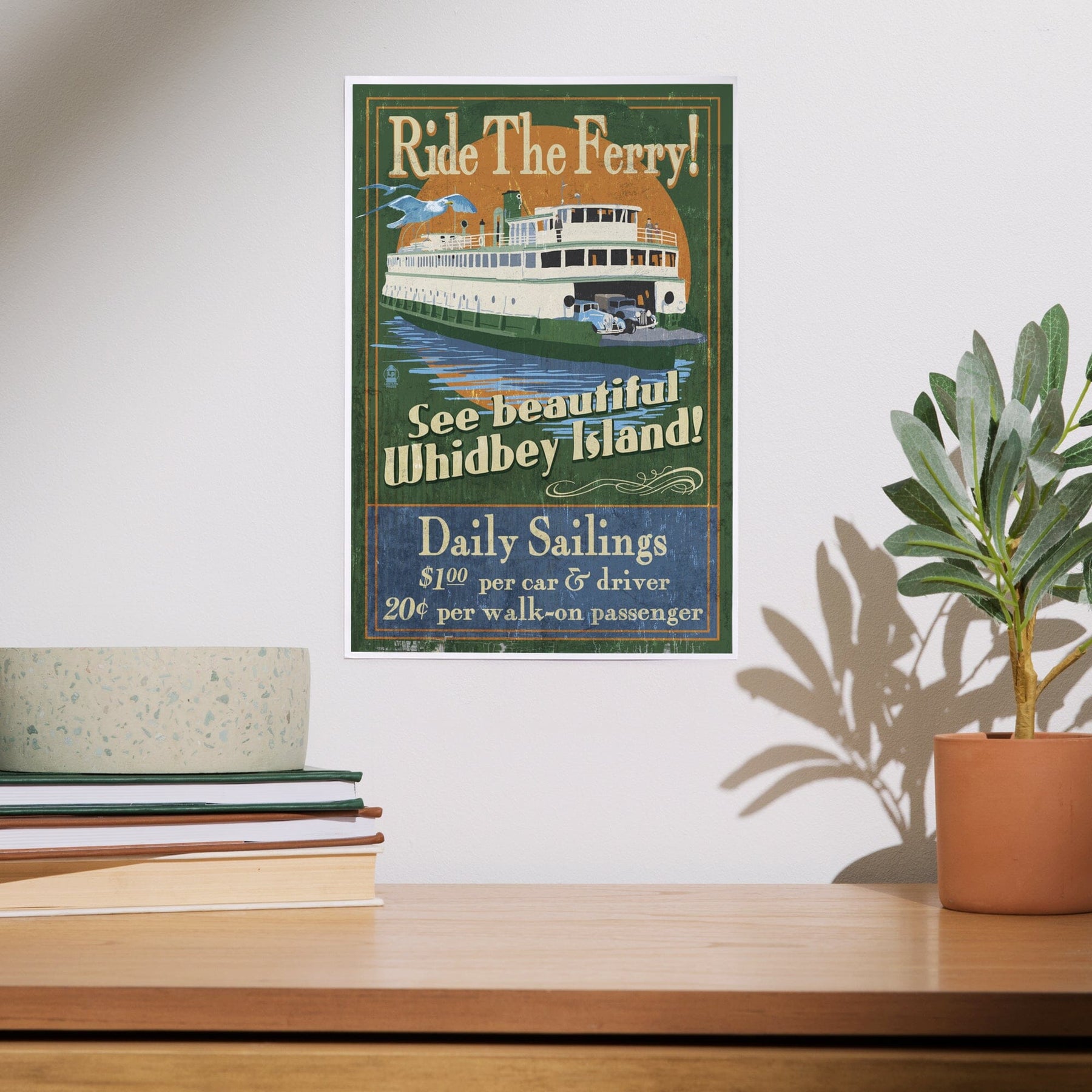 Whidbey Island, Washington, Ferry Vintage Sign Art Lantern Press