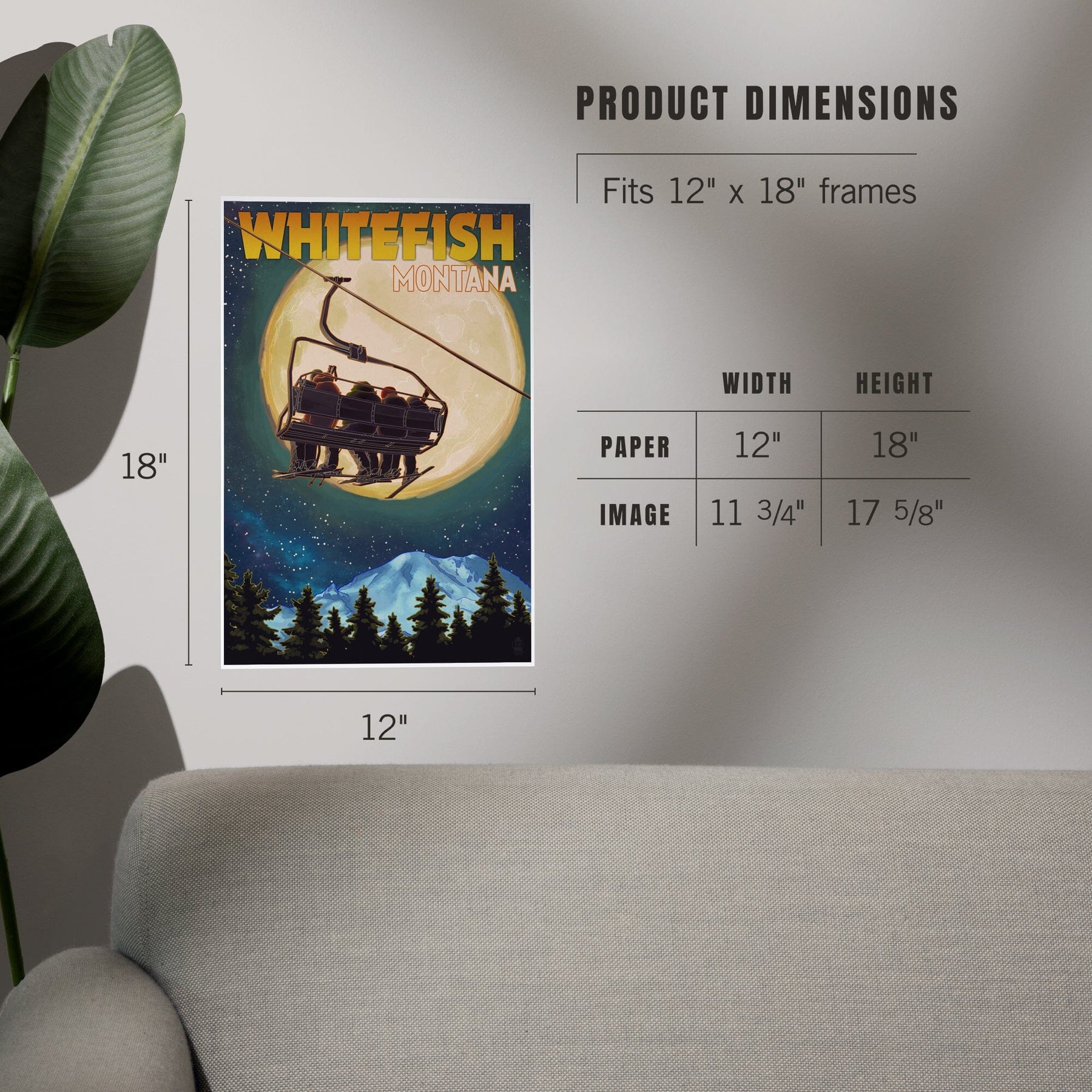 Whitefish, Montana, Ski Lift and Full Moon, Art & Giclee Prints